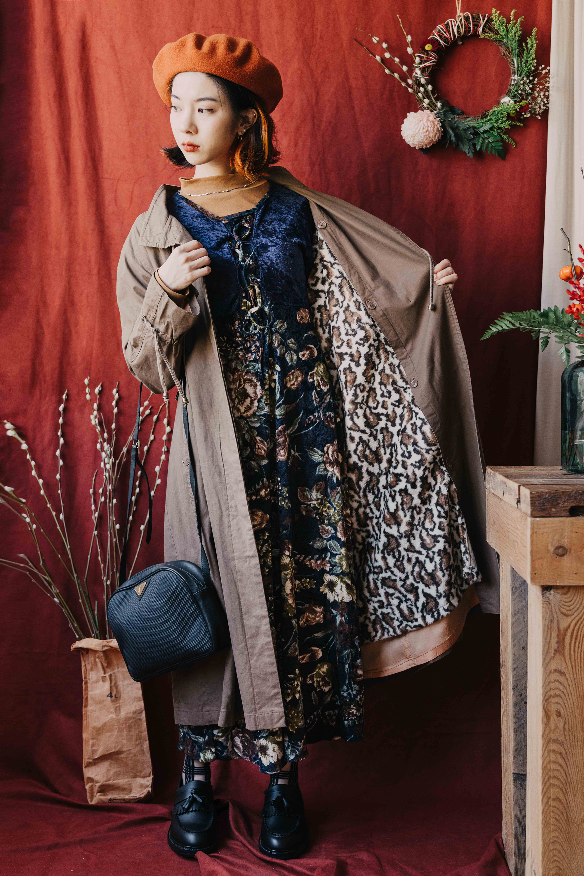 今年春節,就用顏色搭配與質料決一勝負!如果一襲天鵝絨花紋長洋裝讓你有神秘氣息,可運用橘紅色貝蕾帽的加持來降低了整體的距離感,還為此添有一分落落大方之感;內搭亦可選擇暖色系的半高領上衣來增加層次。再穿上有著豹紋內襯的風衣外套,不高調卻不馬虎,一向是你的個人特質。
