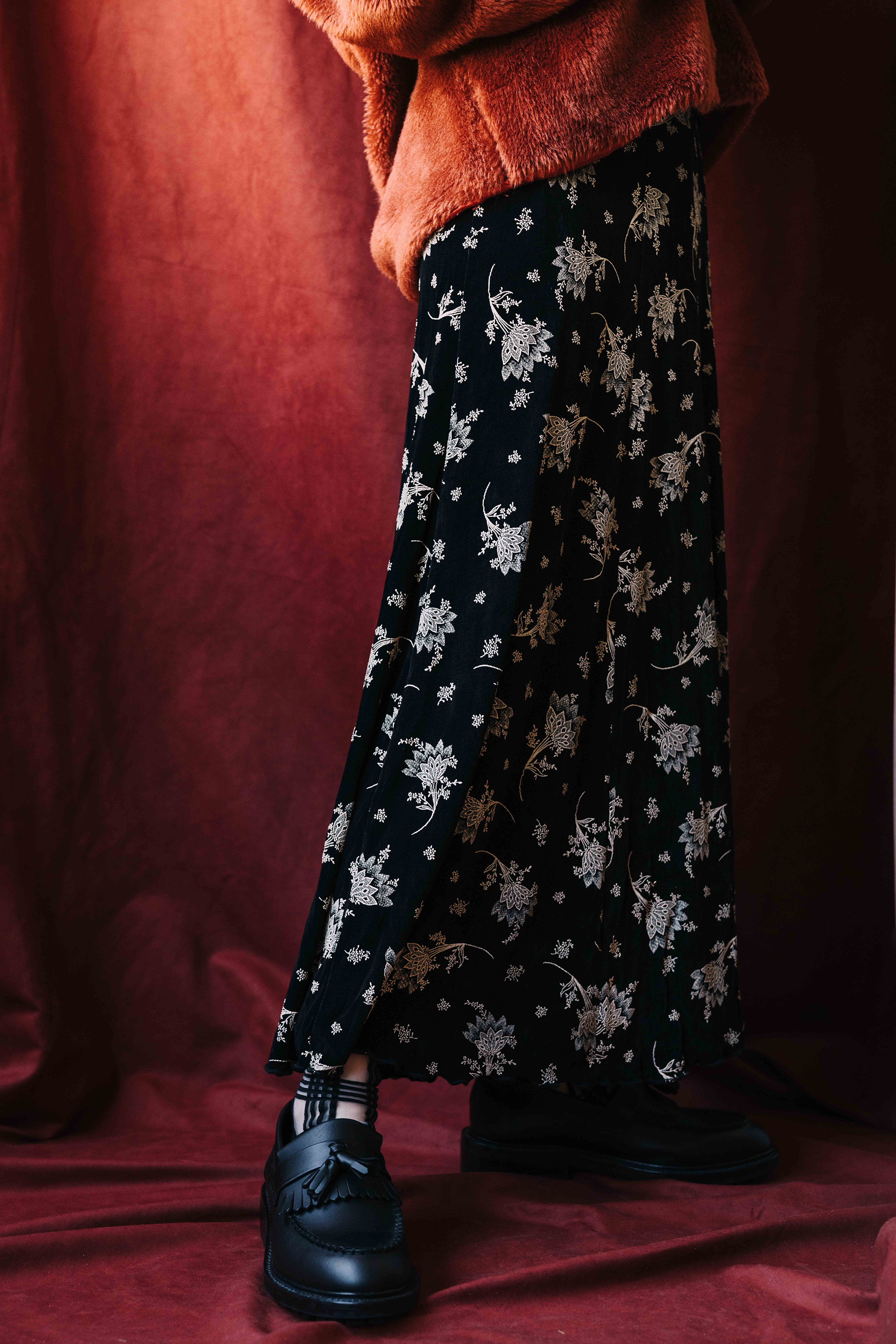 如果你已穿上存在感極強的紅色毛絨外套,下身就用飄逸十足的碎花古著裙來塑造出成熟女性的衝突感吧!不僅可以充分展現出你對穿搭的獨到想法,還可讓你成為人群中的亮眼存在。
