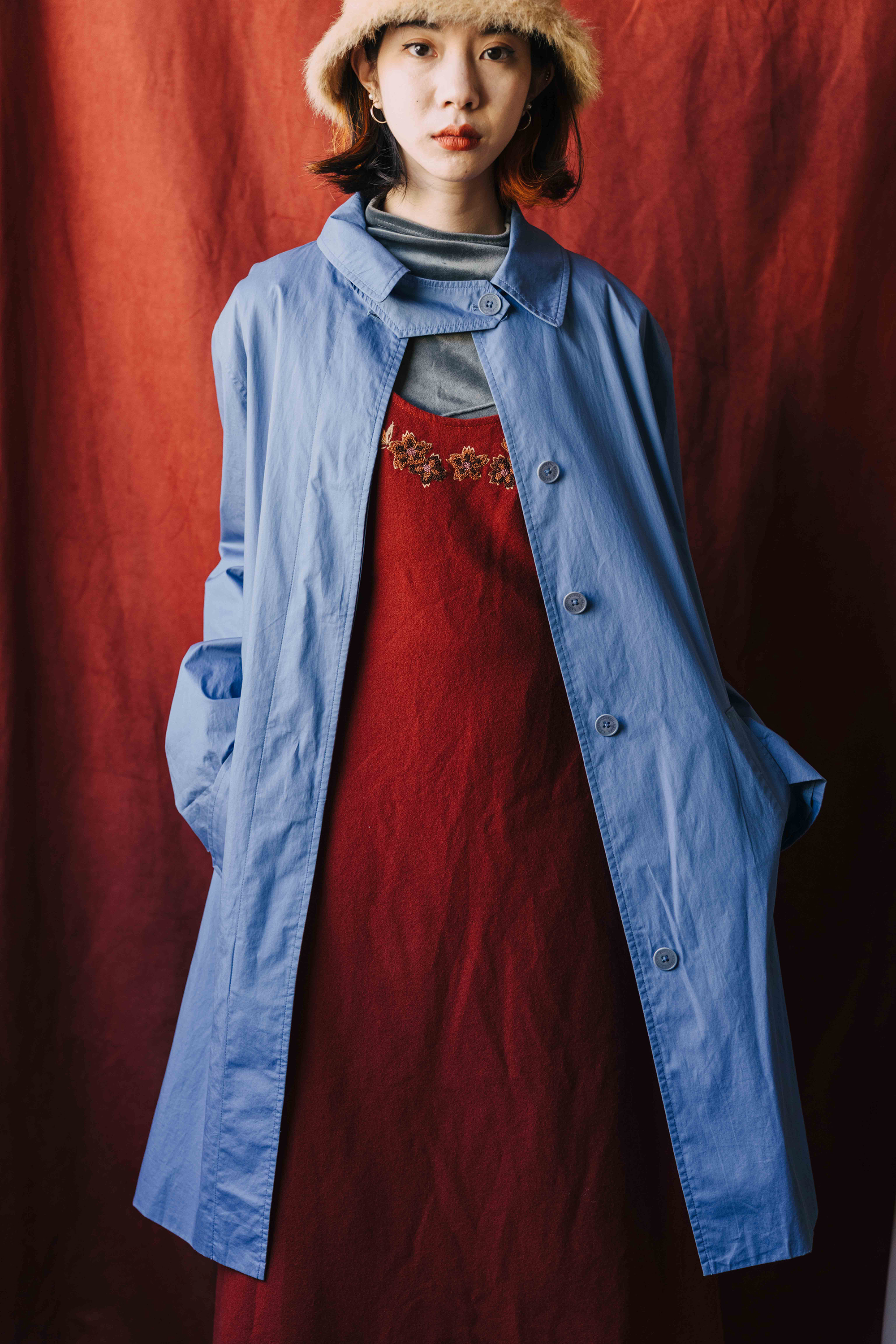 過年不是非得要添入新行頭,將你鍾愛已久的那件單品保養得宜,才是最高層級的講究,例如那件可以代表著你活潑個性的毛衣,又或是讓你氣勢十足的風衣外套,隨著你的喜愛與時間,歷久彌新。套上那件靜靜躺在衣櫃裡的紅色吊帶裙,在藍色工裝大衣與毛呢漁夫帽的襯托下,揉合出一身小女孩的俏皮感。