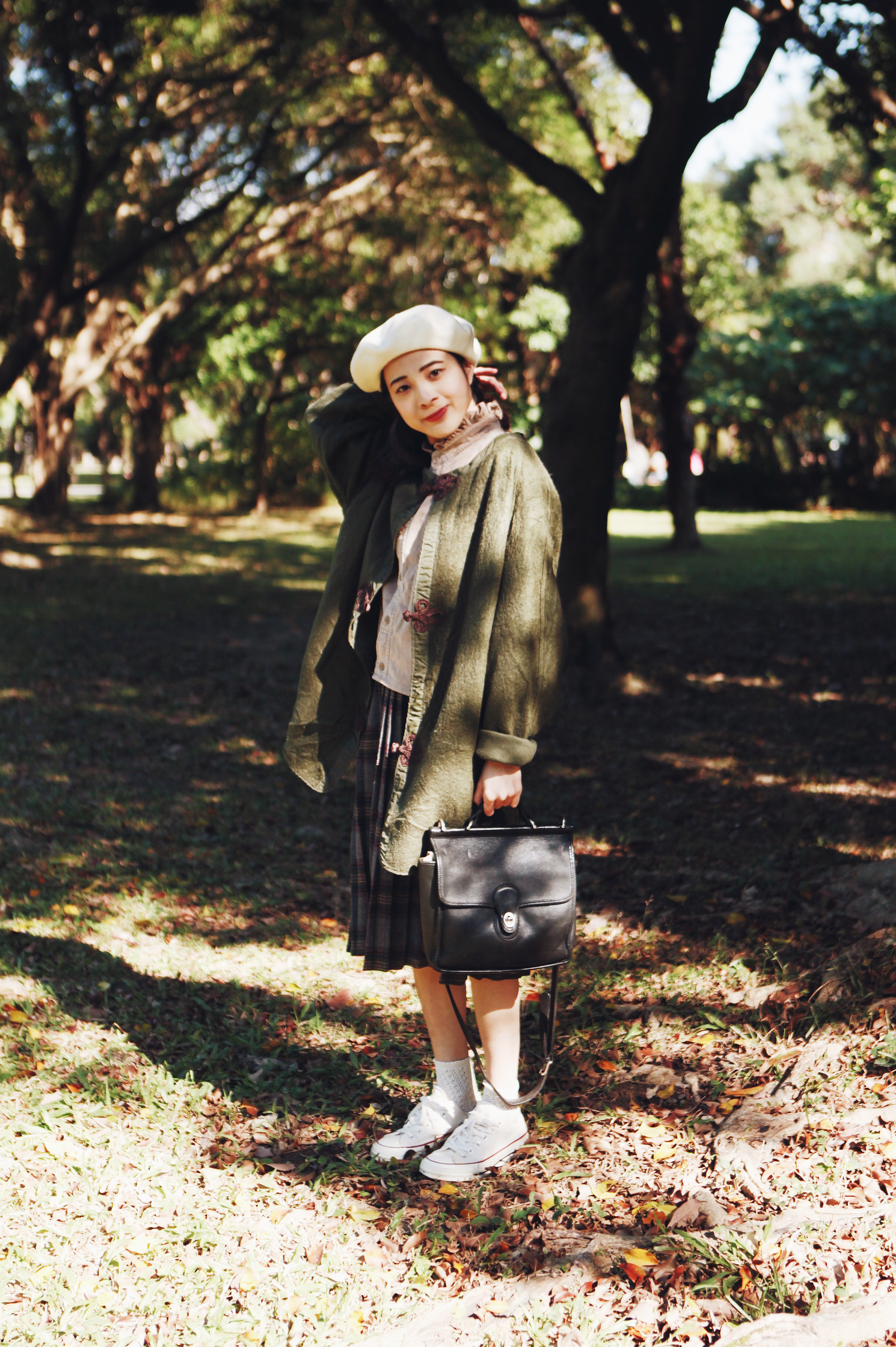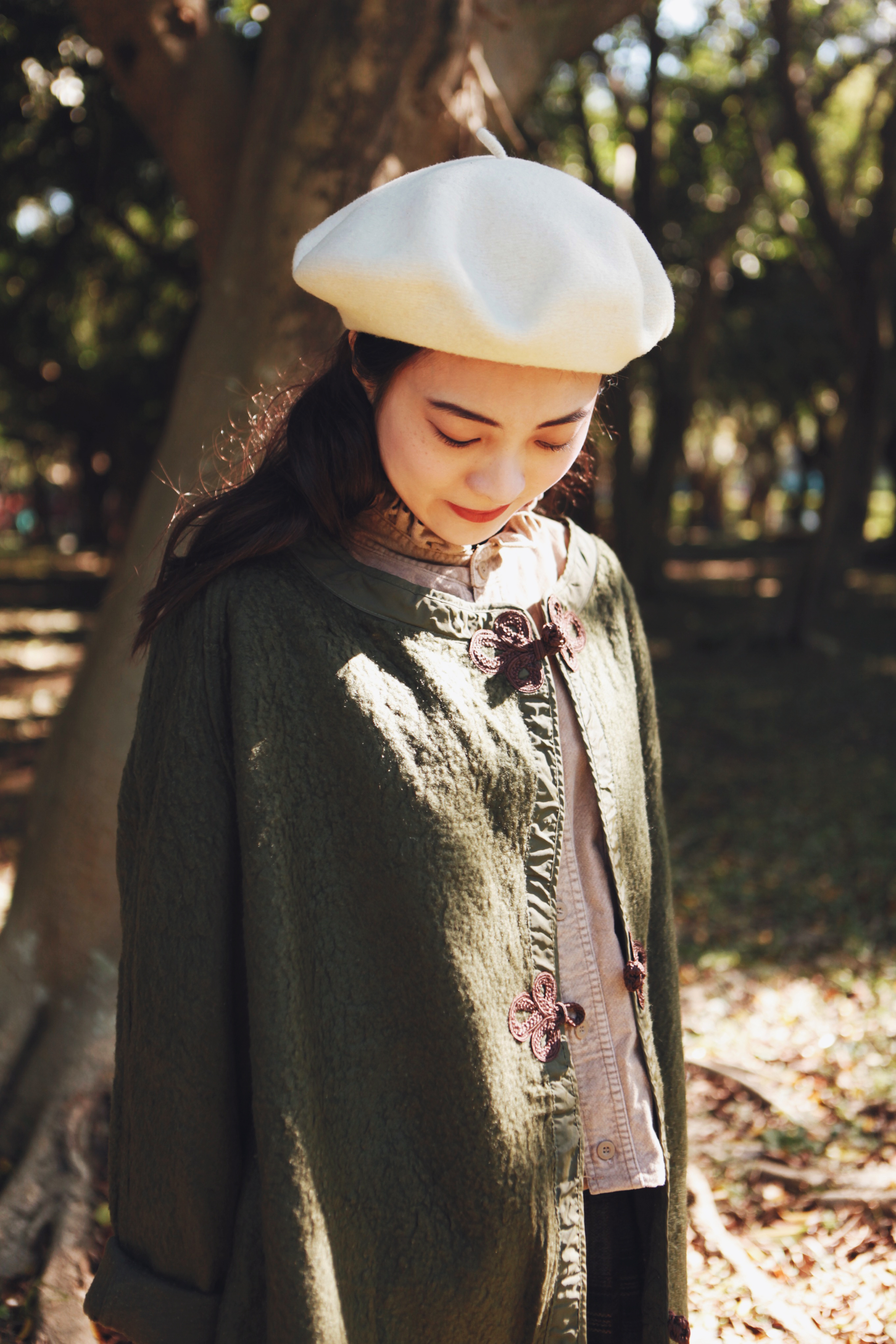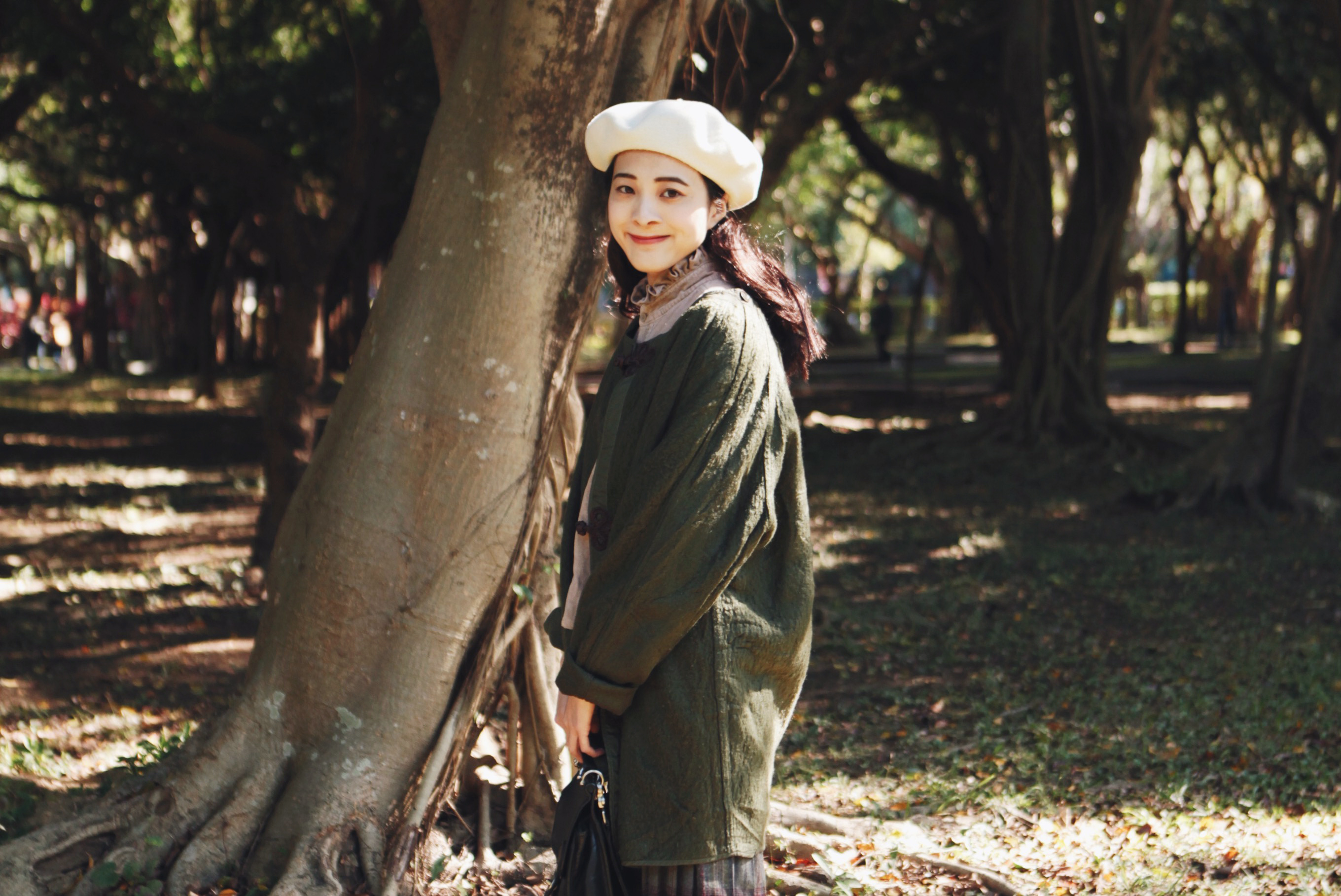 旅程從來不是從距離來定義,只要是能讓自己偷得半日閒的午後散步,何不也是種款待自己的小旅行?如果穿膩了褲裝,不妨試試冬季的經典單品 - 格紋百摺裙,上身再以淡色系衣著搭配出女孩的柔和感。而外套的部分,也是盡情展現個性的一個環節,抹茶綠的外套自法軍外套的內裏改製而成,亮點在於紅豆色的中國結扣子,顏色搭配不僅相襯,式樣也令人耳目一新。