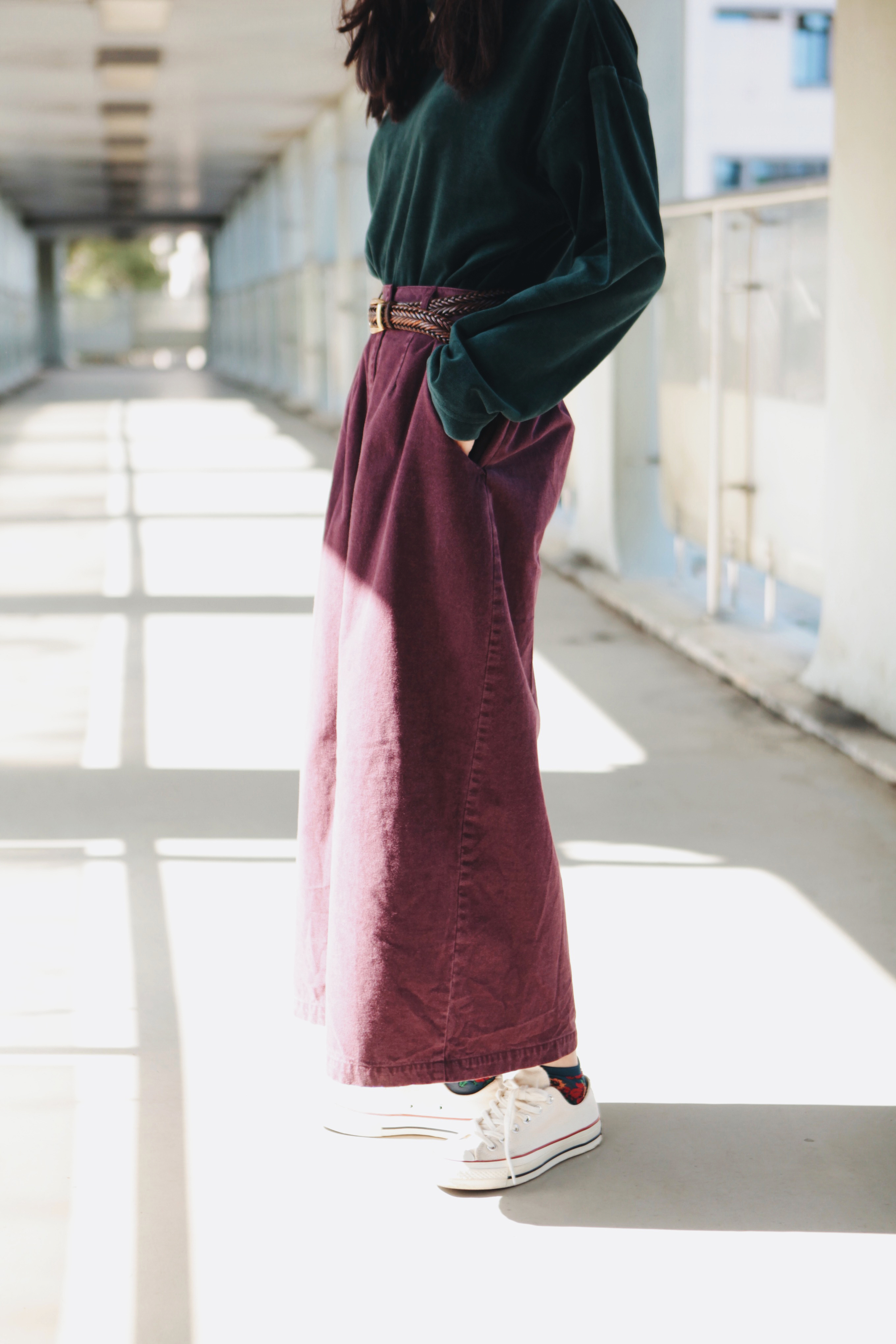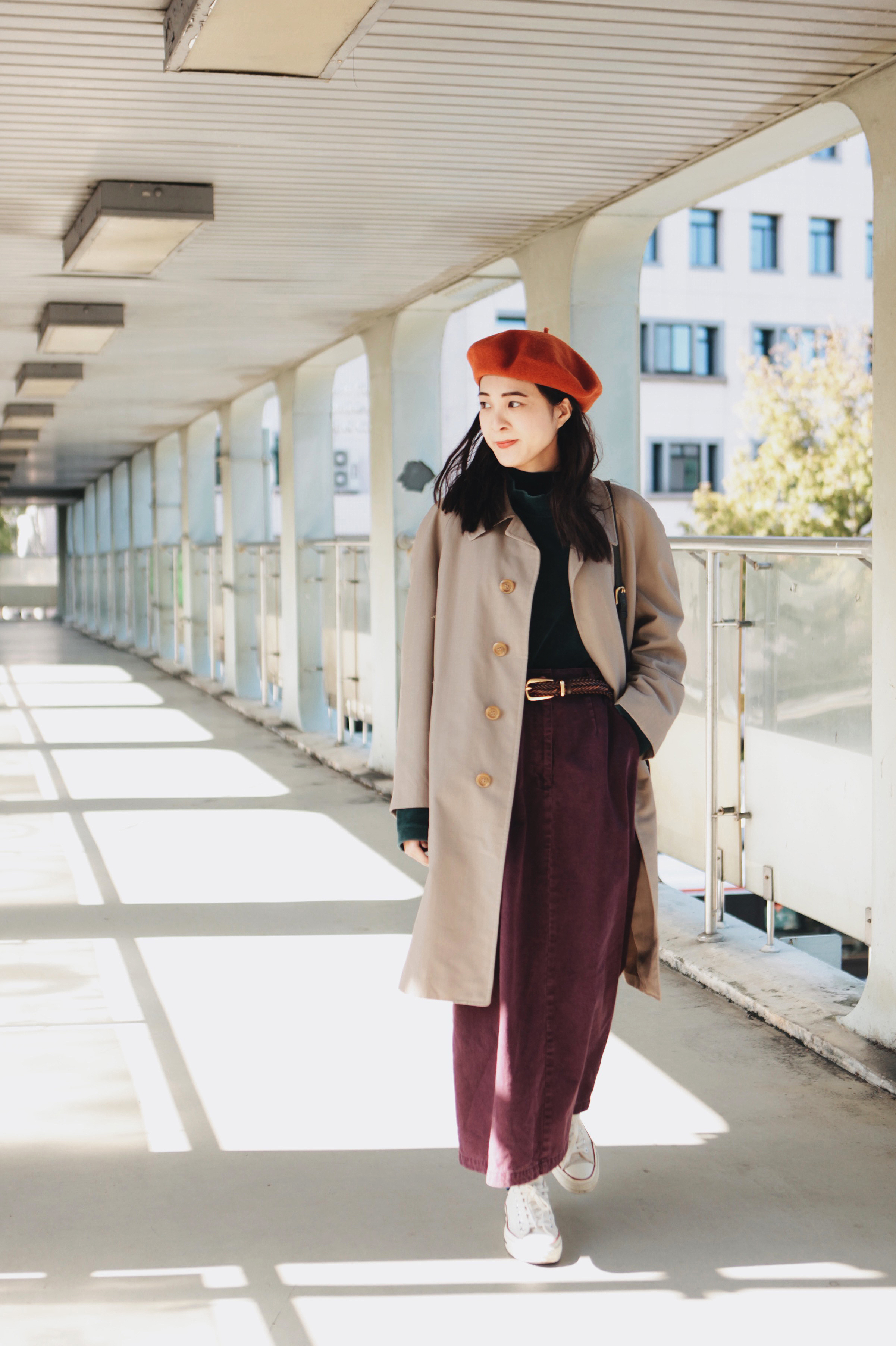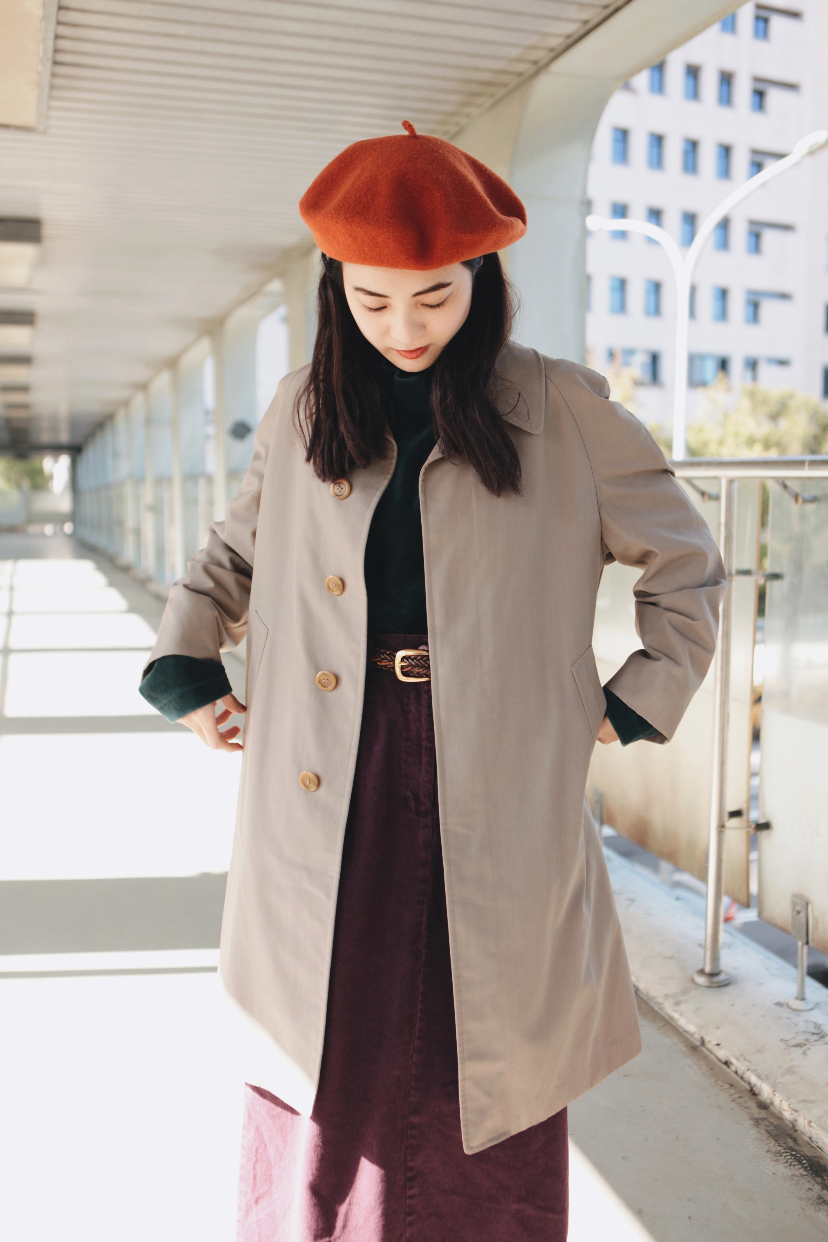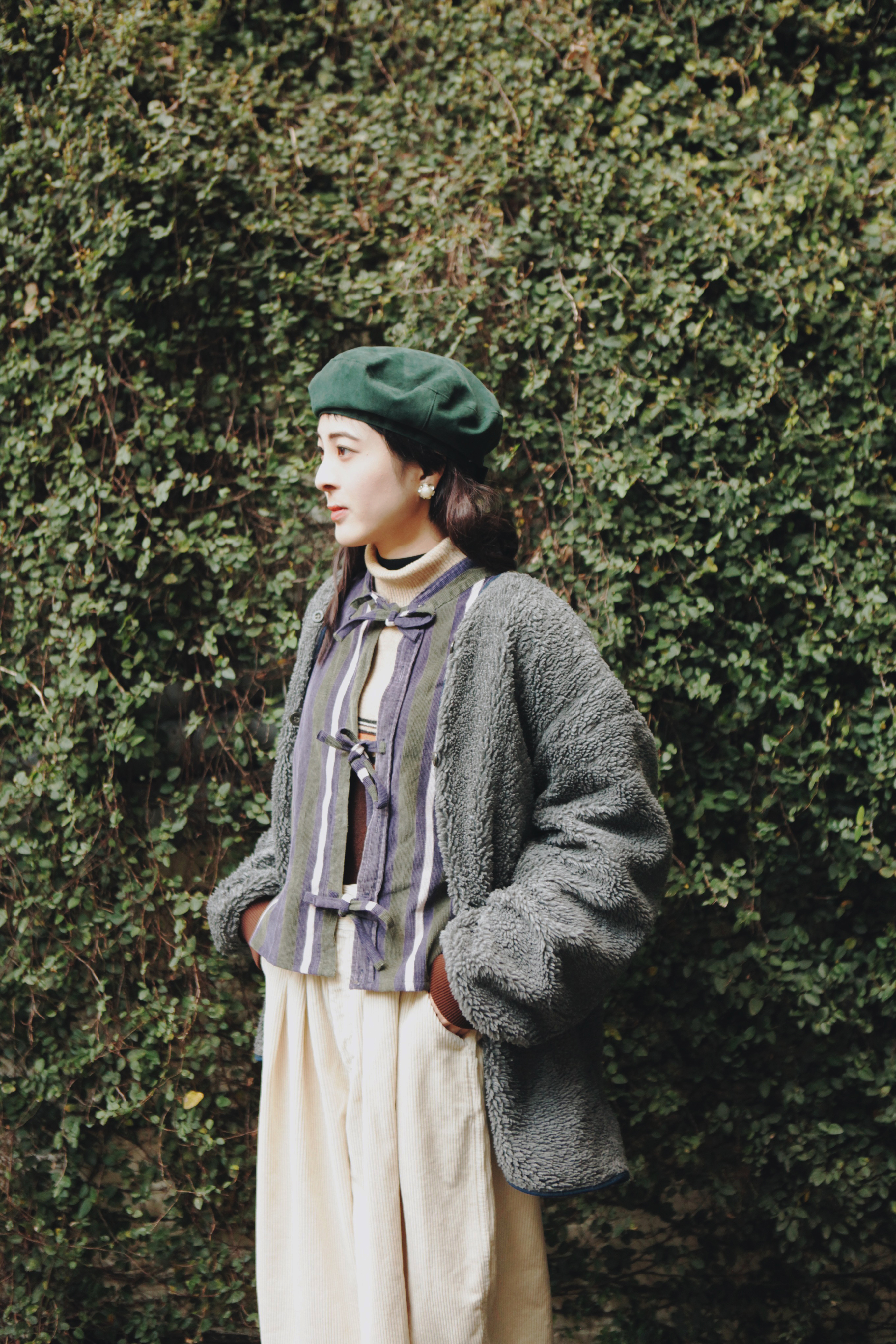 旅程從來不是從距離來定義,只要是能讓自己偷得半日閒的午後散步,何不也是種款待自己的小旅行?如果穿膩了褲裝,不妨試試冬季的經典單品 - 格紋百摺裙,上身再以淡色系衣著搭配出女孩的柔和感。而外套的部分,也是盡情展現個性的一個環節,抹茶綠的外套自法軍外套的內裏改製而成,亮點在於紅豆色的中國結扣子,顏色搭配不僅相襯,式樣也令人耳目一新。