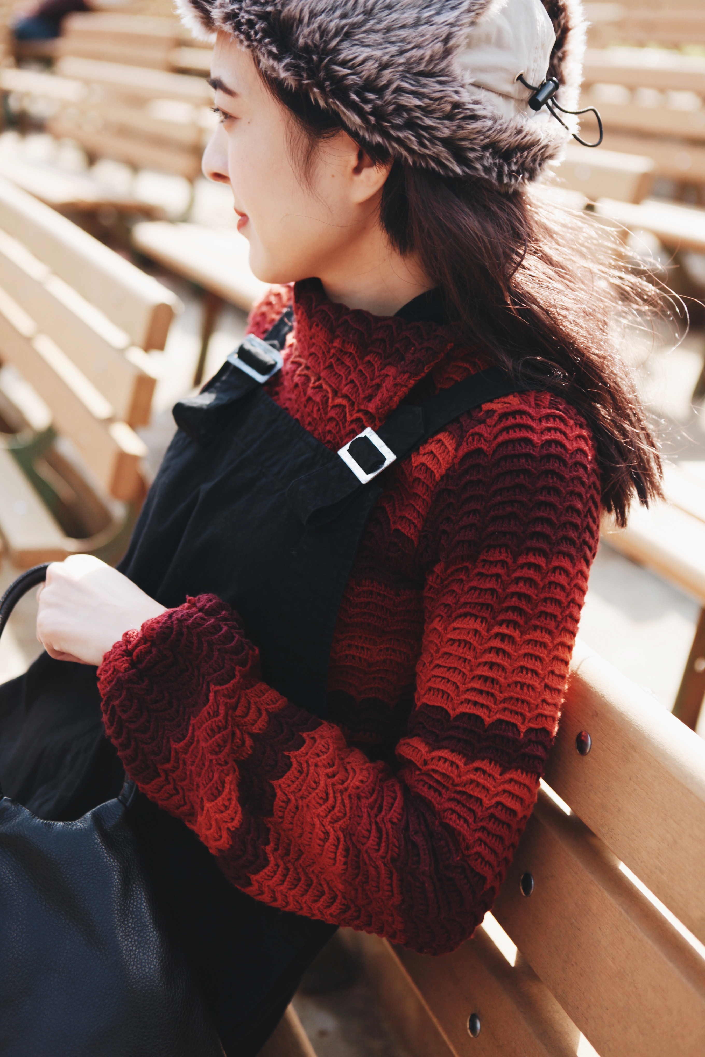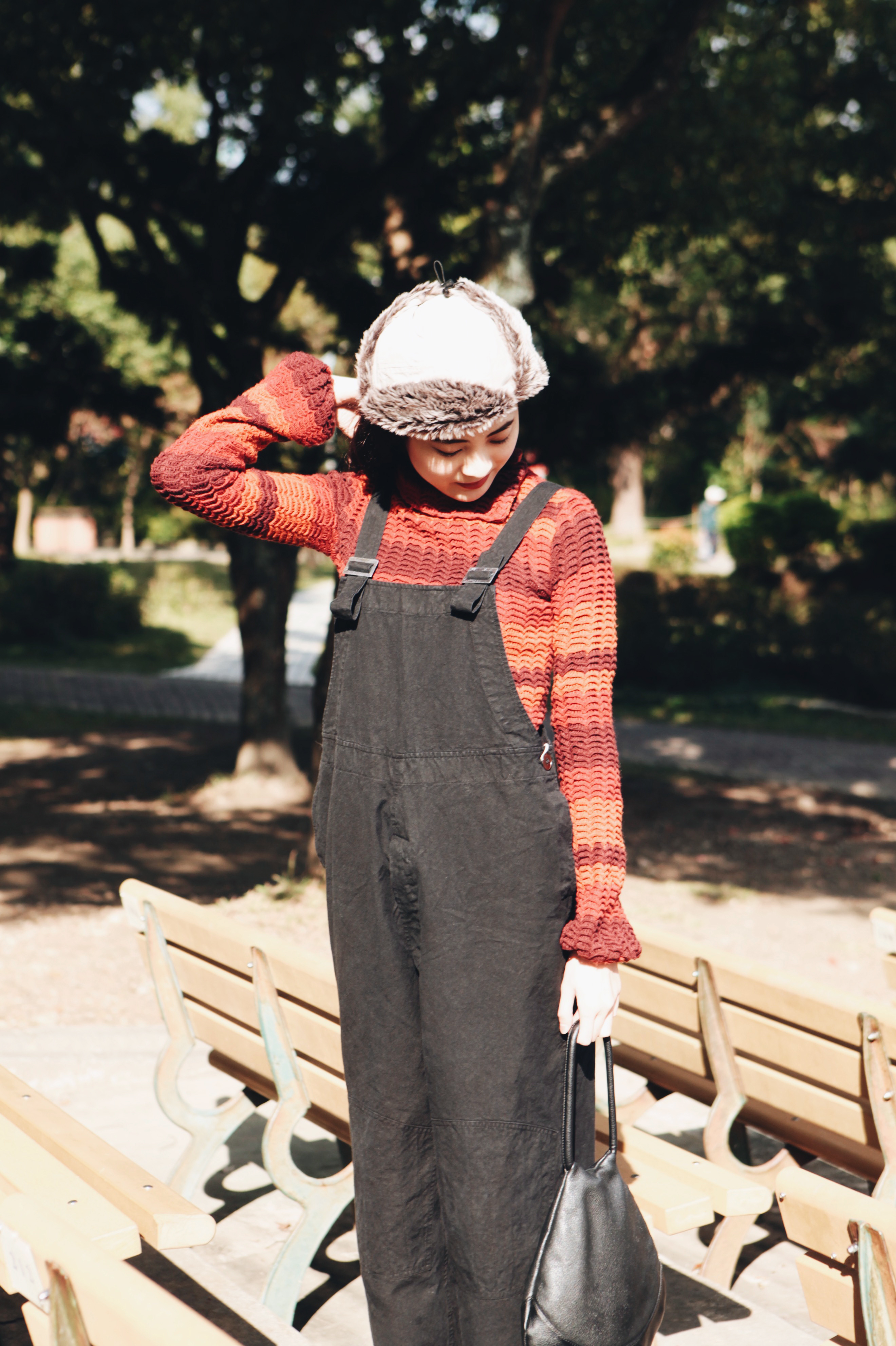 穿上一襲紅色鱗紋 Vintage 毛衣,代表妳不安於現狀的熱情,配上黑色吊帶褲,最後戴上一頂讓整體感更加強烈的 Halo commodity Madera Cap,用最怡然自得的態度,駕馭冬日裡的任何未知。