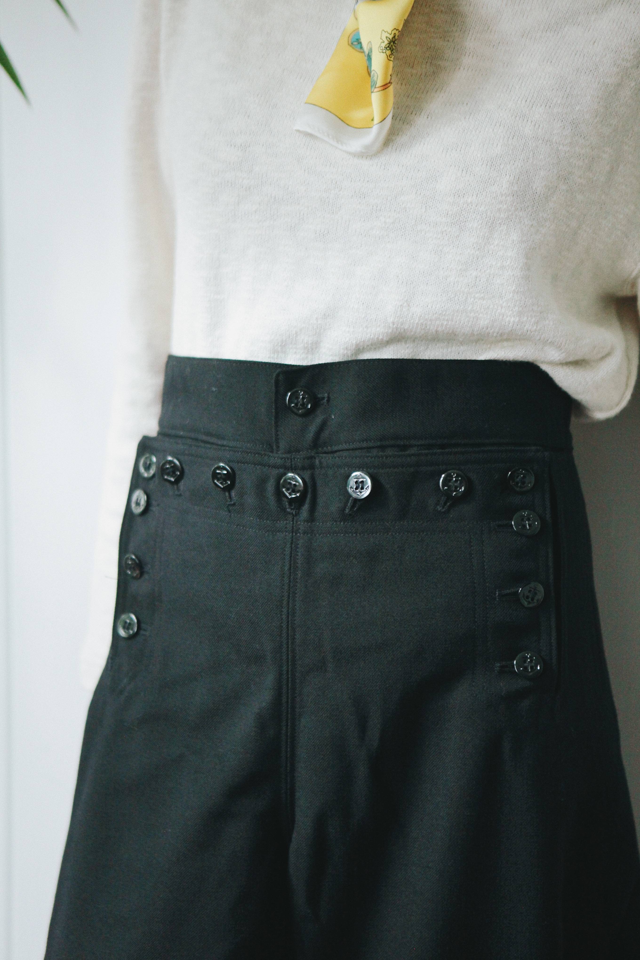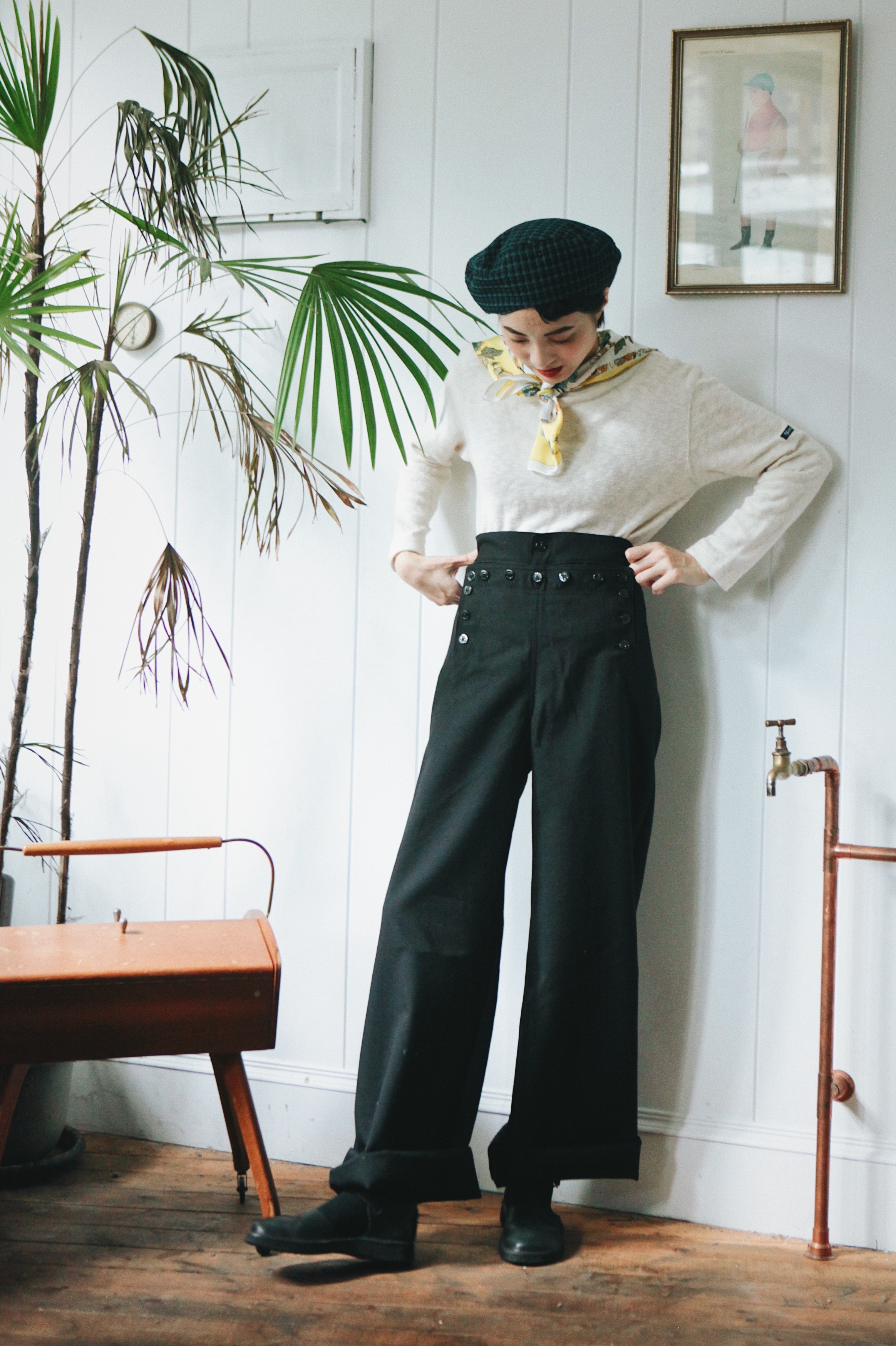 19世紀初期,美國海軍還沒有制式化的服裝時,參考了英國海軍制服,為水手們設計出質料輕薄且耐磨耐穿的牛仔喇叭褲,隨後也因應氣候變化加入保暖的毛呢面料,不變的是其顯瘦又可拉長身材比例的高腰喇叭褲型,以及前頭經典的成排鈕扣。除了滿足保暖舒適的需求,你只需搭配簡約的上身,就能俐落有型。