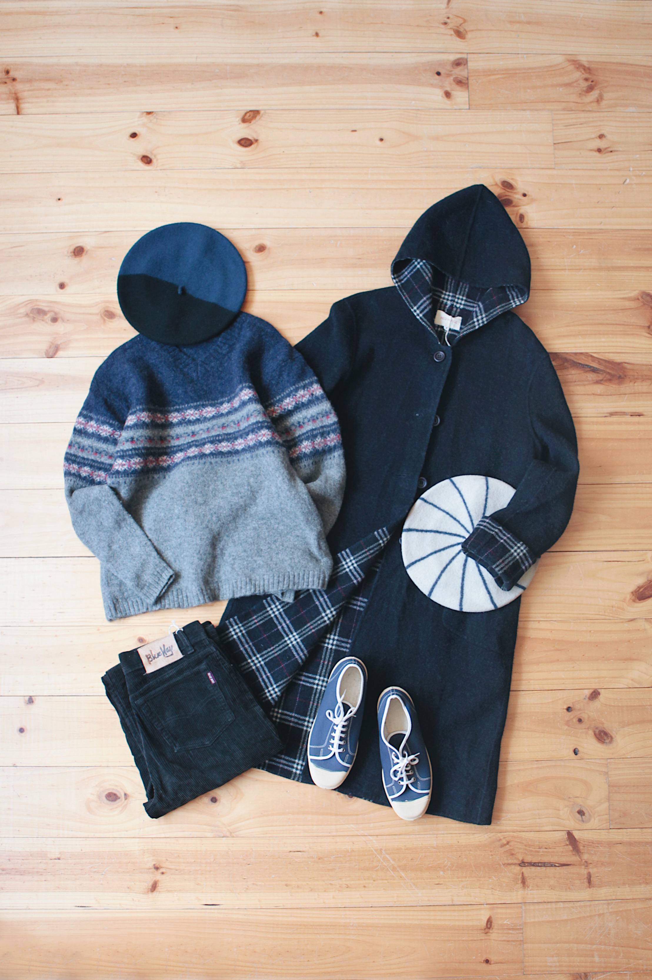 進入寒冷的冬天時節,就不得不提毛呢與毛衣這兩位實用又好看的固定班底了。毛呢大衣在早期是仕紳淑女們社交時著用的正式服裝,並隨著時間與場合有所區別,除了翻領、收腰、排釦等細節外,後來也受到軍裝影響,衍伸出不同版型與材質,讓人們擁有更多體面的選擇。以毛呢連帽大衣來說,「Parka」是軍品中常見的款式之一,與毛呢結合後,使得整體別有一番優雅氣息。此件毛呢連帽大衣的亮點在於內外裏為深淺灰色,讓同色系的衣著多了點變化,鈕扣也呼應了這個特色,讓穿搭更加有趣可愛。且因為色系相當百搭,內搭上下身的配色可以盡可能大膽也沒關係。