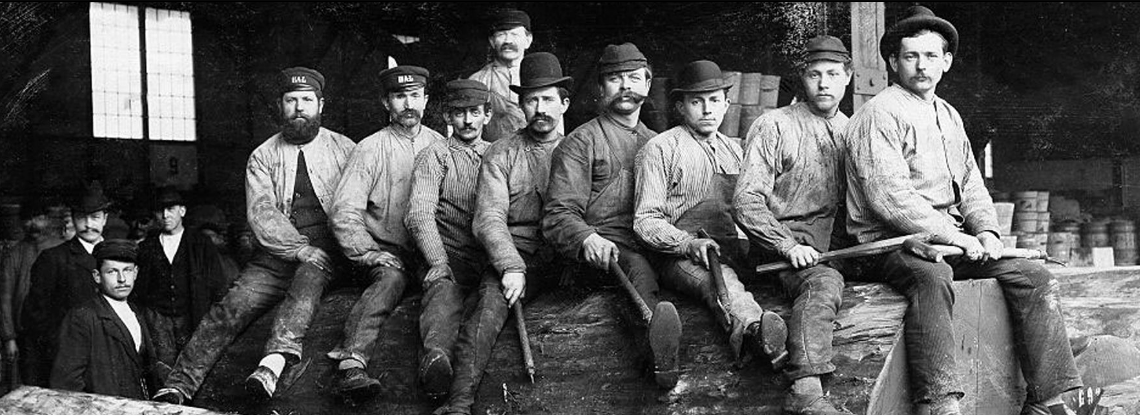 19世紀美國西部除了畜牧業興盛,在加州發現大量金礦引發的淘金熱也吸引美國各地的年輕人放下原本的工作前來一圓發財夢。除了為數眾多的礦工們,不同種類需求的產業工人也應運而生,例如住房需求增加而產生的伐木業、鋪設鐵路的鐵道工人。Levi Strauss嗅到了工裝產業的缺口,從法國引進了堅固、耐用的單寧斜紋布料,請人打版縫製出適合戶外勞動的堅韌工作褲,經過在口袋、褲襠接縫處增加鉚釘補強褲身的設計,及在褲口袋縫上飛鳥狀的弧形縫線、腰後的皮標等專利設計,脫離了歐洲早期的單寧褲版型,奠定美式風格牛仔褲的獨有樣貌,在19-20世紀之間,除了牛仔褲、各式單寧工裝、連身工裝(Overalls)、吊帶工裝(Bib Overalls)都是此時的產物。