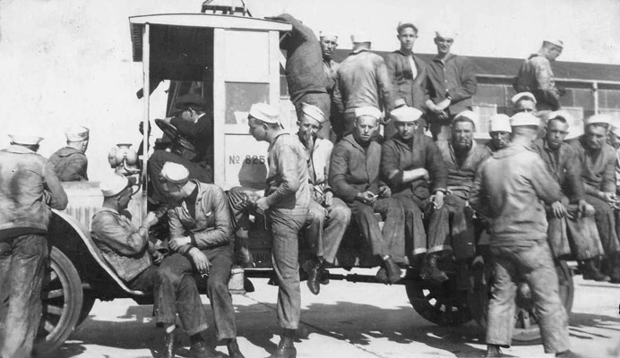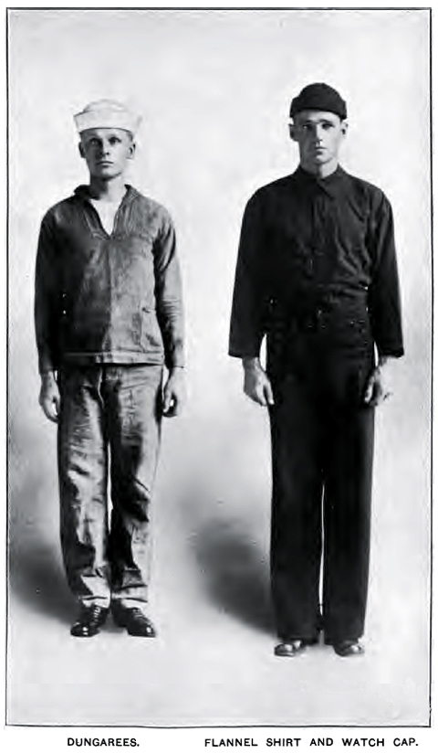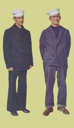 在19世紀,美國海軍首次使用單寧材質的套頭衫與鐘型褲(Bell-bottoms)作為船員的工作制服,與其他制服、常禮服區別。深藍單寧布耐磨耐髒,適用於高污損、大量勞動的工作業務,需要捲起寬大褲管以利活動清潔甲板,屬於勞動者的藍色服裝也與穿著整身白的軍官區別開來。