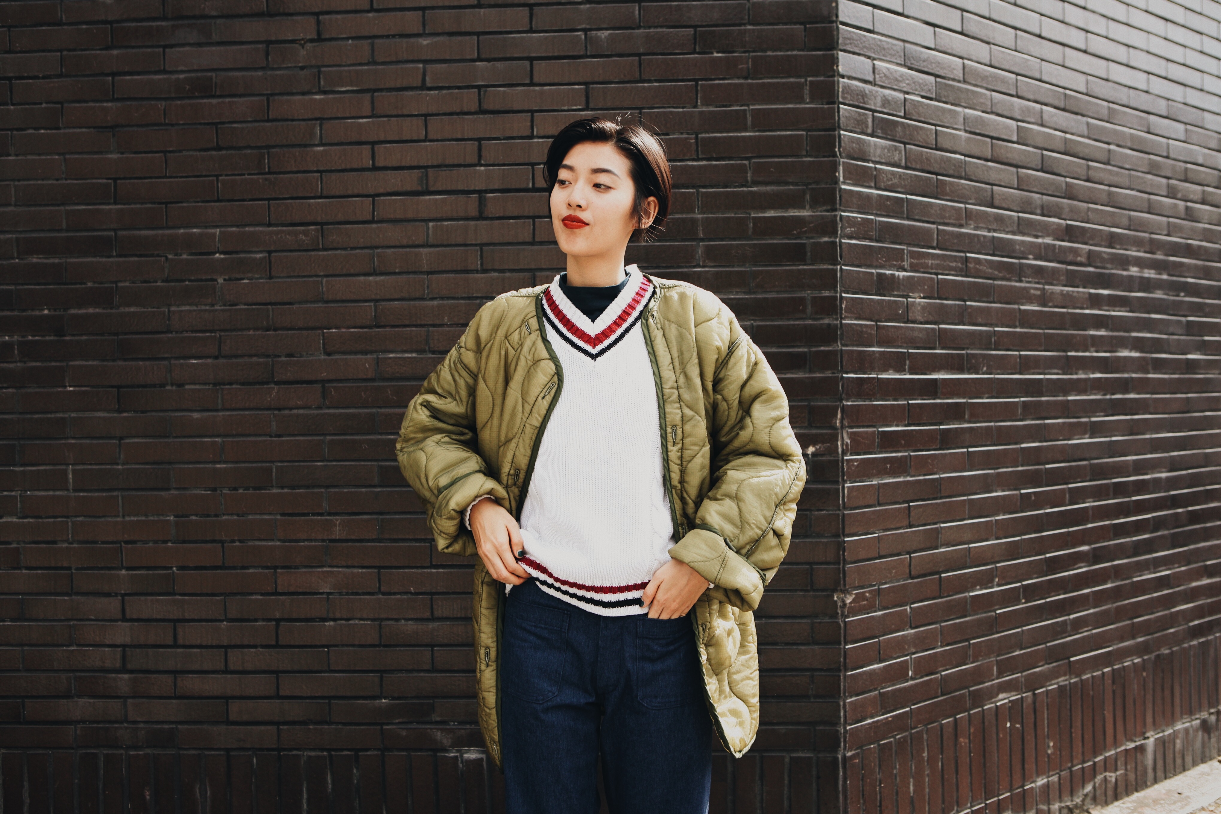 最早用於美軍M51大衣內來增添保暖度的內襯式外套,本身厚實度就相當驚人,因原本依附於大衣內,所以拆卸下來是無領(No Collar)式,容易與一般襯衫、有領外套搭配讓層次錯落有致。這款內裡為鋪棉材質保暖度佳,正反面都可以穿,被寬寬大大的M51內襯包覆住有小鳥依人之感,無領釋出的空間不會有被外套壓垮之感,反而非常率性。