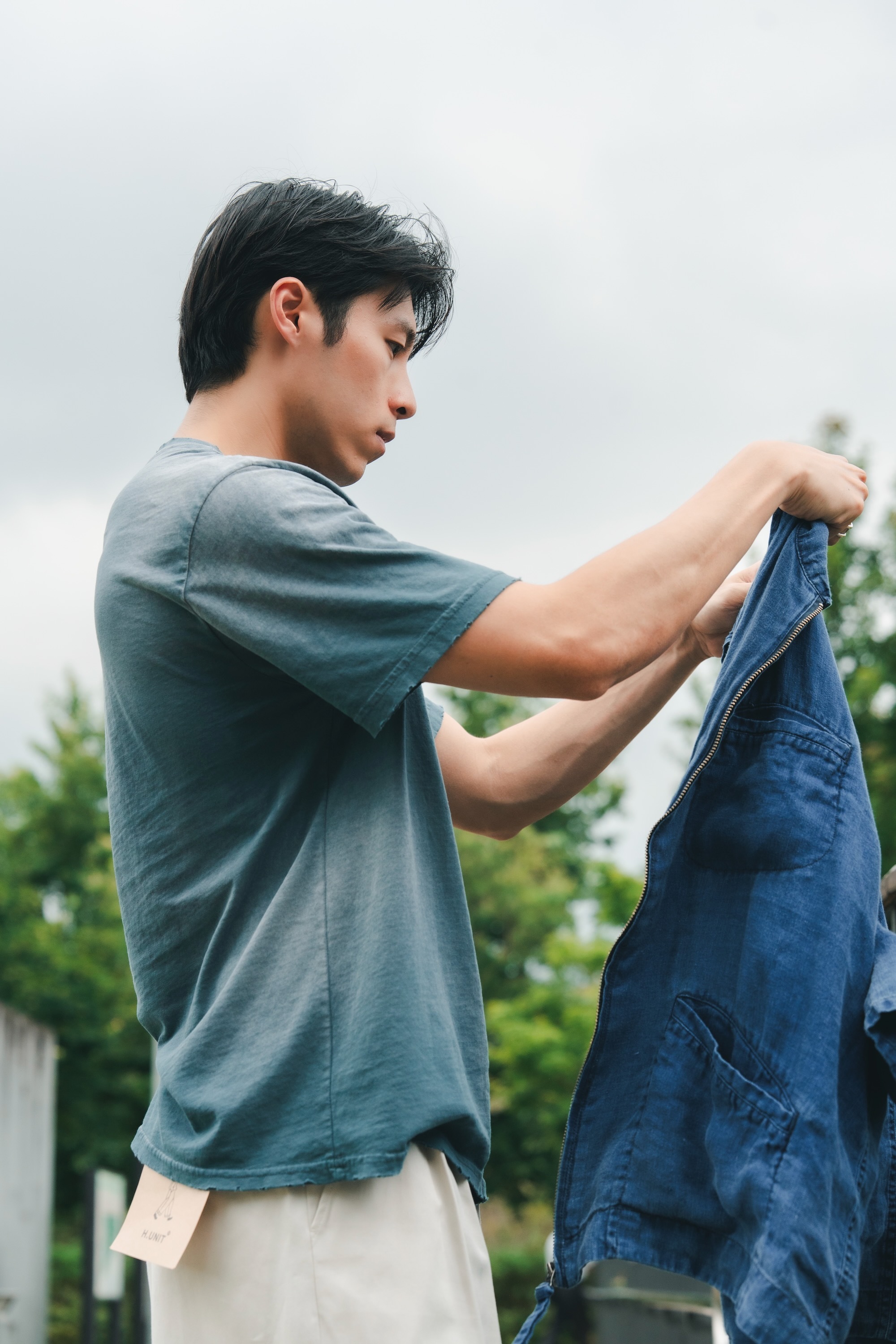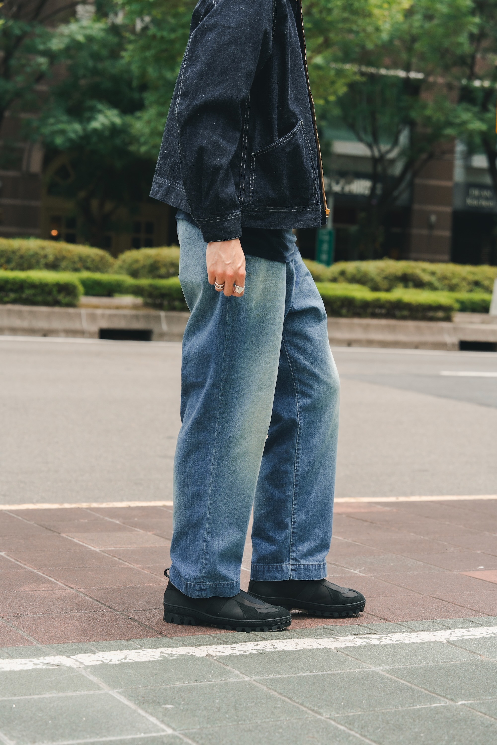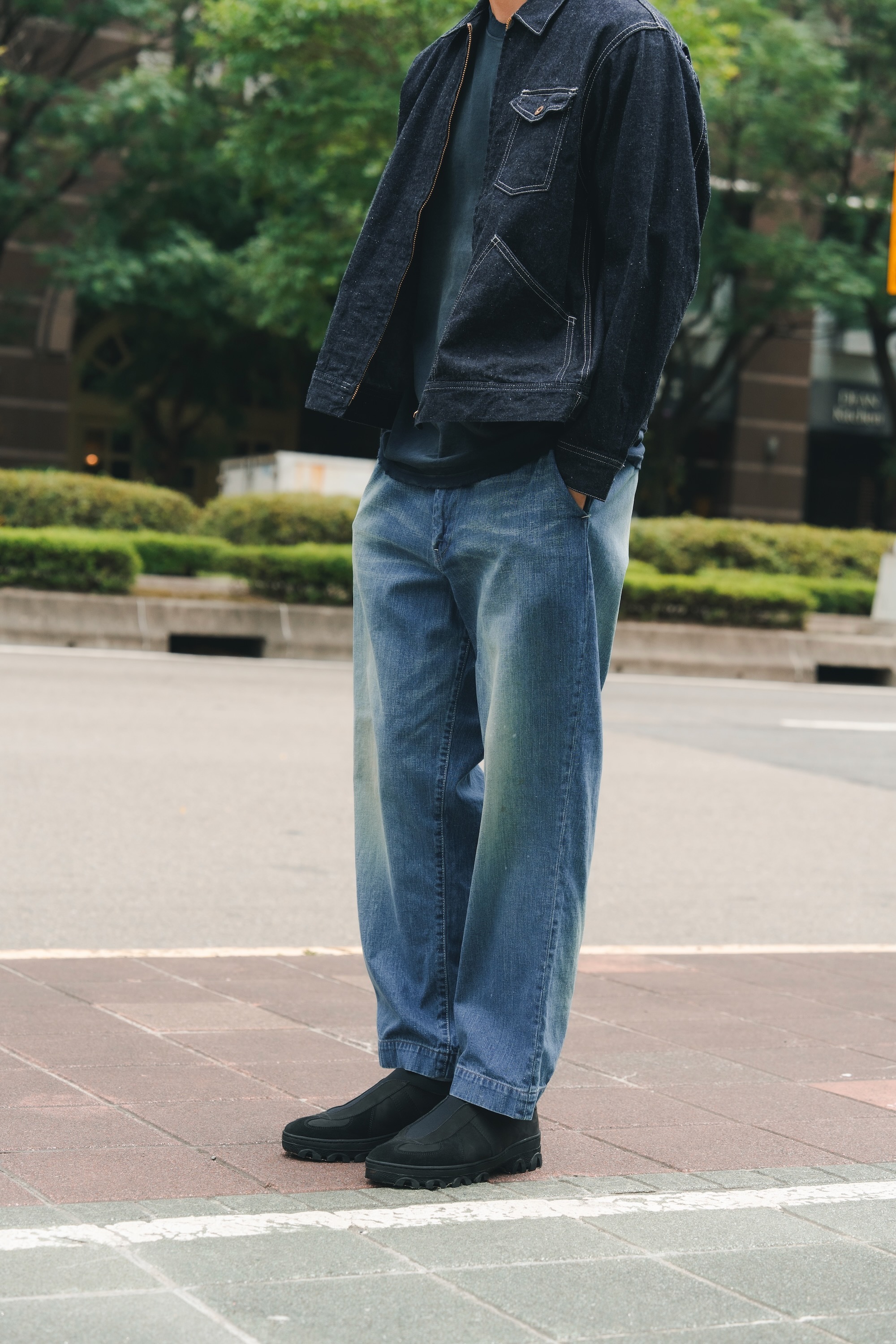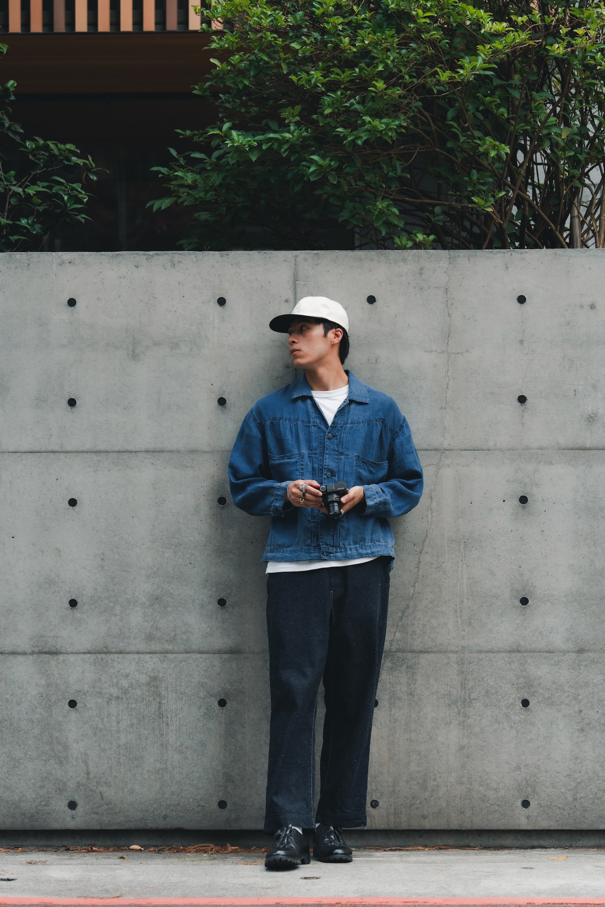 單寧外套與褲子來自日本品牌H.UNIT