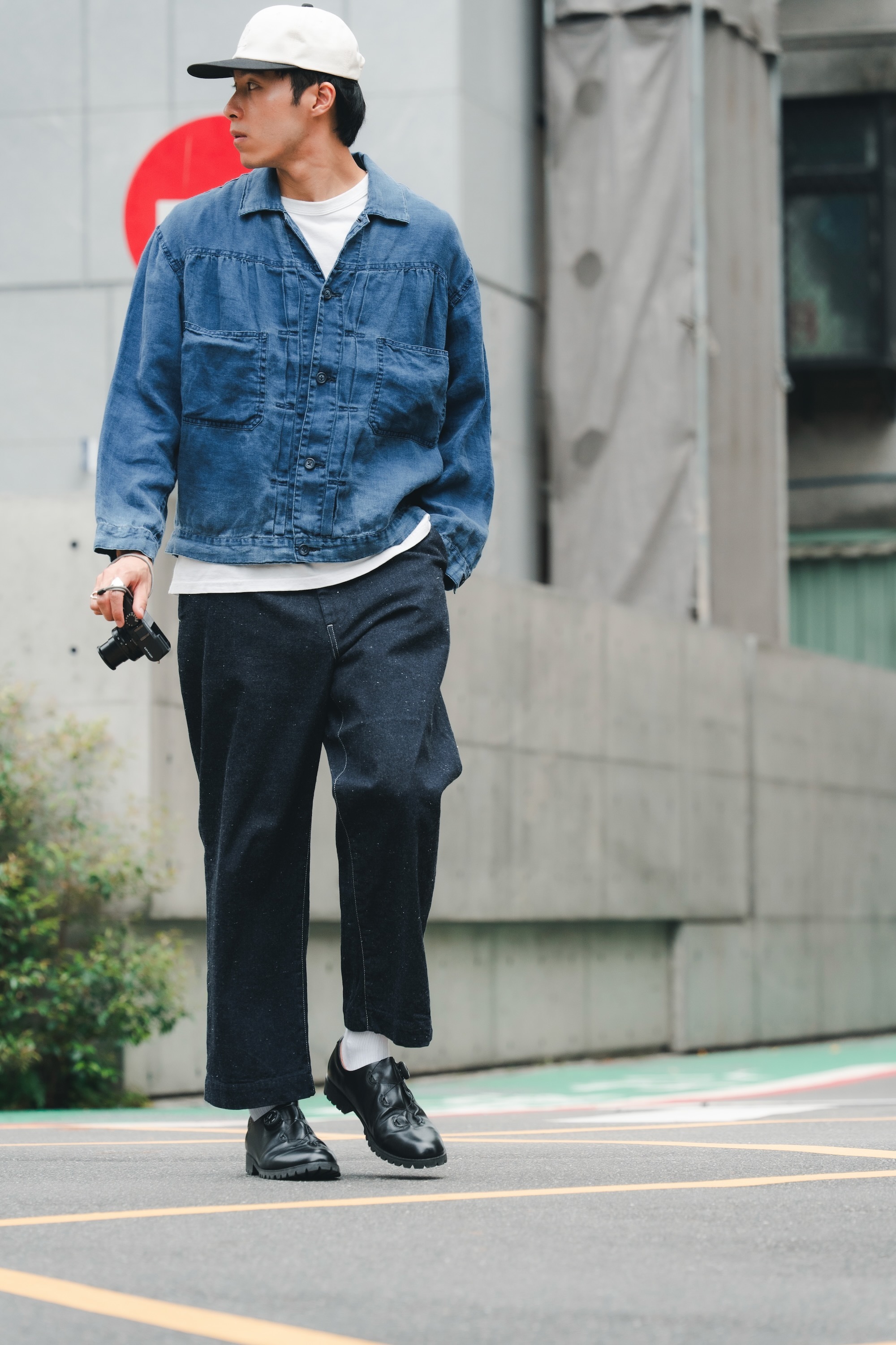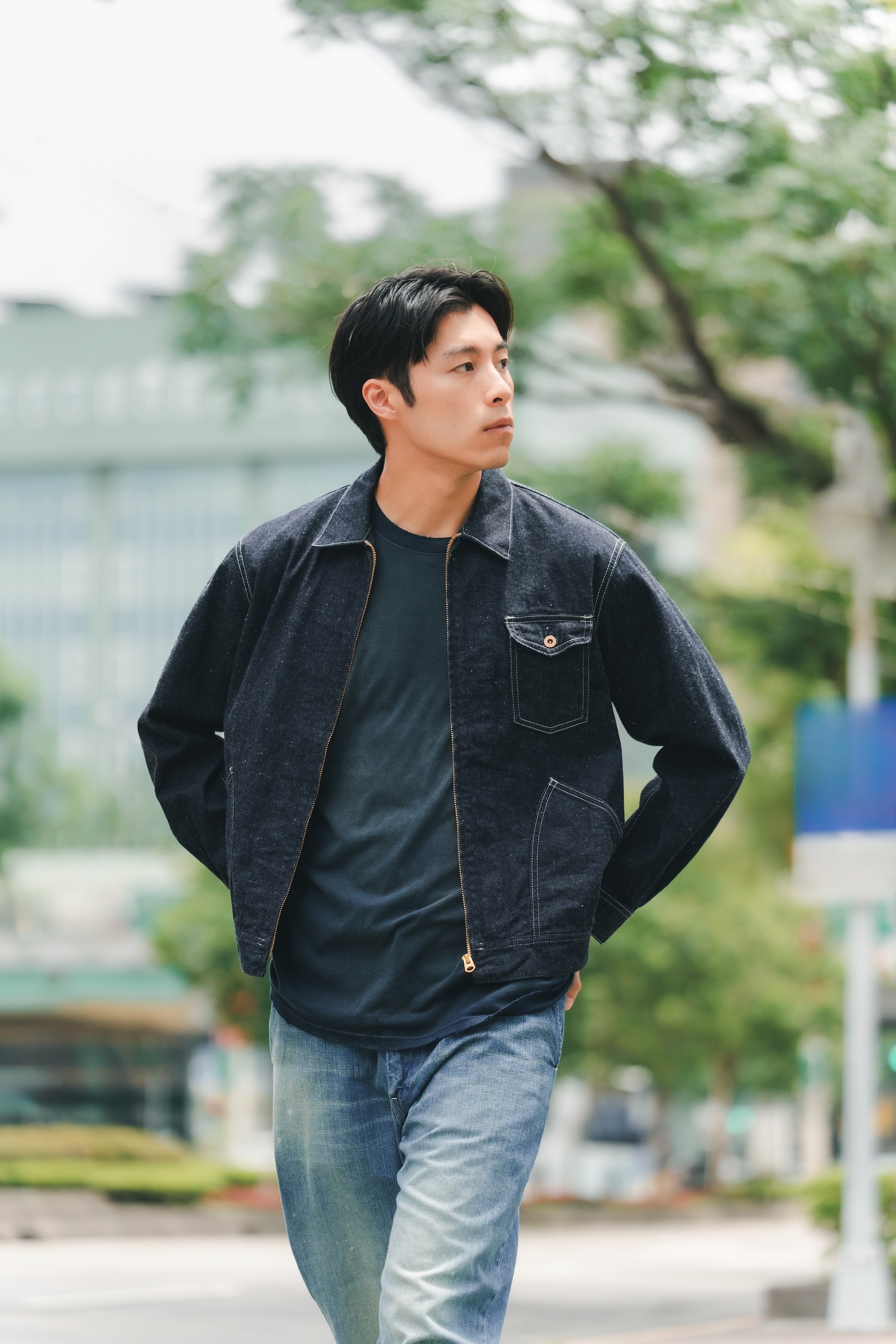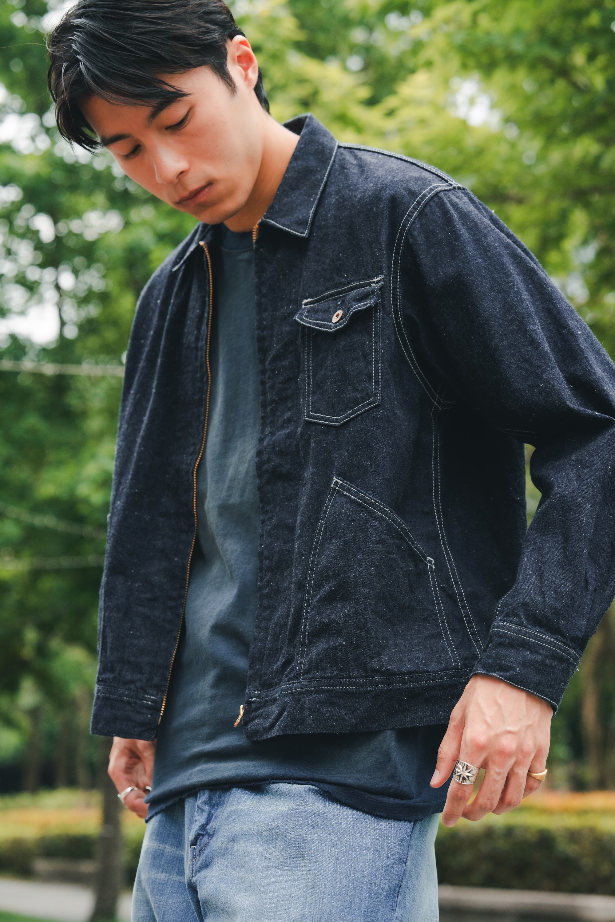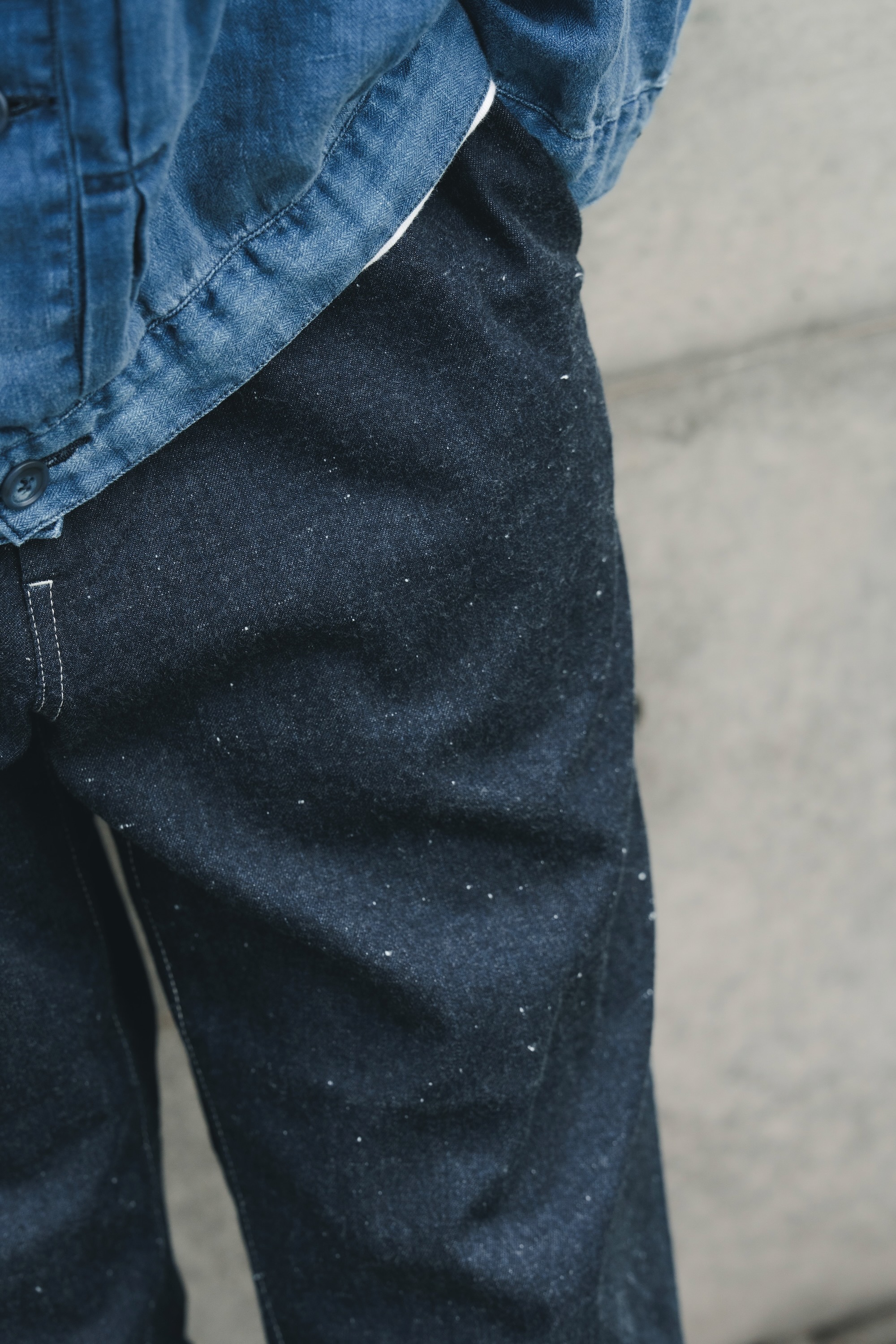 單寧外套與褲子來自日本品牌H.UNIT