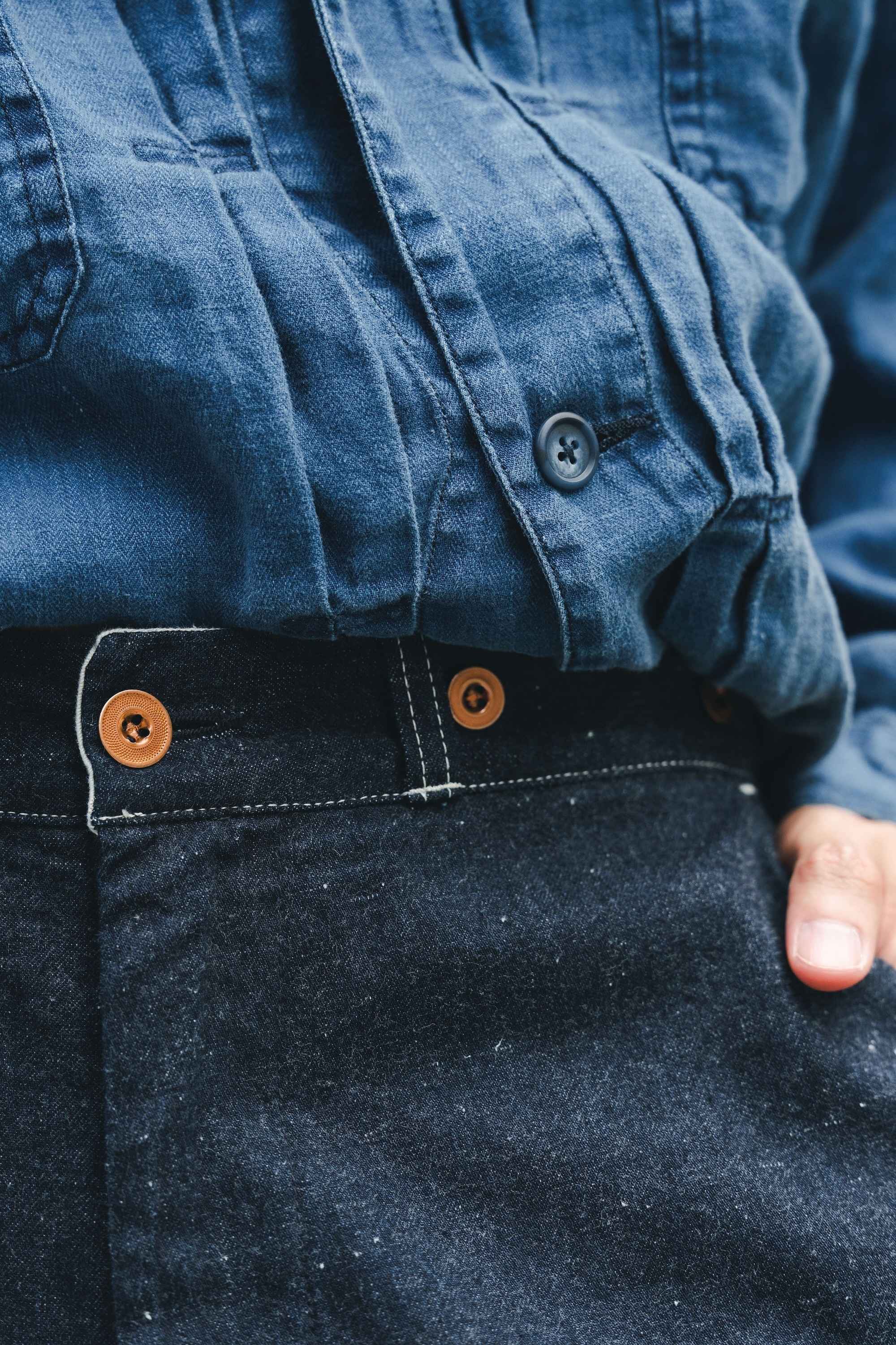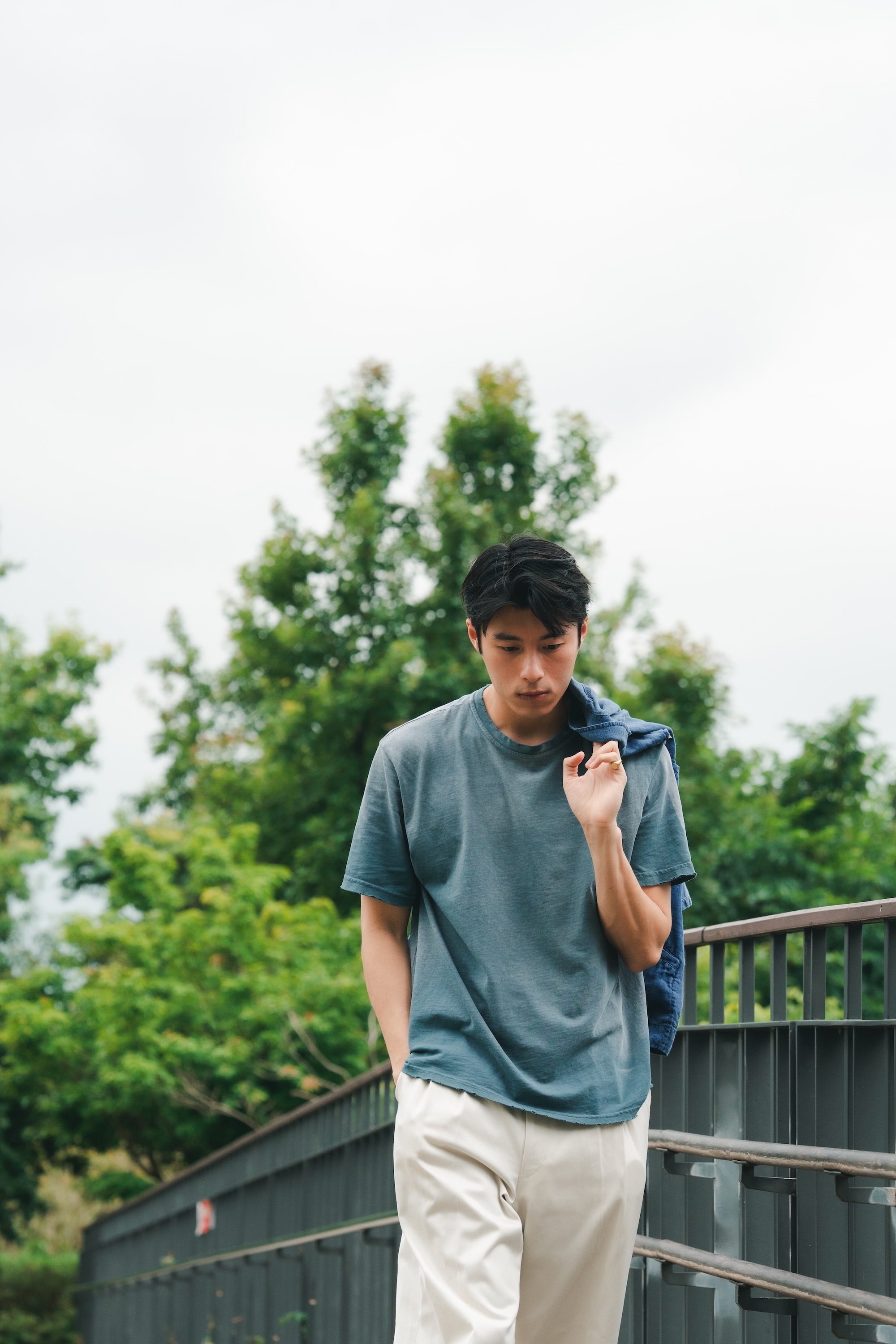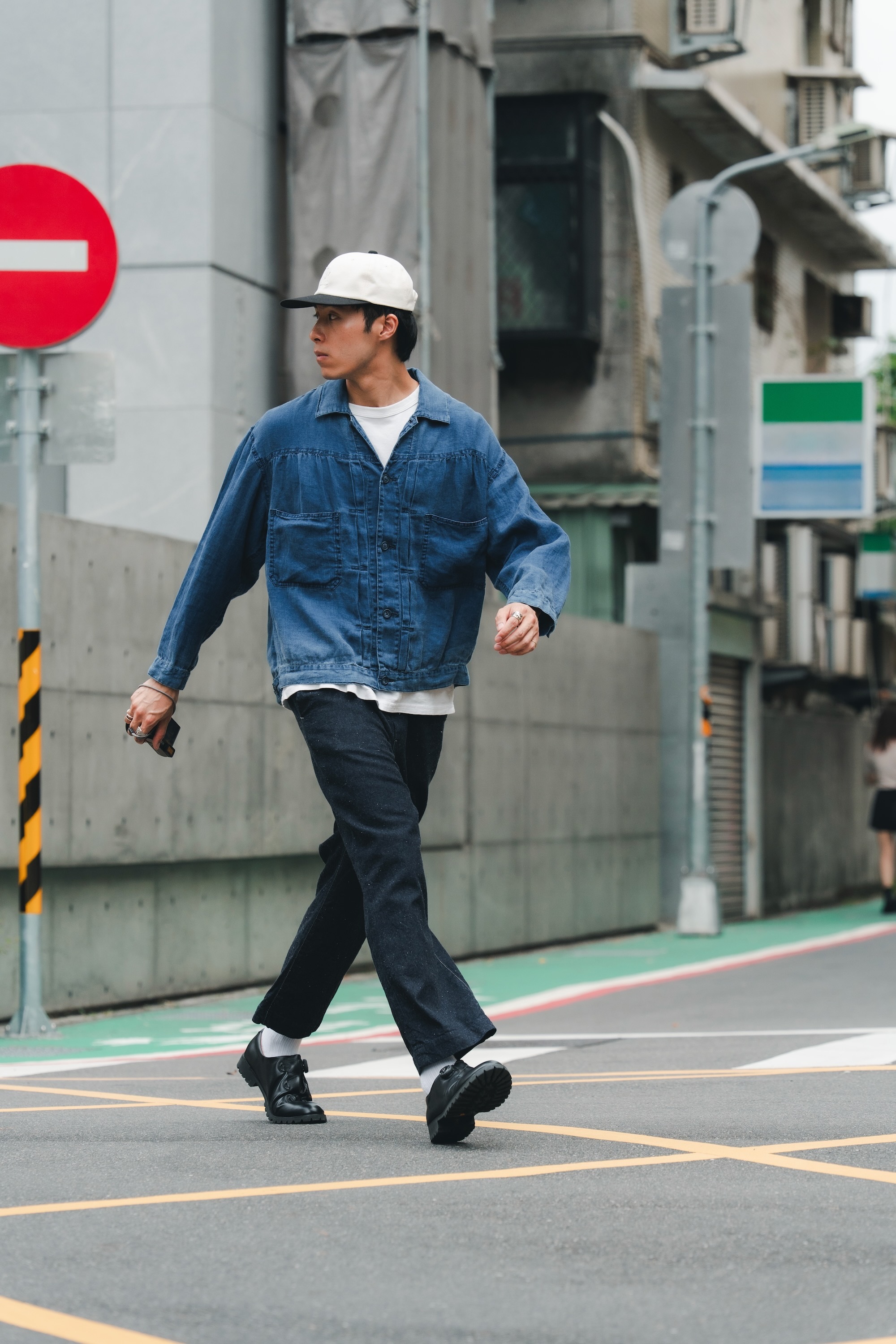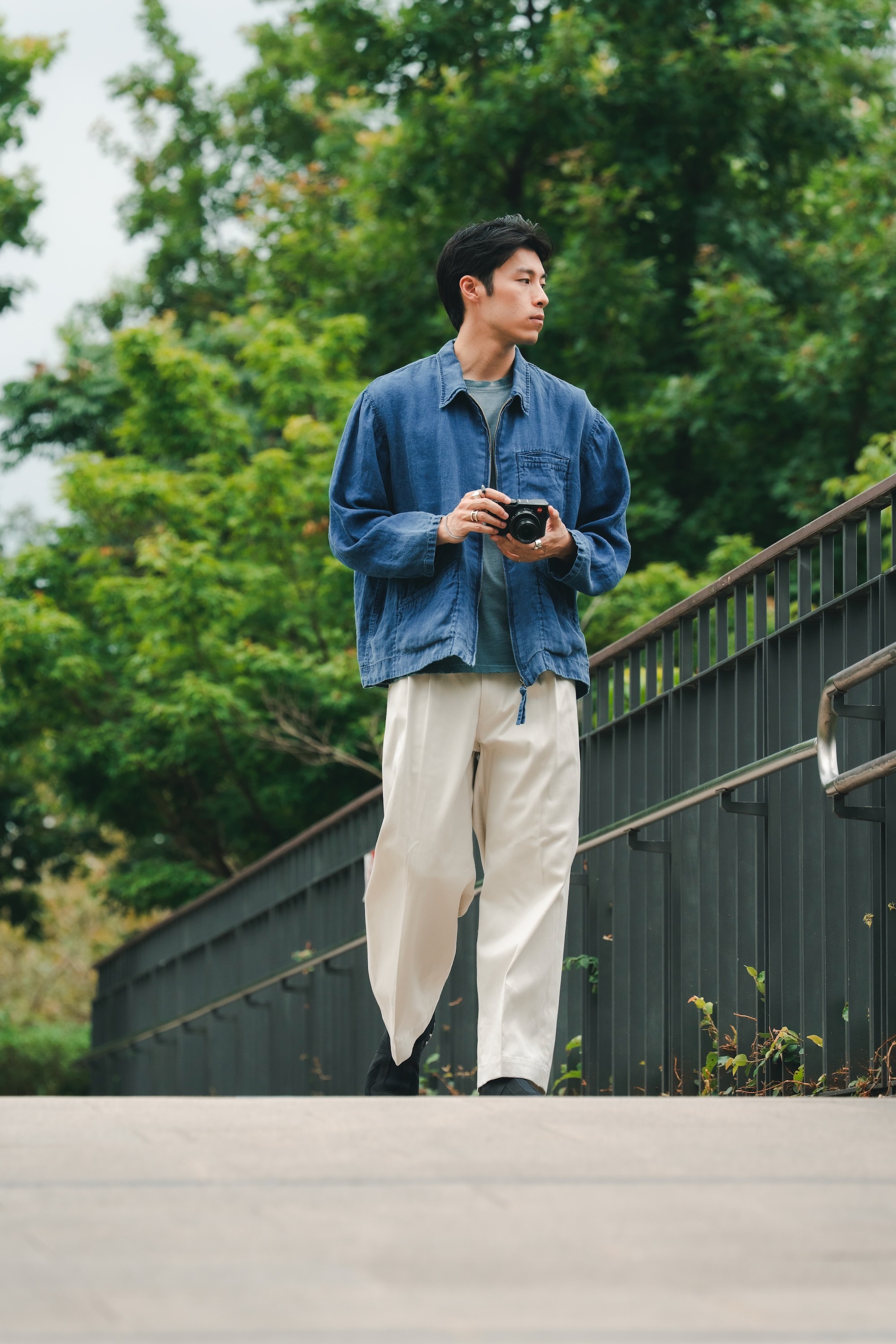 單寧外套與褲子來自日本品牌H.UNIT