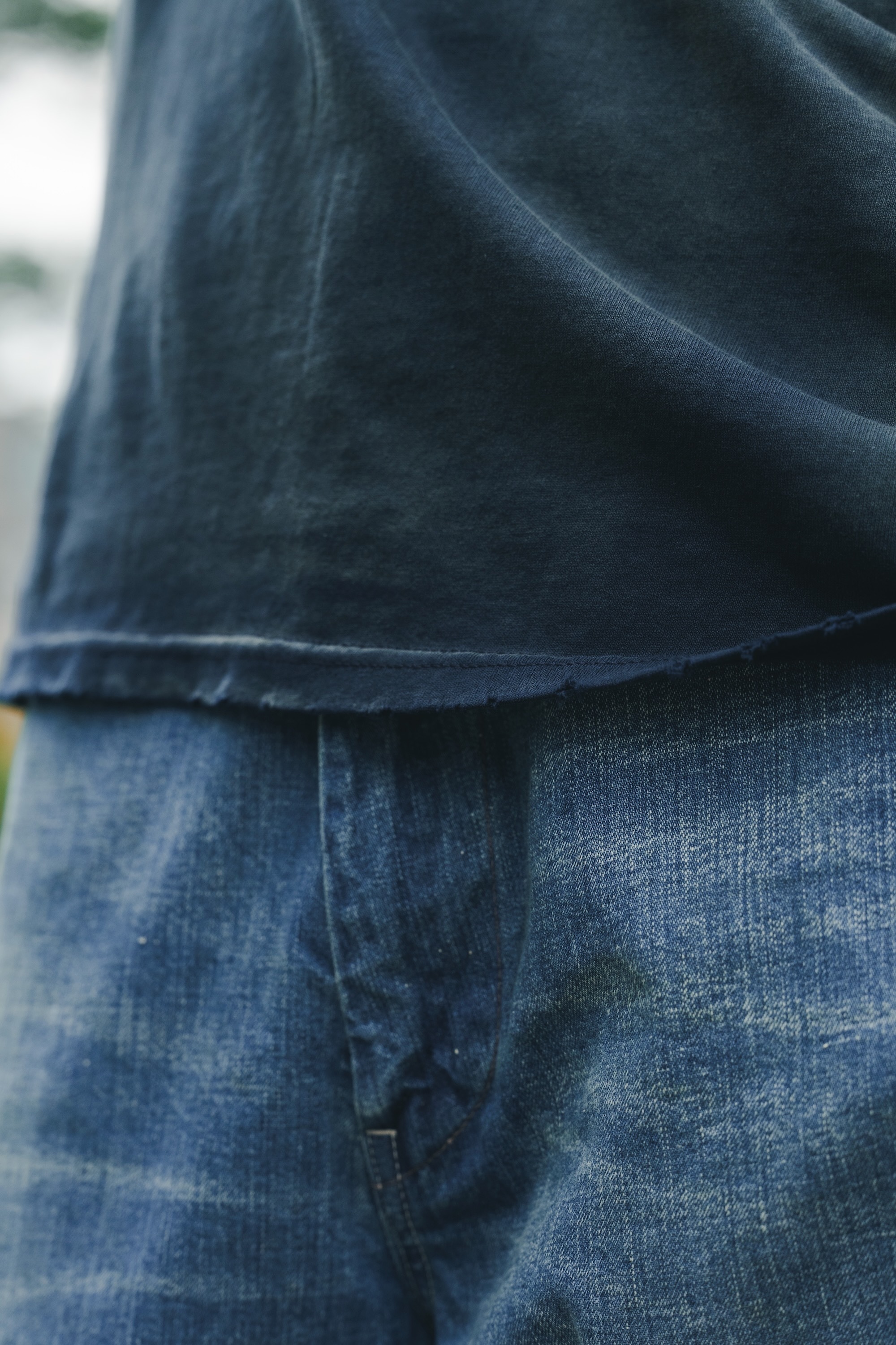這款INDIGO LINEN經過特殊褪色處理,呈現自然的色落效果,