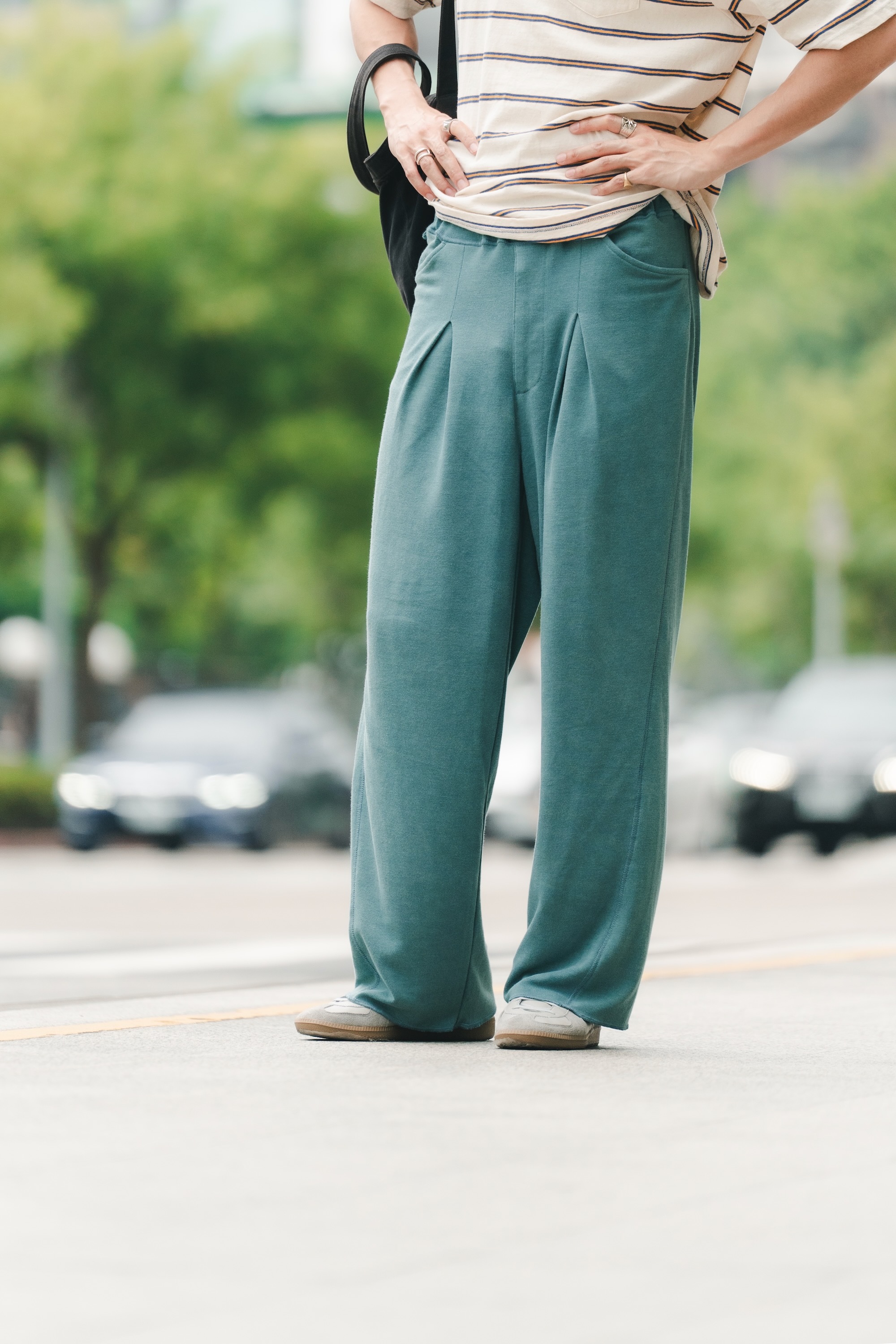 褲型份量感十足,輕盈的布料帶來自然垂墜感,營造獨特風格。