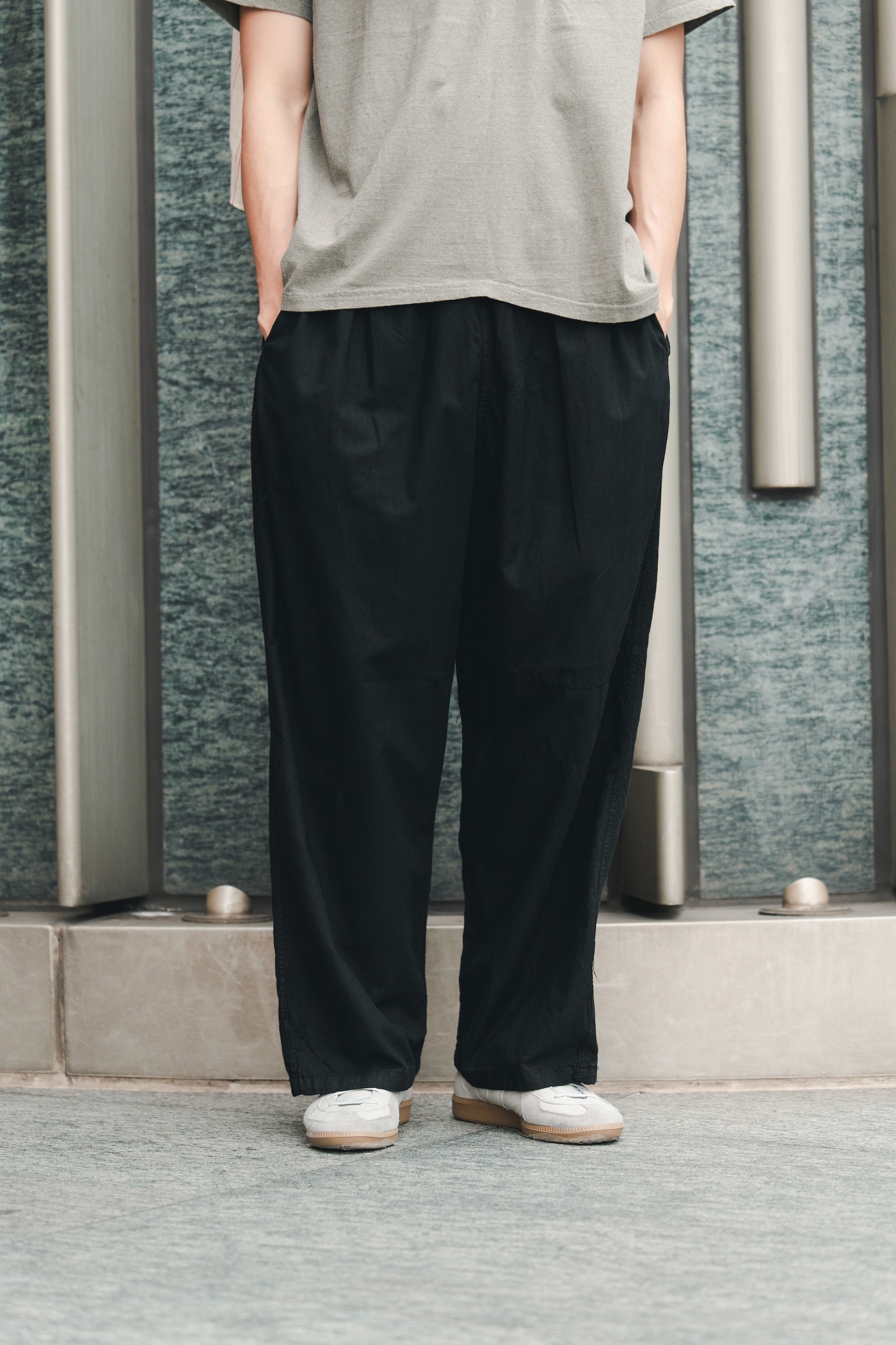 腰部的雙褶設計,提升整體寬鬆度與褲型立體度;同時加寬褲腳,使褲型整體更具份量感。