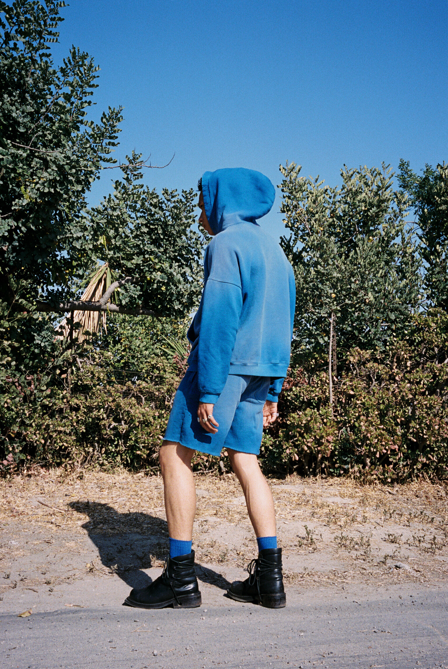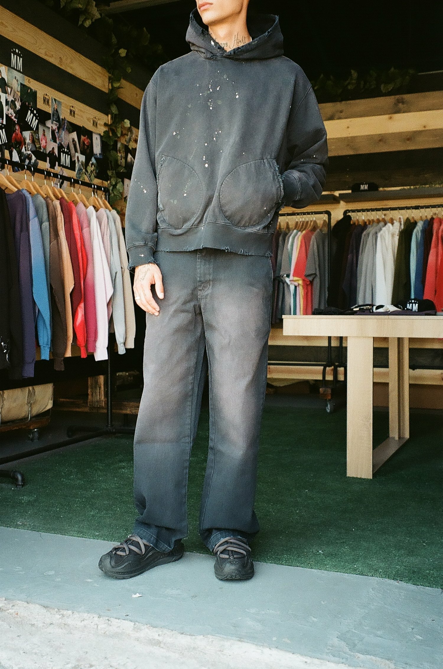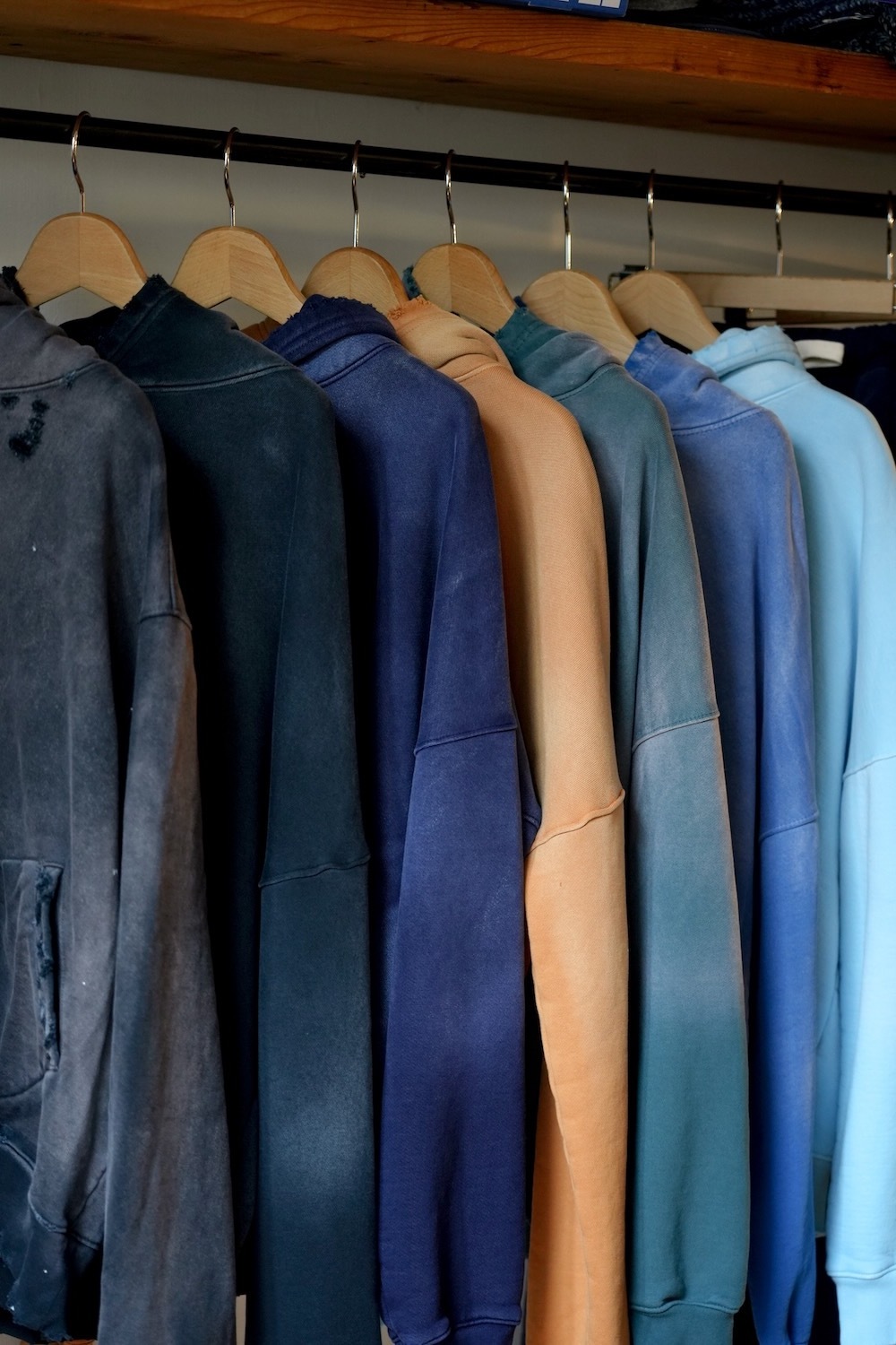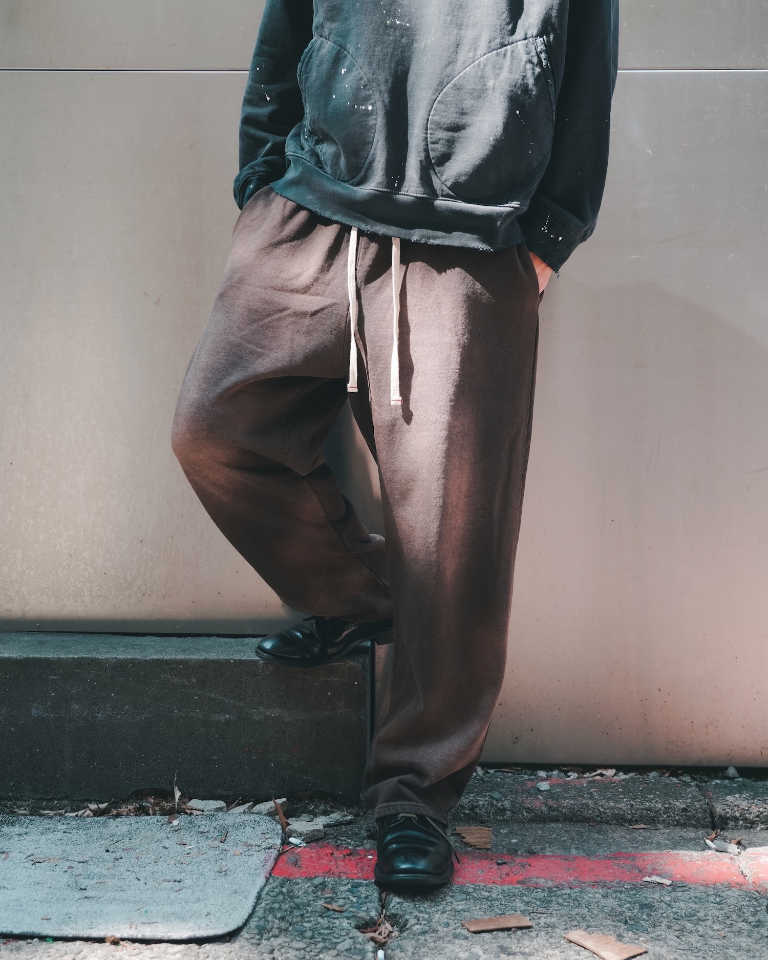採用寬鬆剪裁與自然色調,材質選用重磅棉布或有機材料,全程於美國製作,結合做舊刷破的處理工藝,讓每件都有不同的刷色和痕跡。