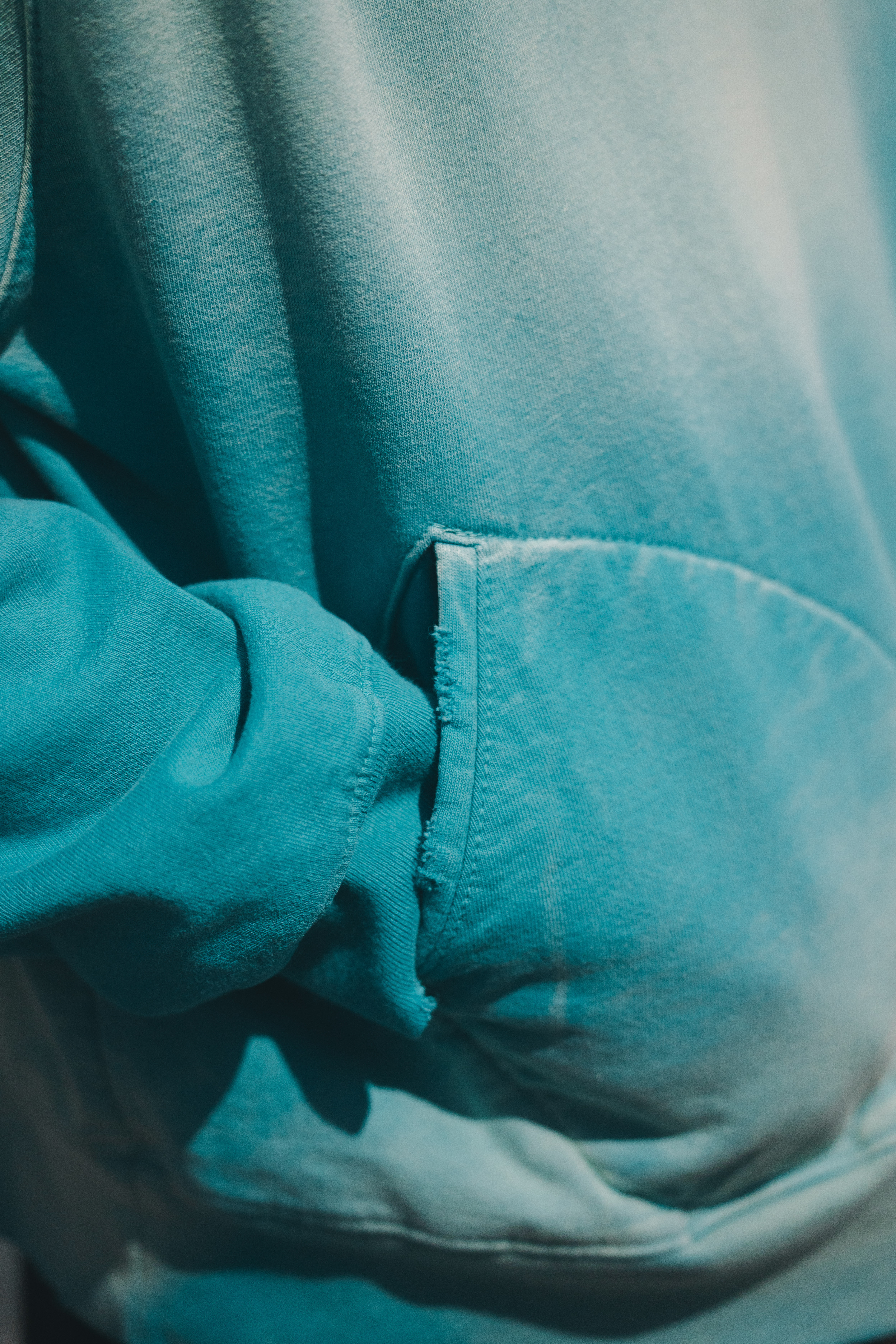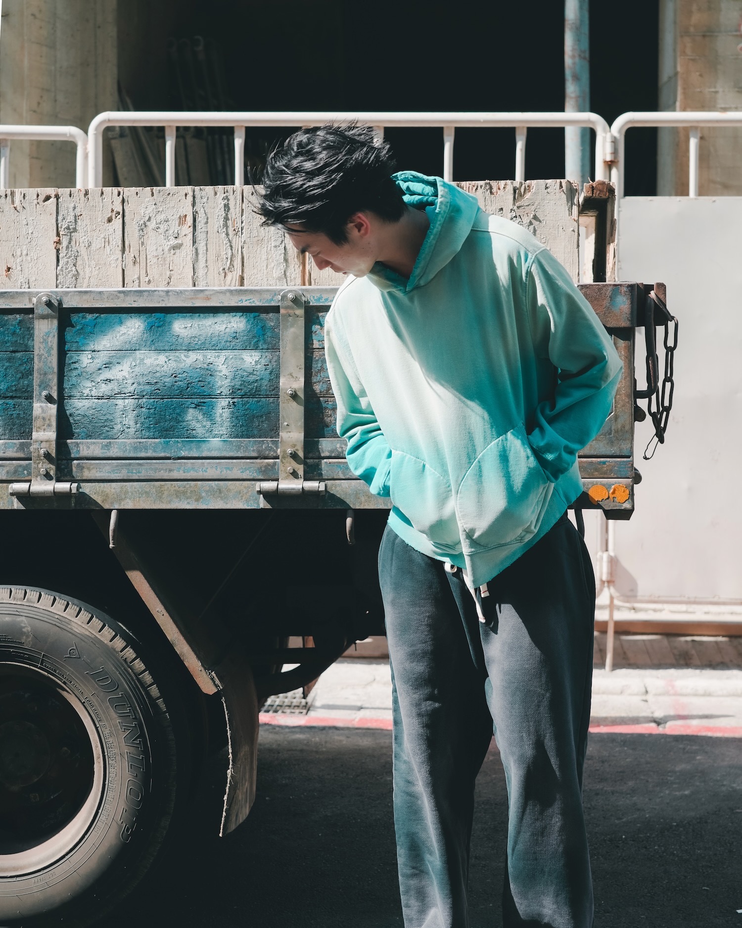 Aged Turquoise 這個顏色鮮明且彩度高,洗舊感十足,非常適合搭配日系風格穿搭。