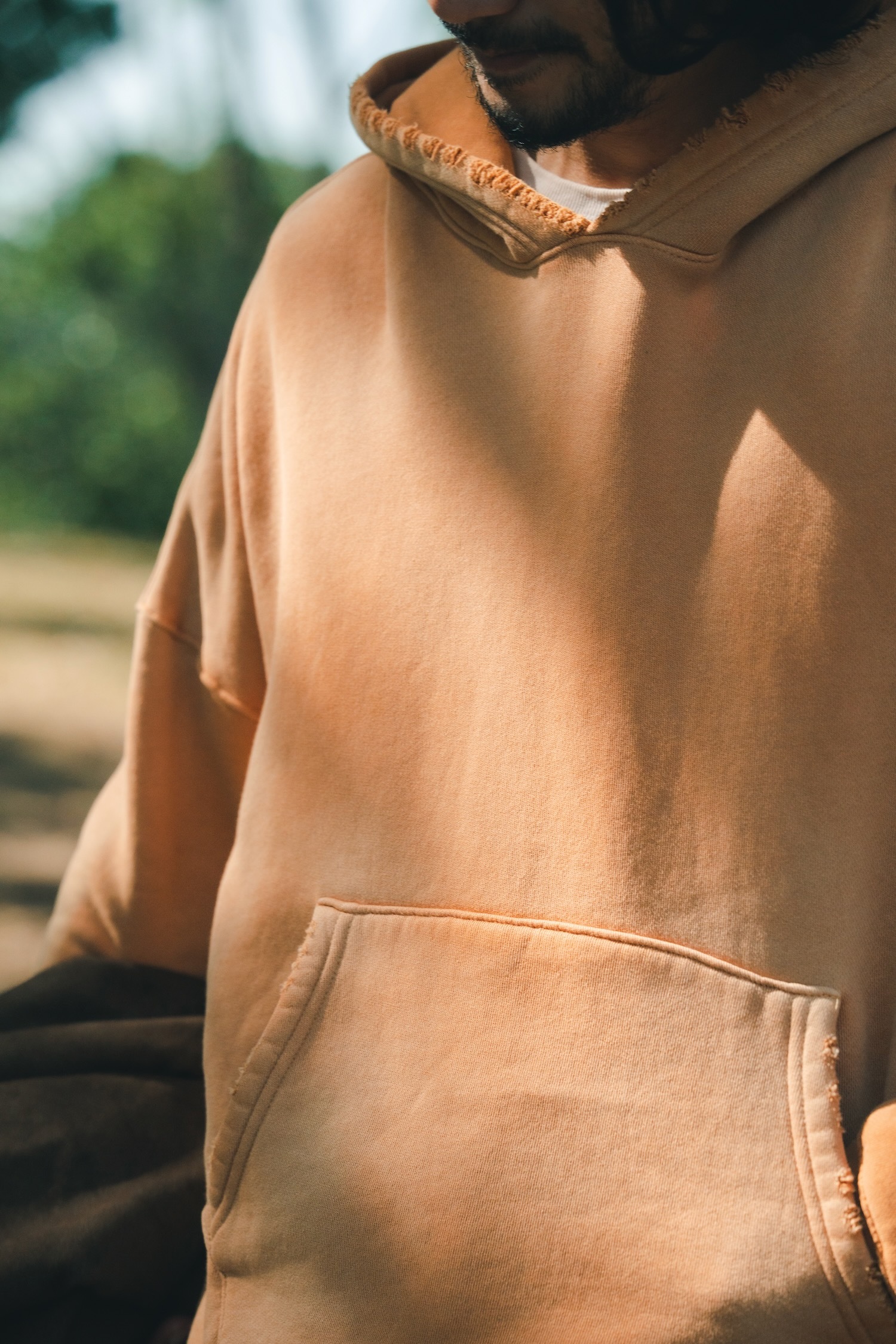 這款 Oversize Crop Hoodie 採用寬鬆方型版型,使用20盎司Fleece抓絨布料與落肩設計。