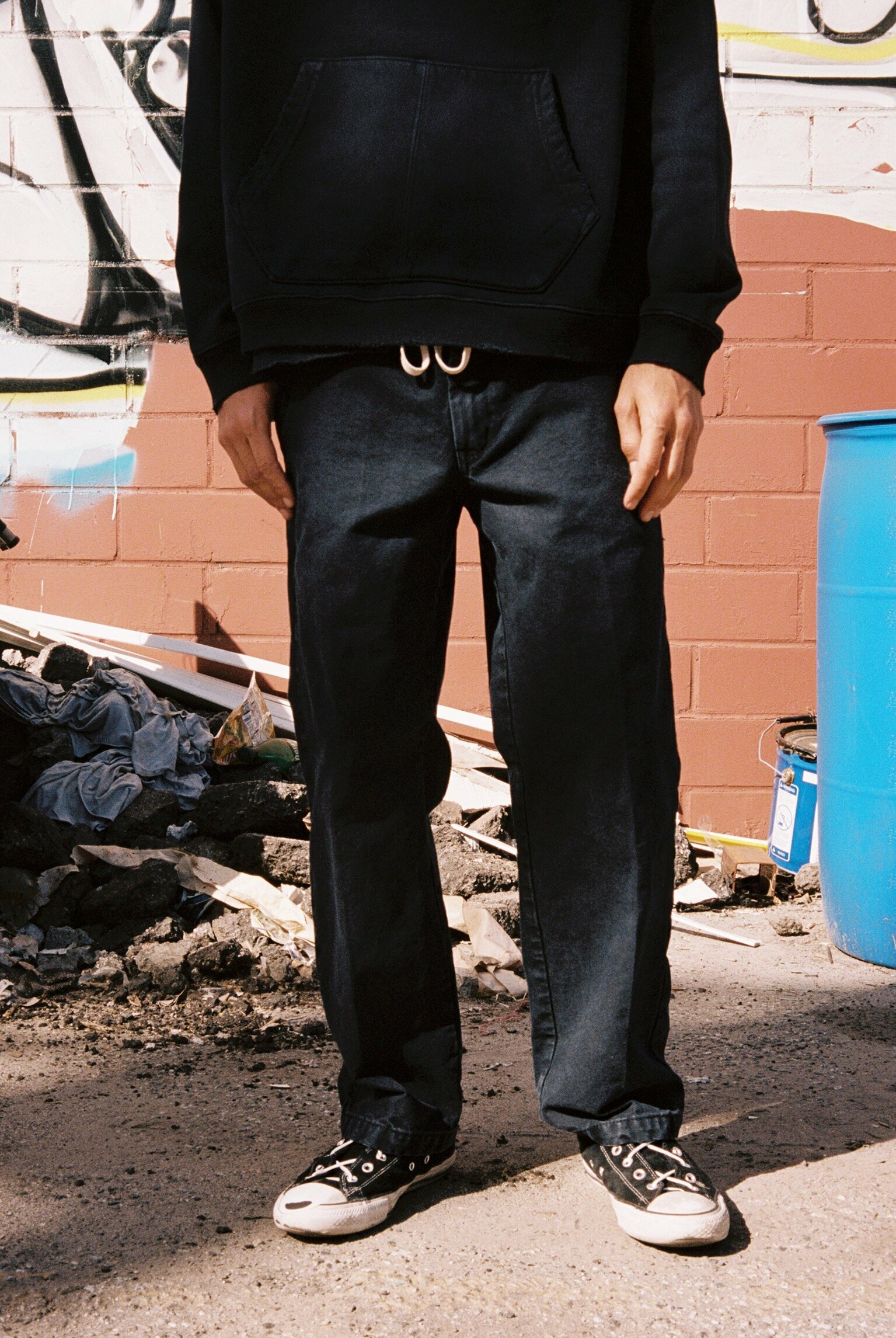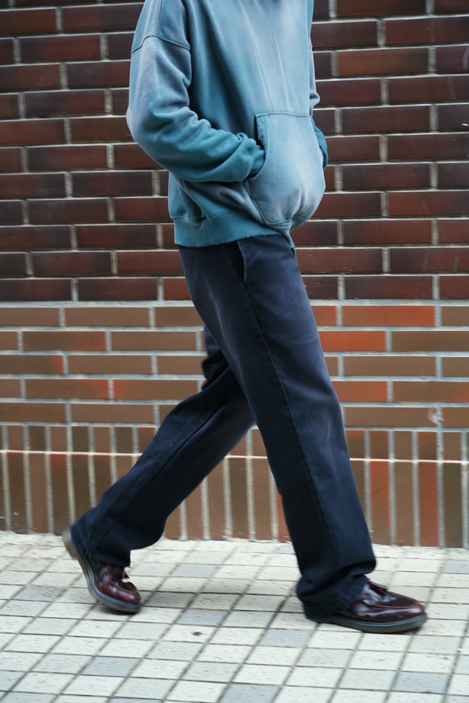 刷色的棉褲少見,版型直順,因為使用20盎司的棉料,所以該有的挺度也是有的。