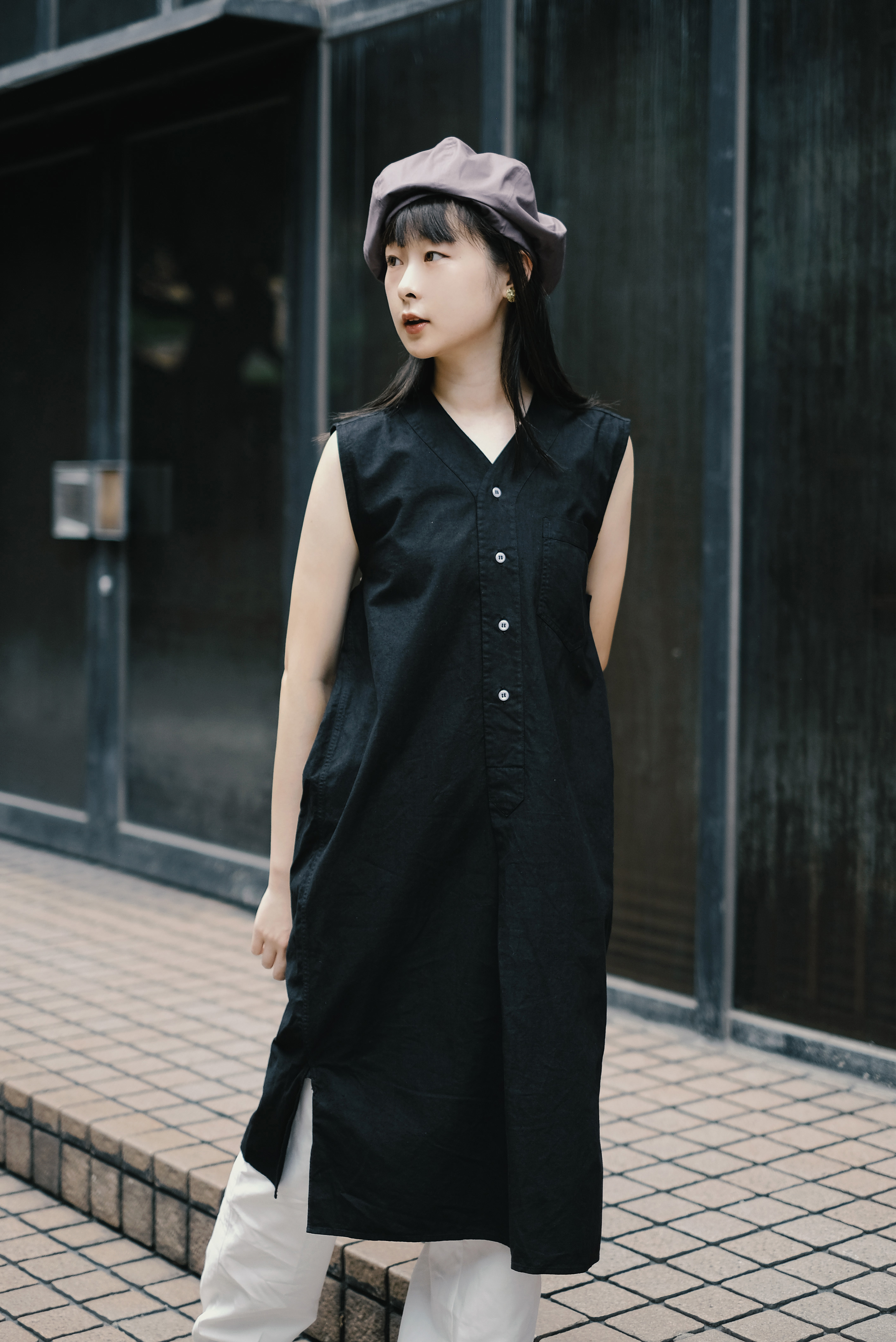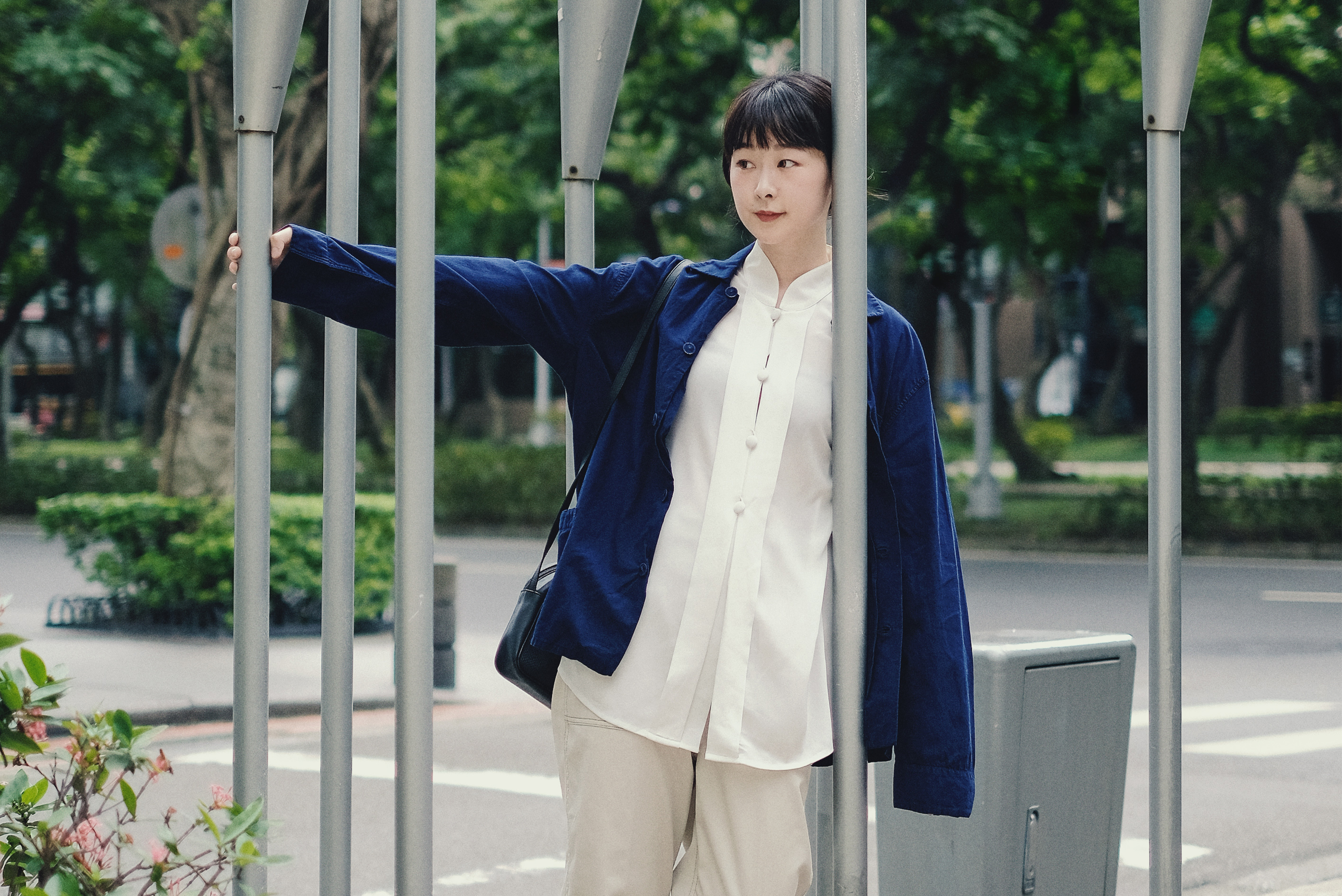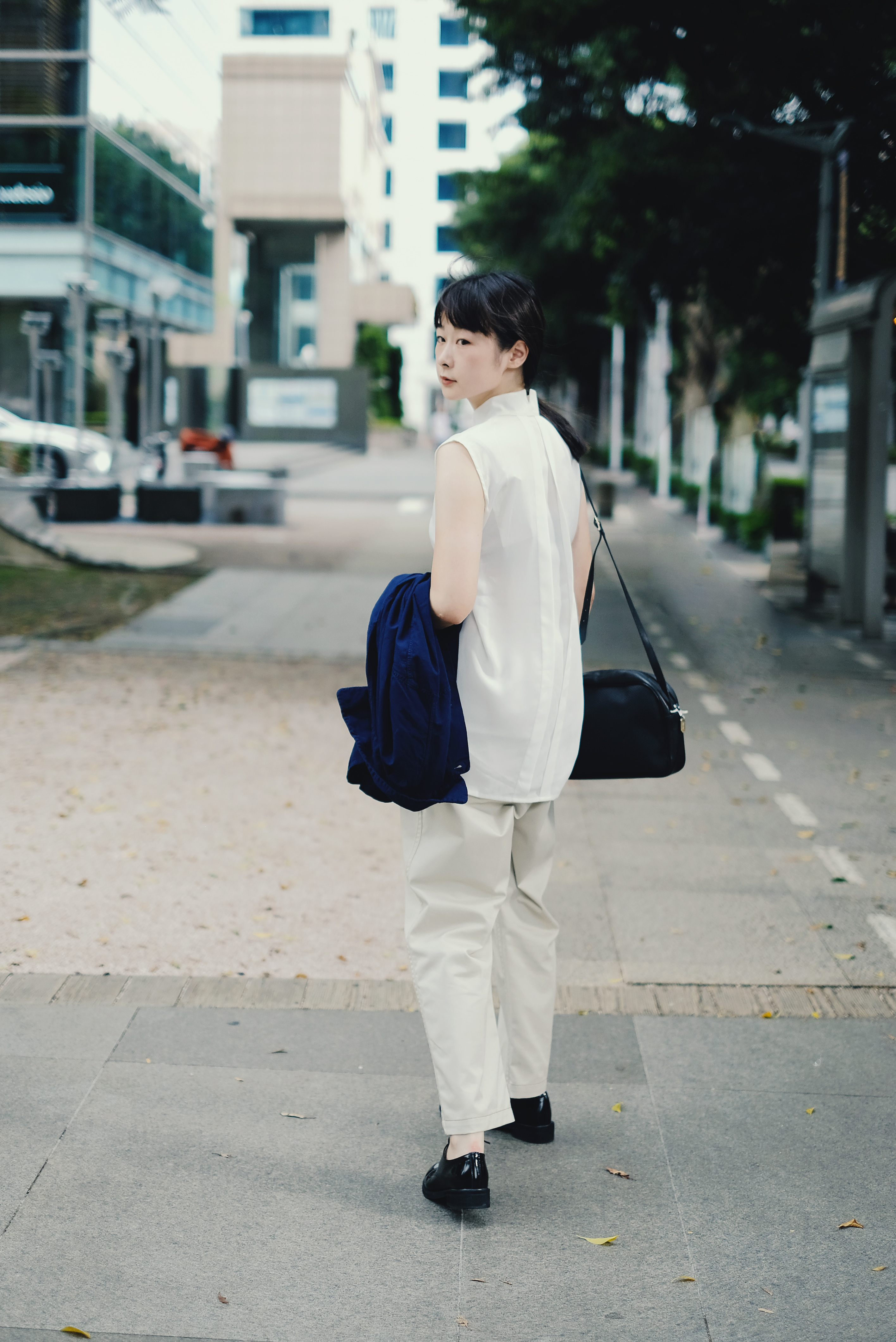 將制式的長袖改為夏日可以清爽搭配的無袖版型,並以皺褶收攏袖口,避免每一次舉手投足拉扯的窘況,並且更修飾女性的身形。