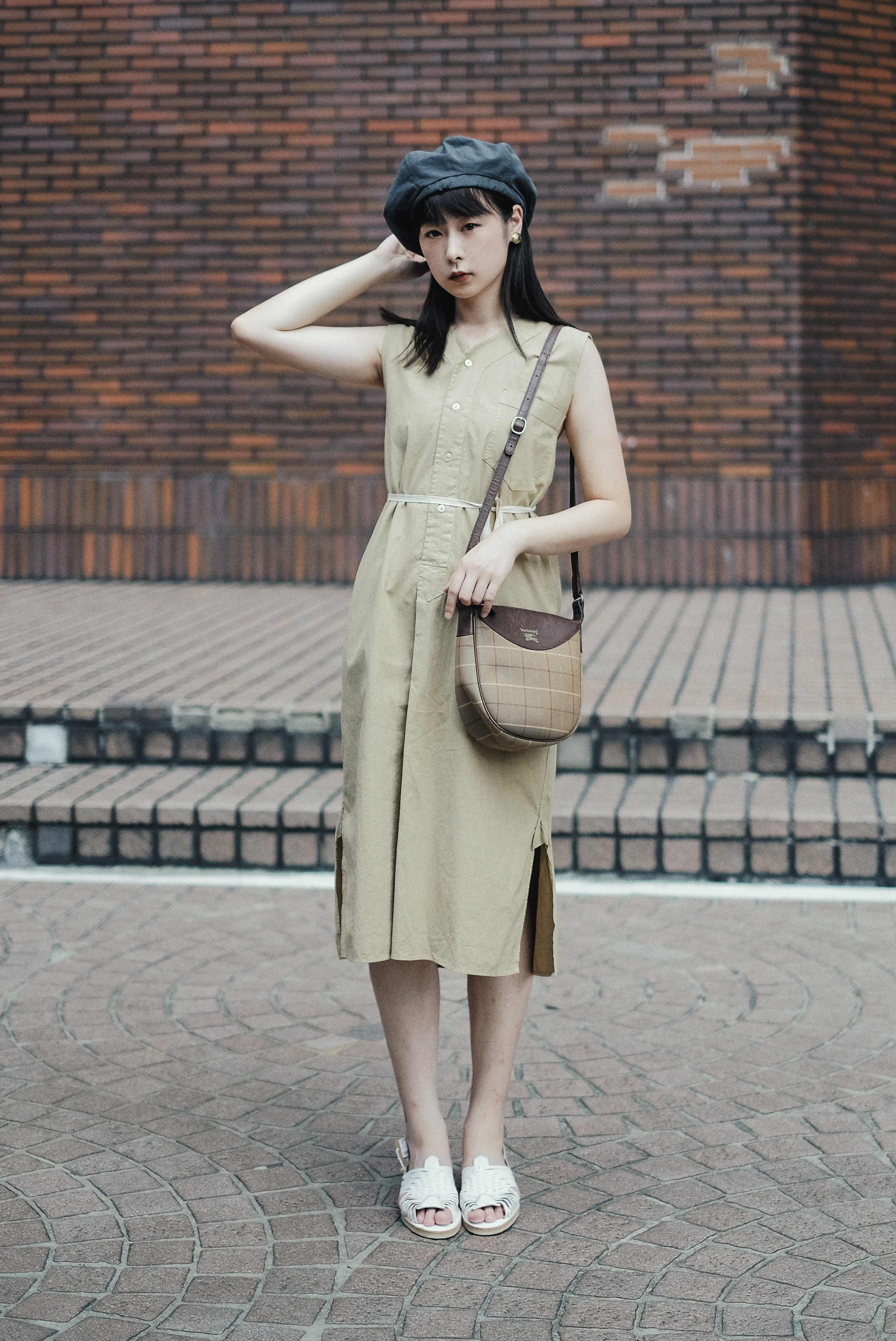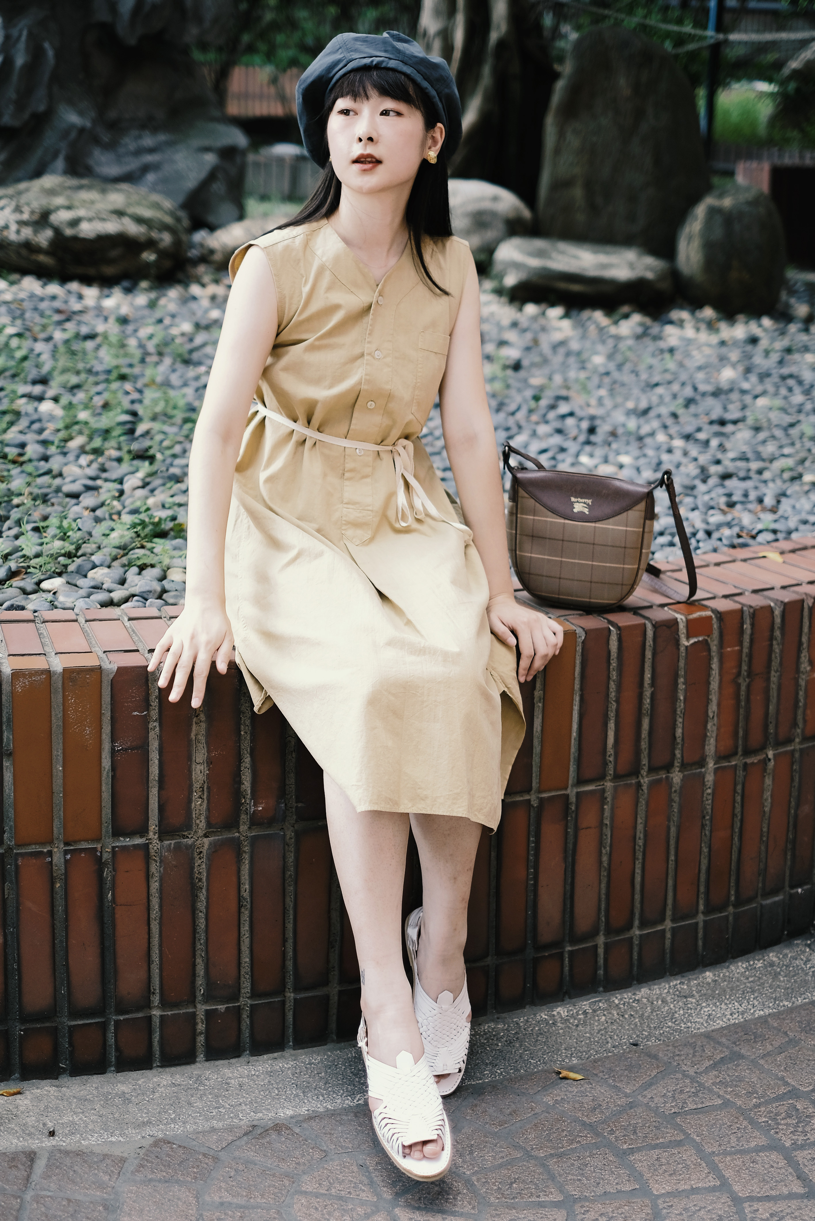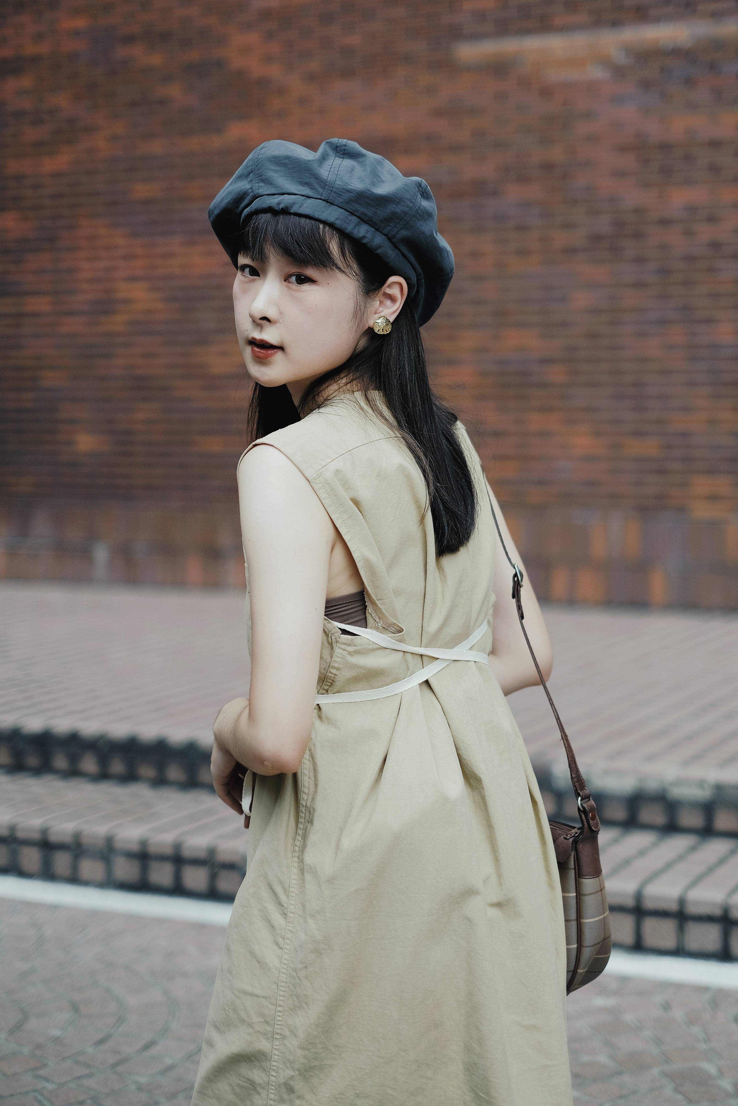 以綁帶收緊腰線抹去洋裝寬鬆的休閒感,強調出溫柔的氣質。