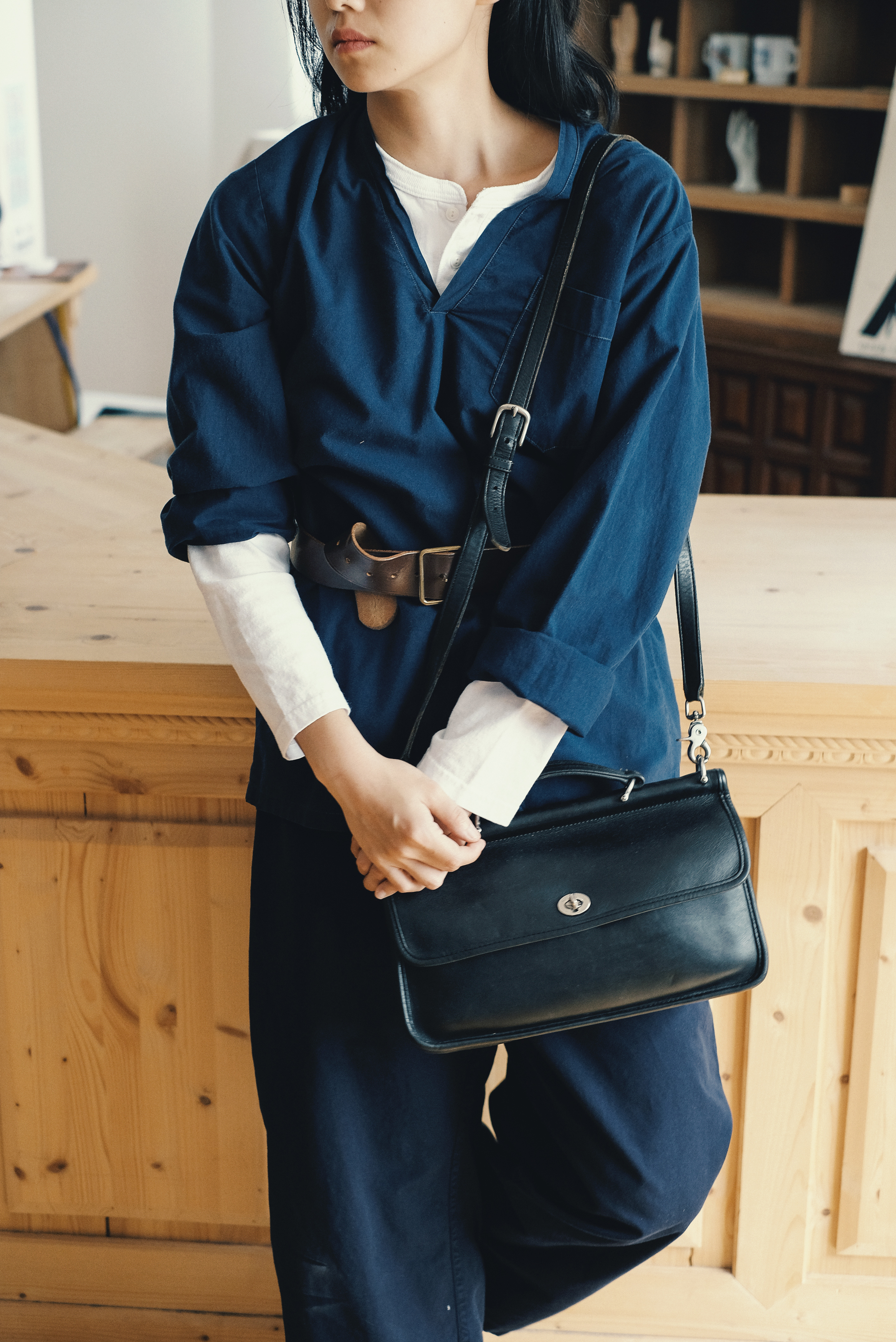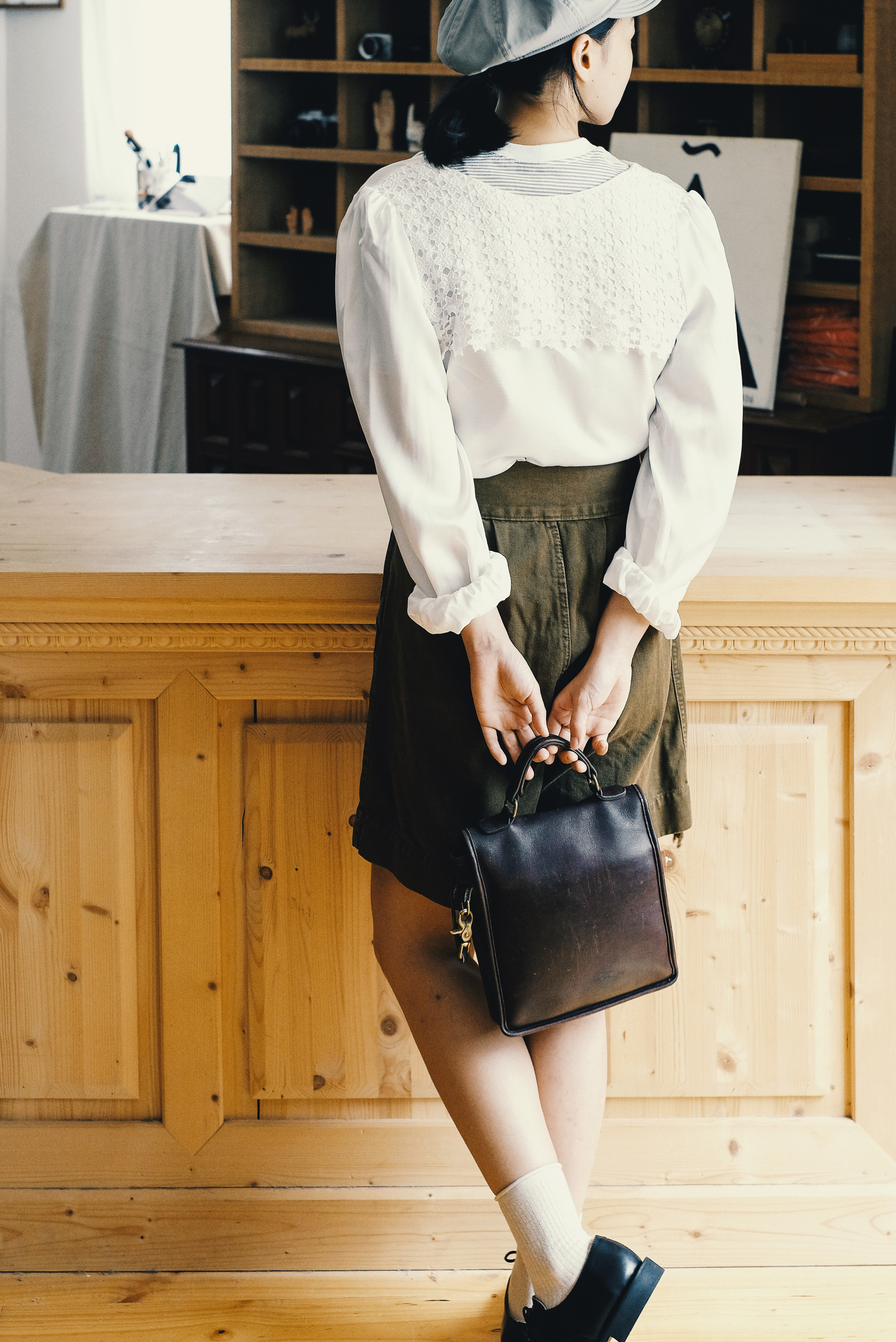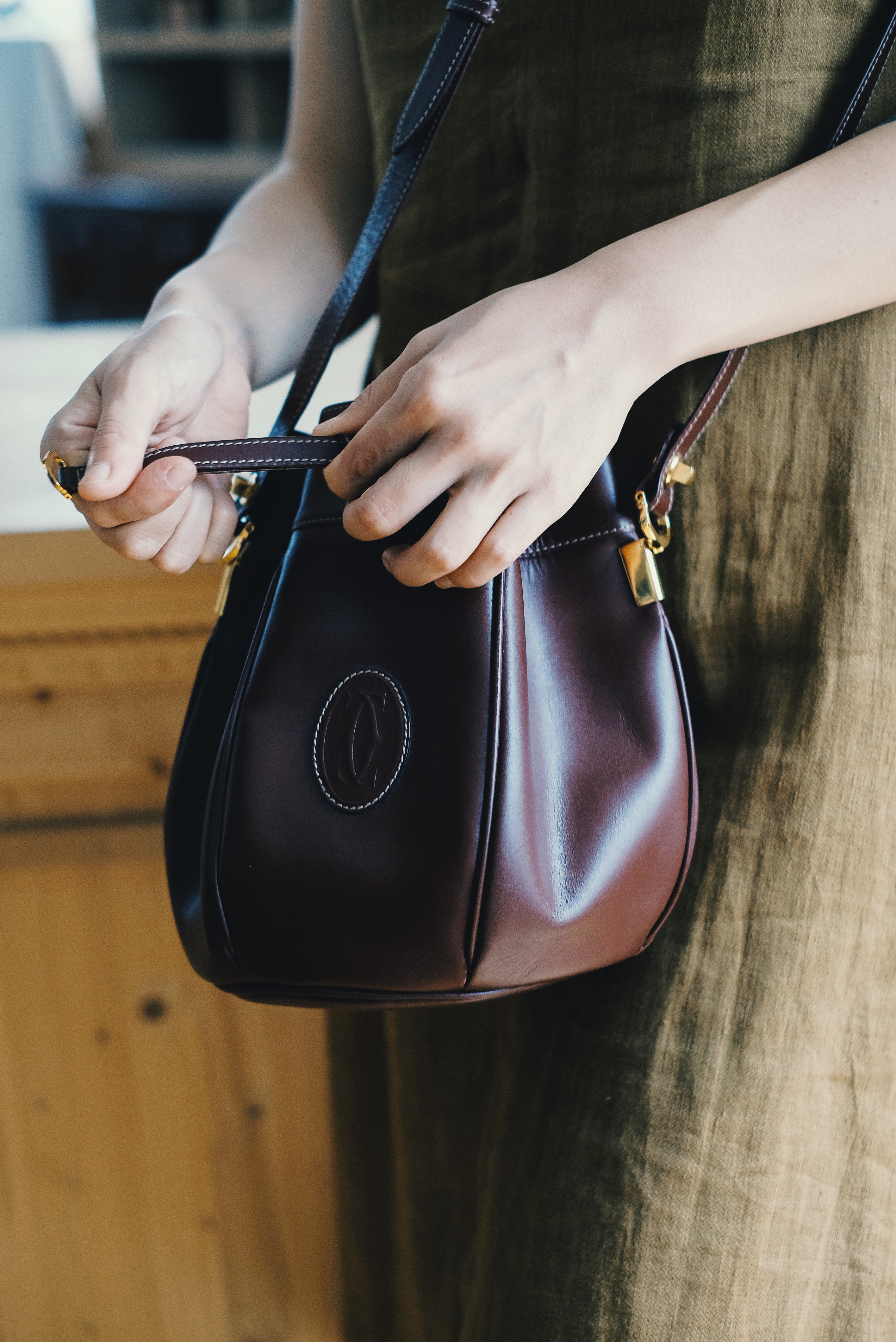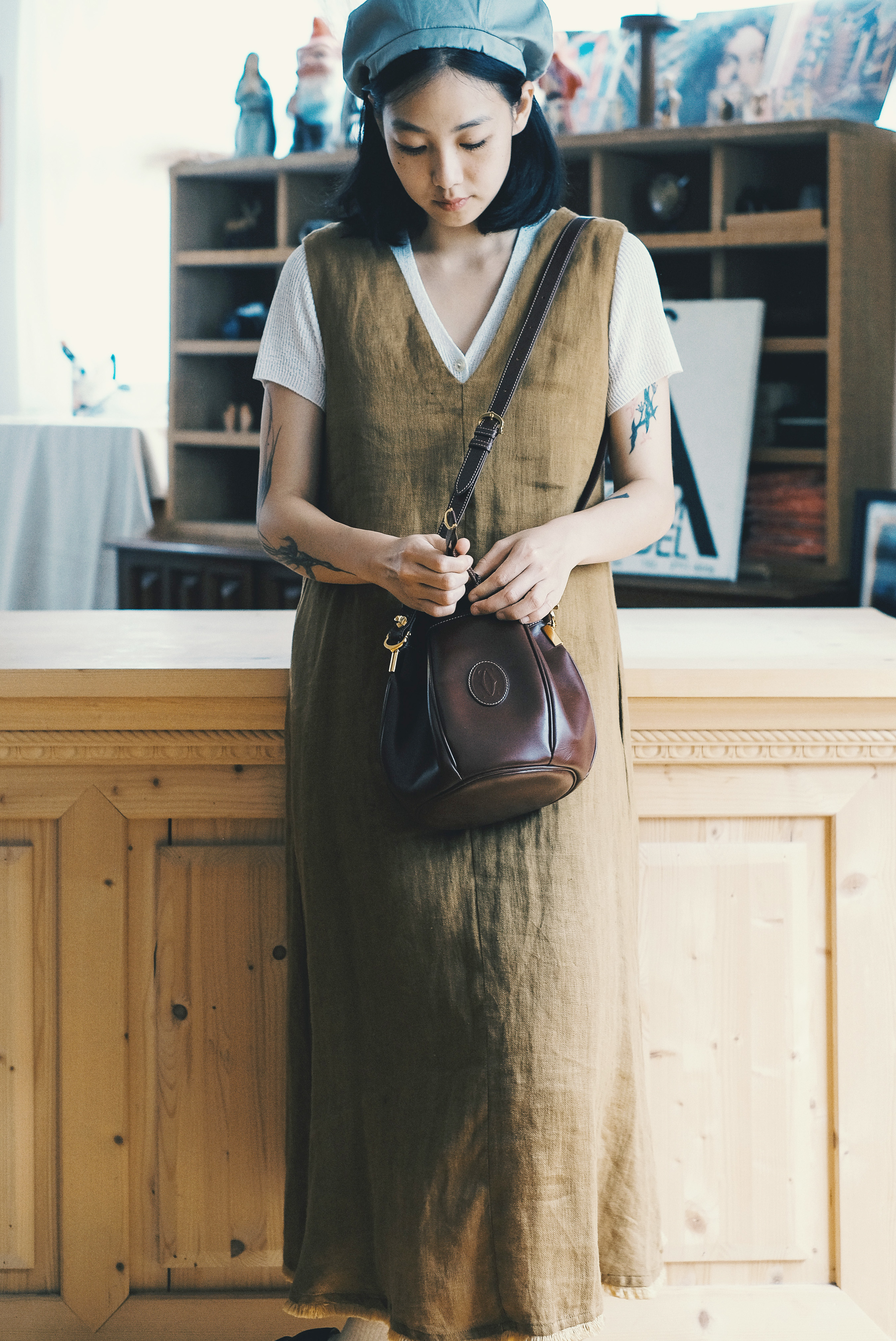 容易賴床的星期一,不需要思考太多,簡單的T-shirt搭配上質樸Vintage洋裝並隨手抓起A ROOM MODEL染製的貝雷帽,飽滿卻不過度搶眼的染色在布料上細膩地鎮守著沒有太多時間梳理的髮絲。搭配得宜的Vintage Cartier球型包就像為這身內斂的穿搭加冕,讓穿搭的質感大大地昇華,好的皮件經過時間的加承所呈現的光澤讓人由內而外散發出麗雅的氣息,掩蓋住星期一的懶散和憂鬱。