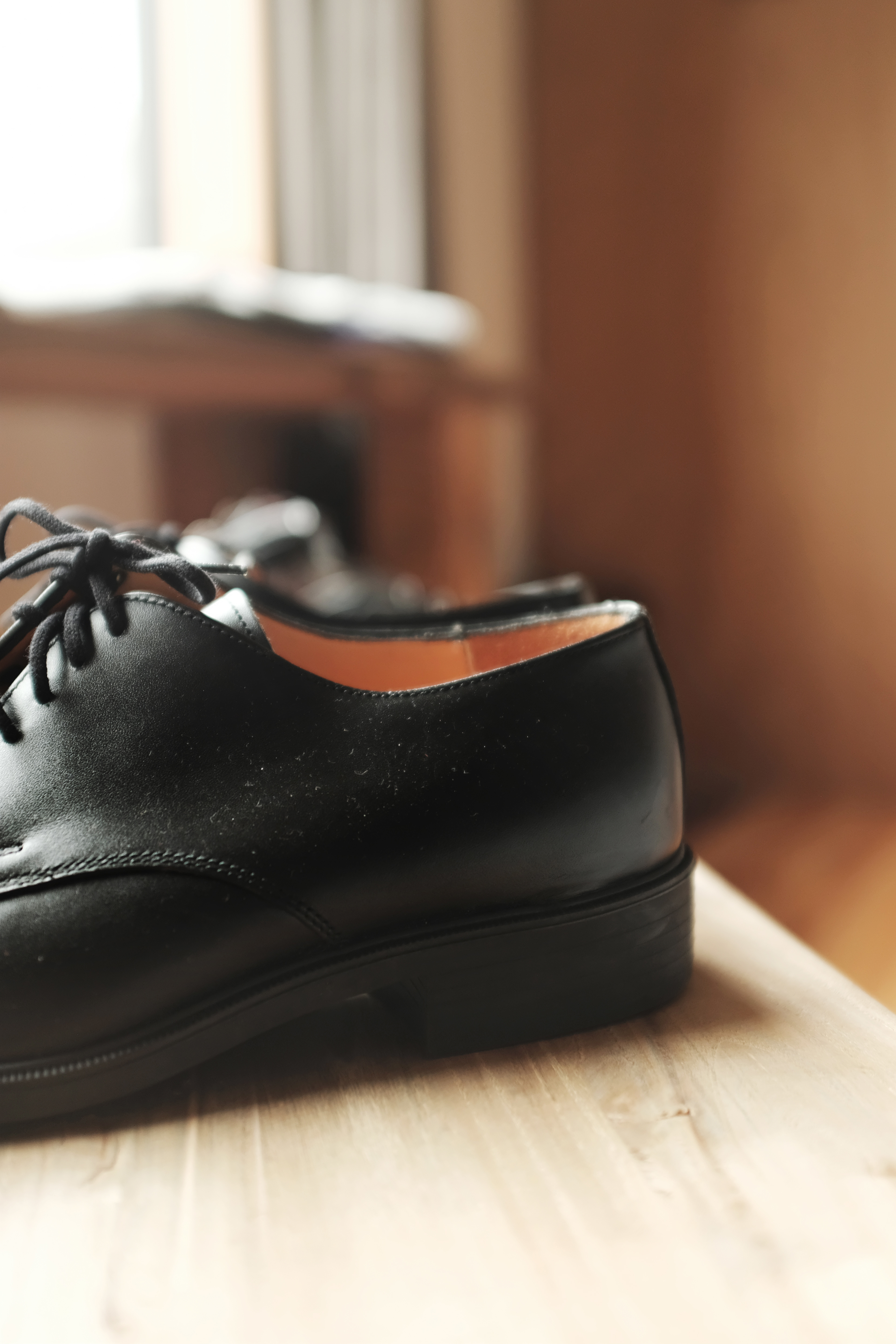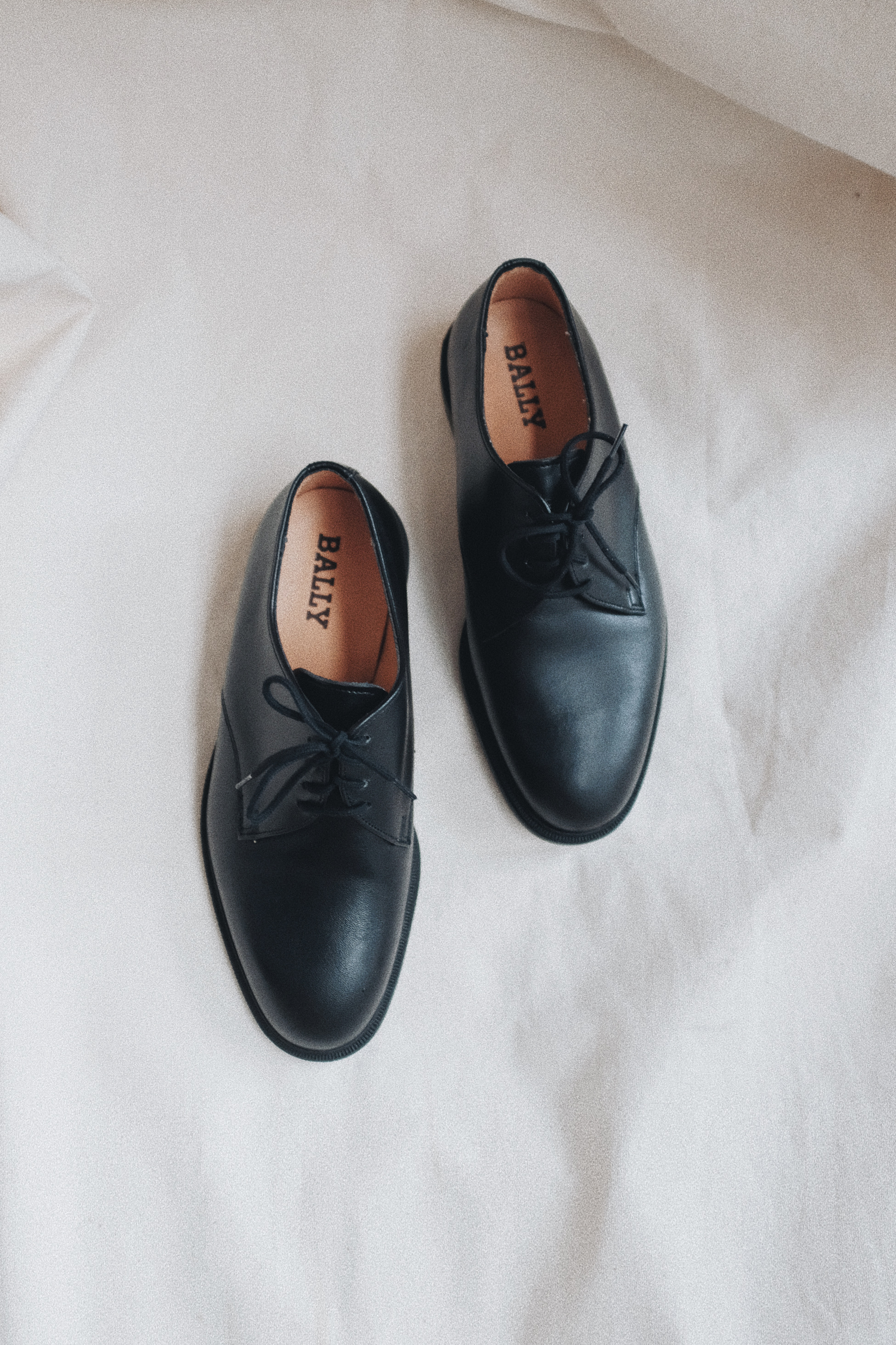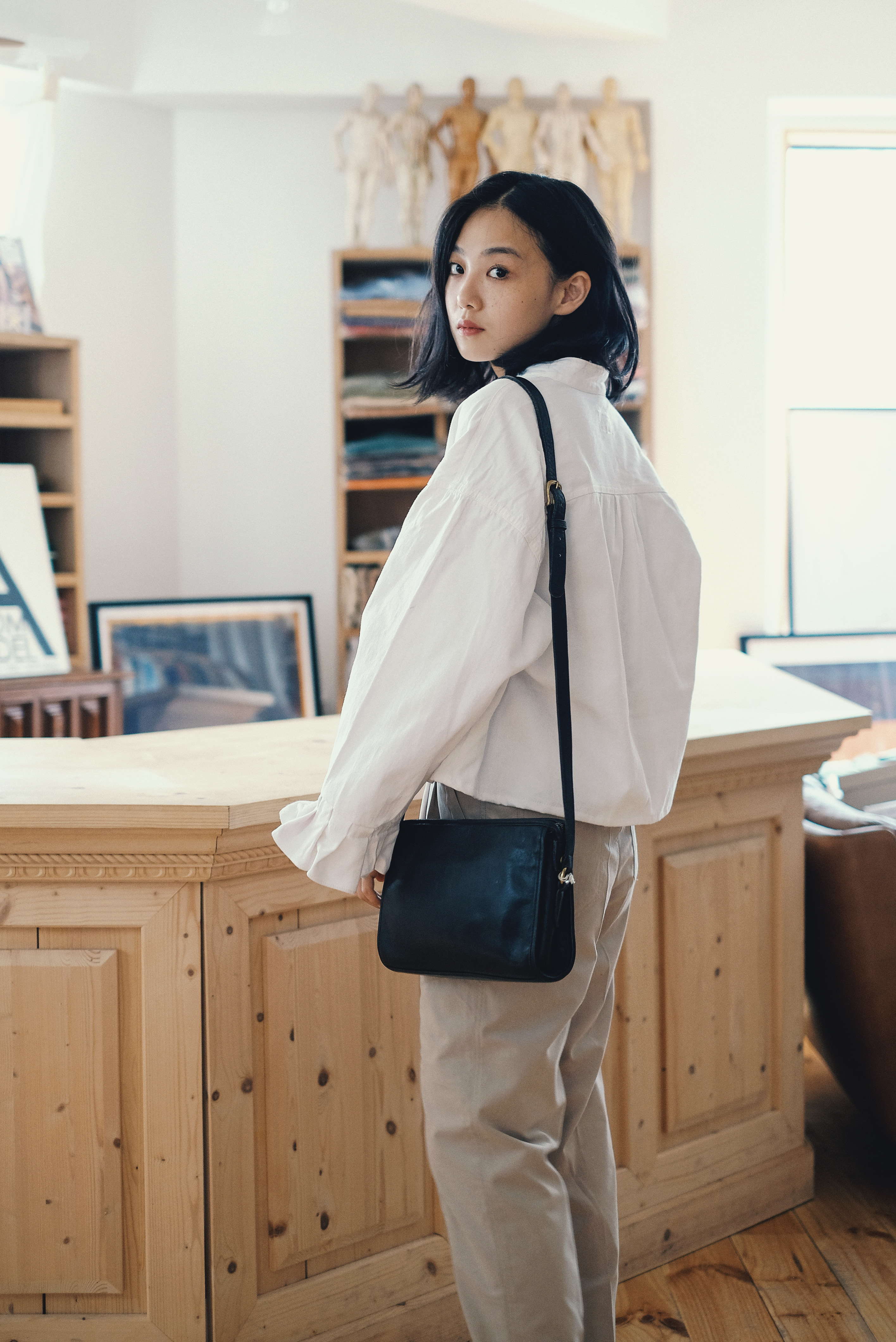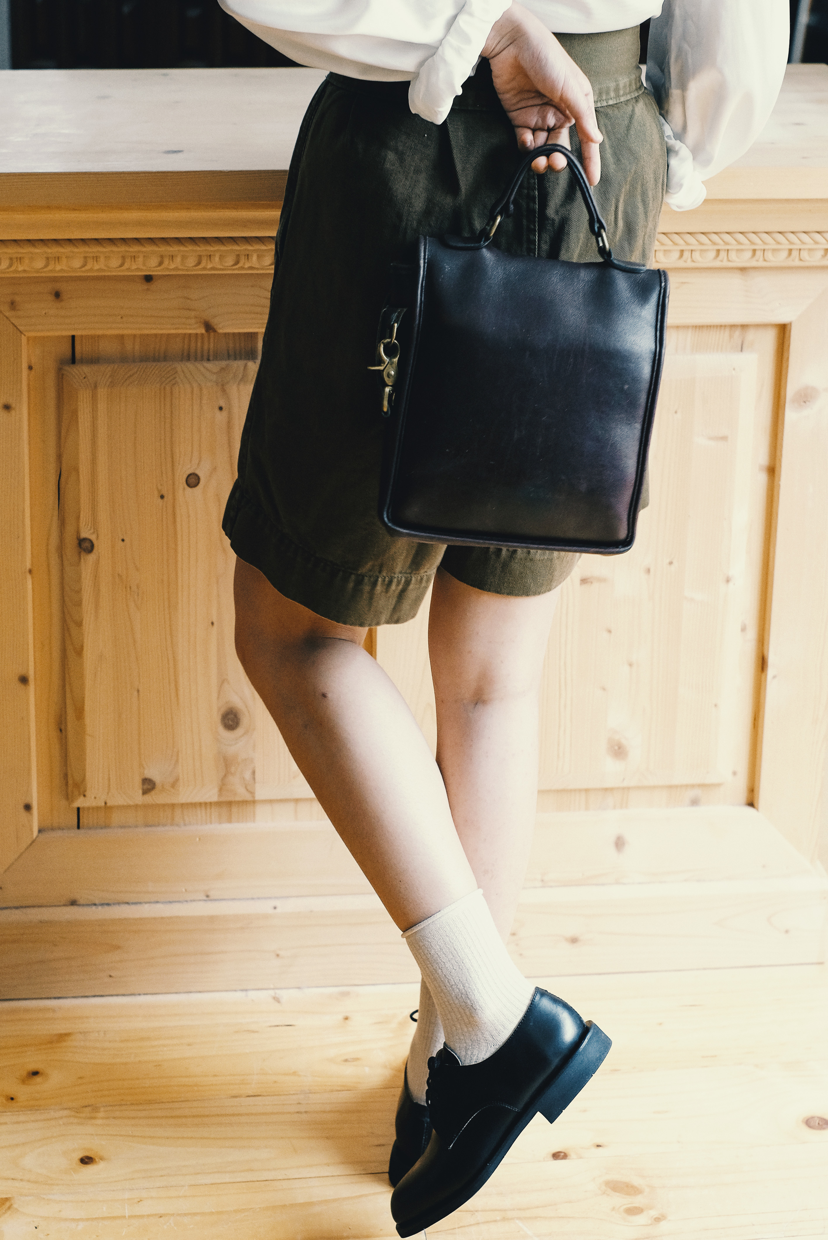 鞋款以非常罕見的女性軍裝的法國軍用皮鞋進行搭配,全黑的皮革微微反射著光線,耐久與耐走的橡膠鞋底從側邊以堅固的縫線固定著。最令人著迷的是目前市面上不多見的鞋型設計,符合腳型的圓潤尖頭讓無法適應尖頭也能嘗試,輕鬆駕馭職場中微正式的場合,打造中性幹練、知性挺拔的精明形象。