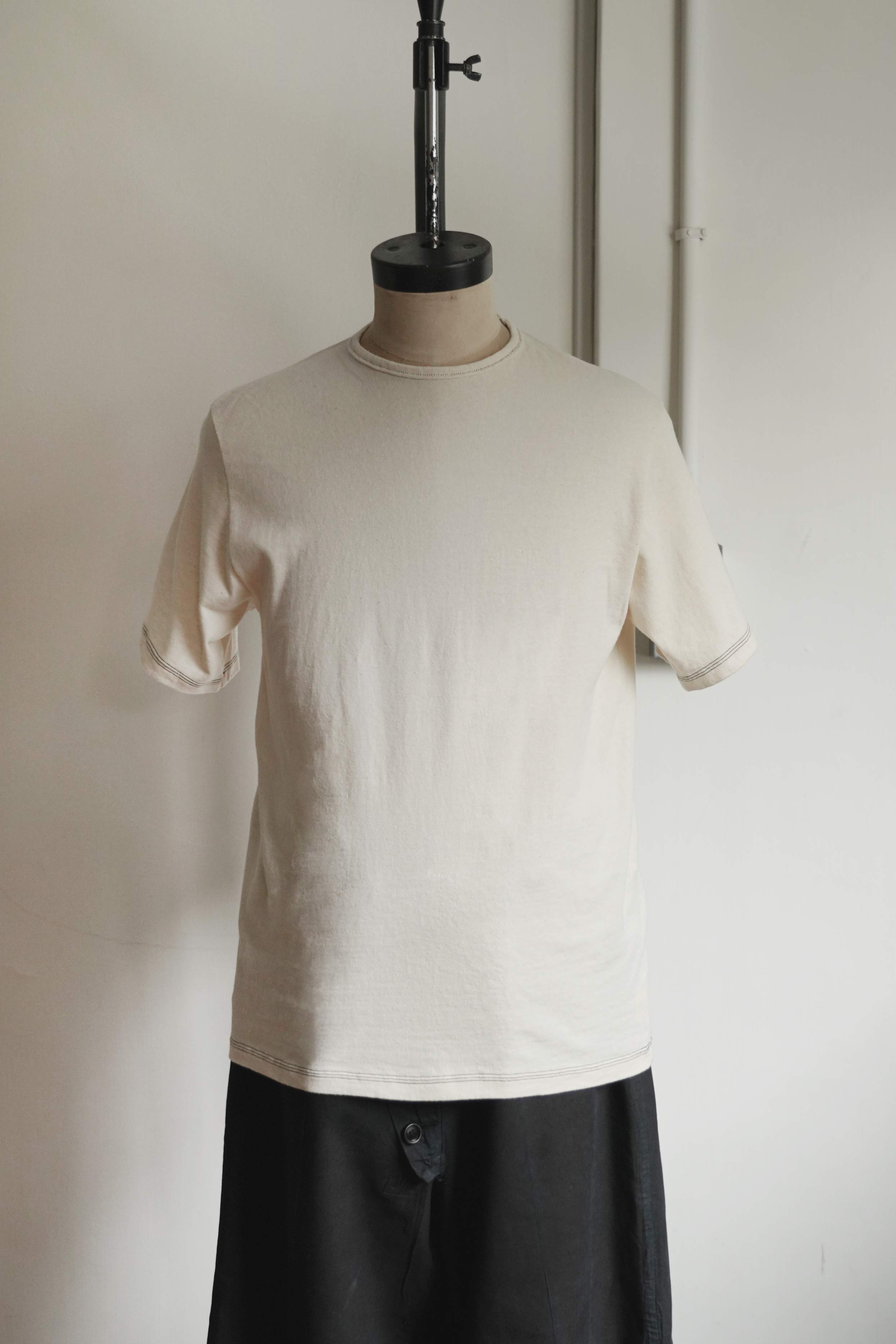 接著將店內所有圓領tee品牌一一試穿評比,光從照片乍看下沒有非常大的差異性,畢竟是最基本的圓領tee,但仔細在版型、質地、細節詳盡的觀察觸摸後,每款T-shirt各有獨特之處值得介紹