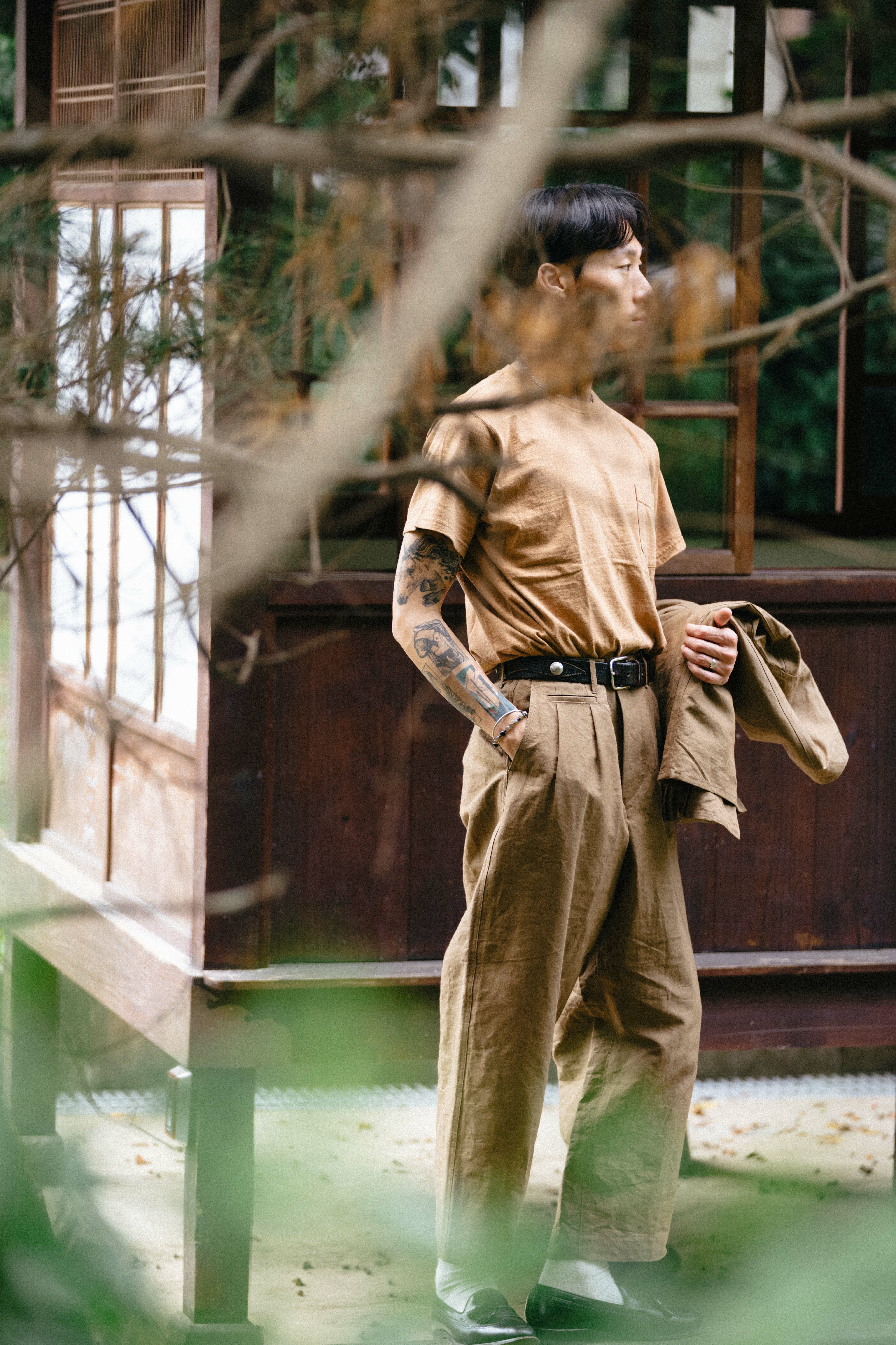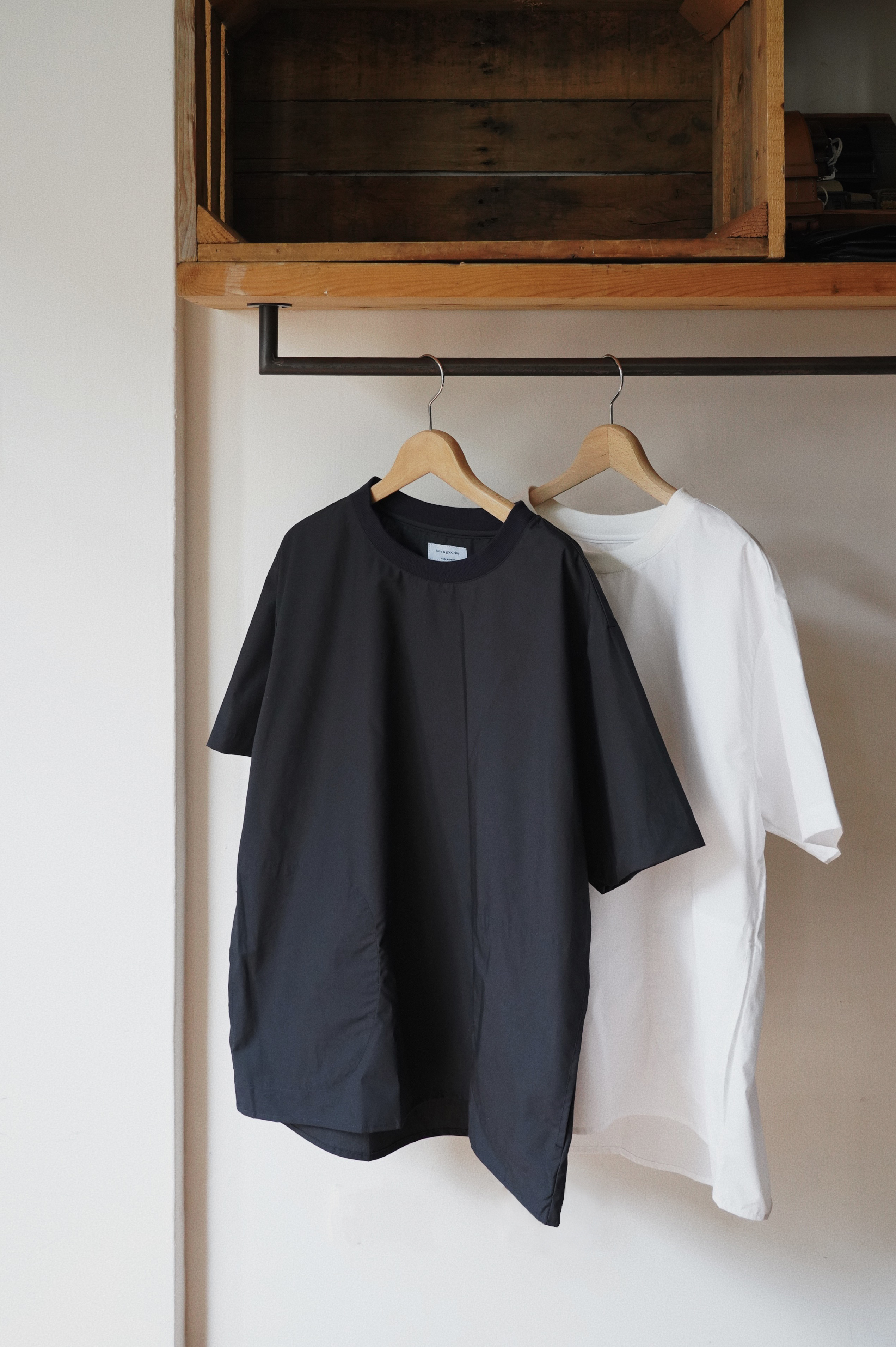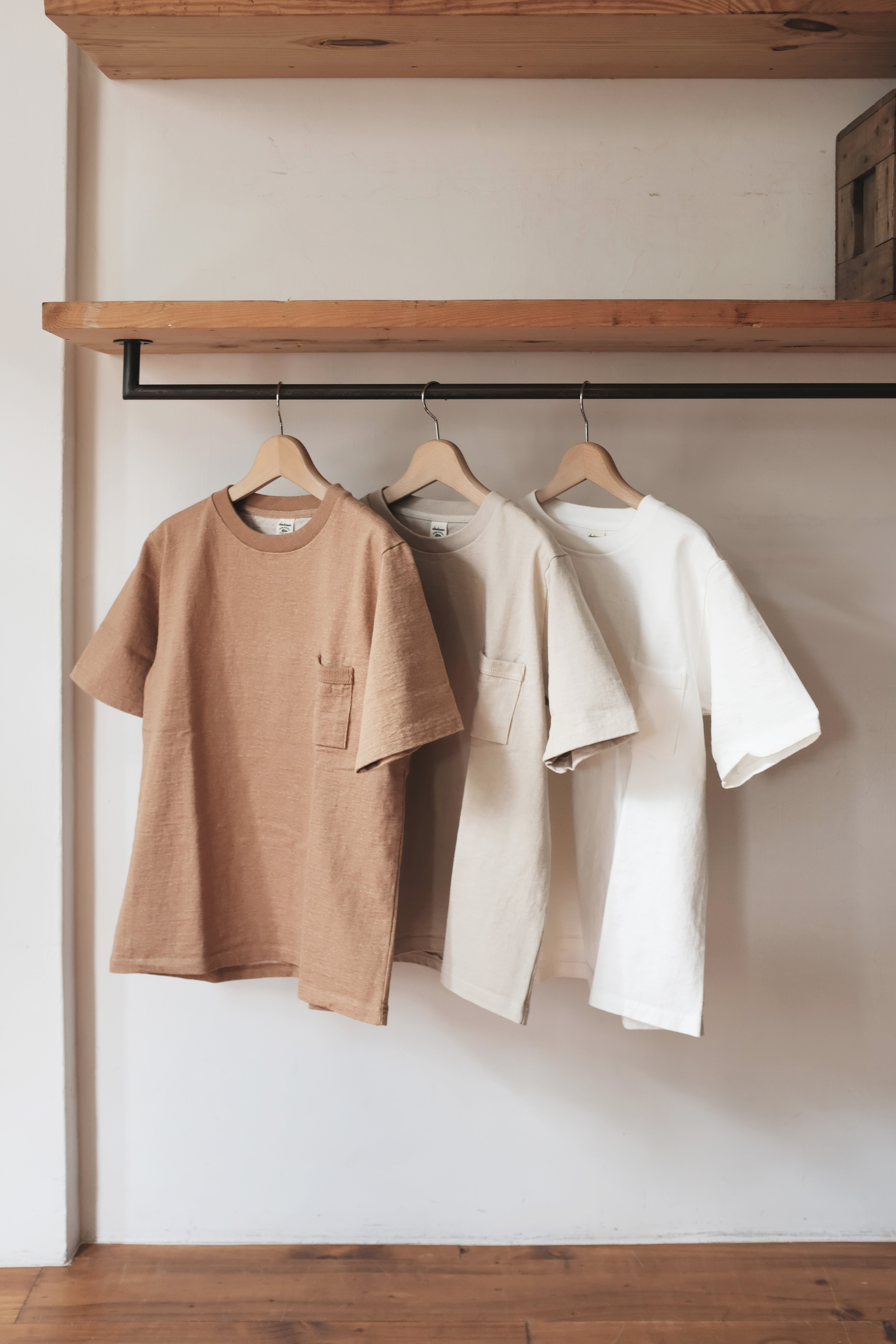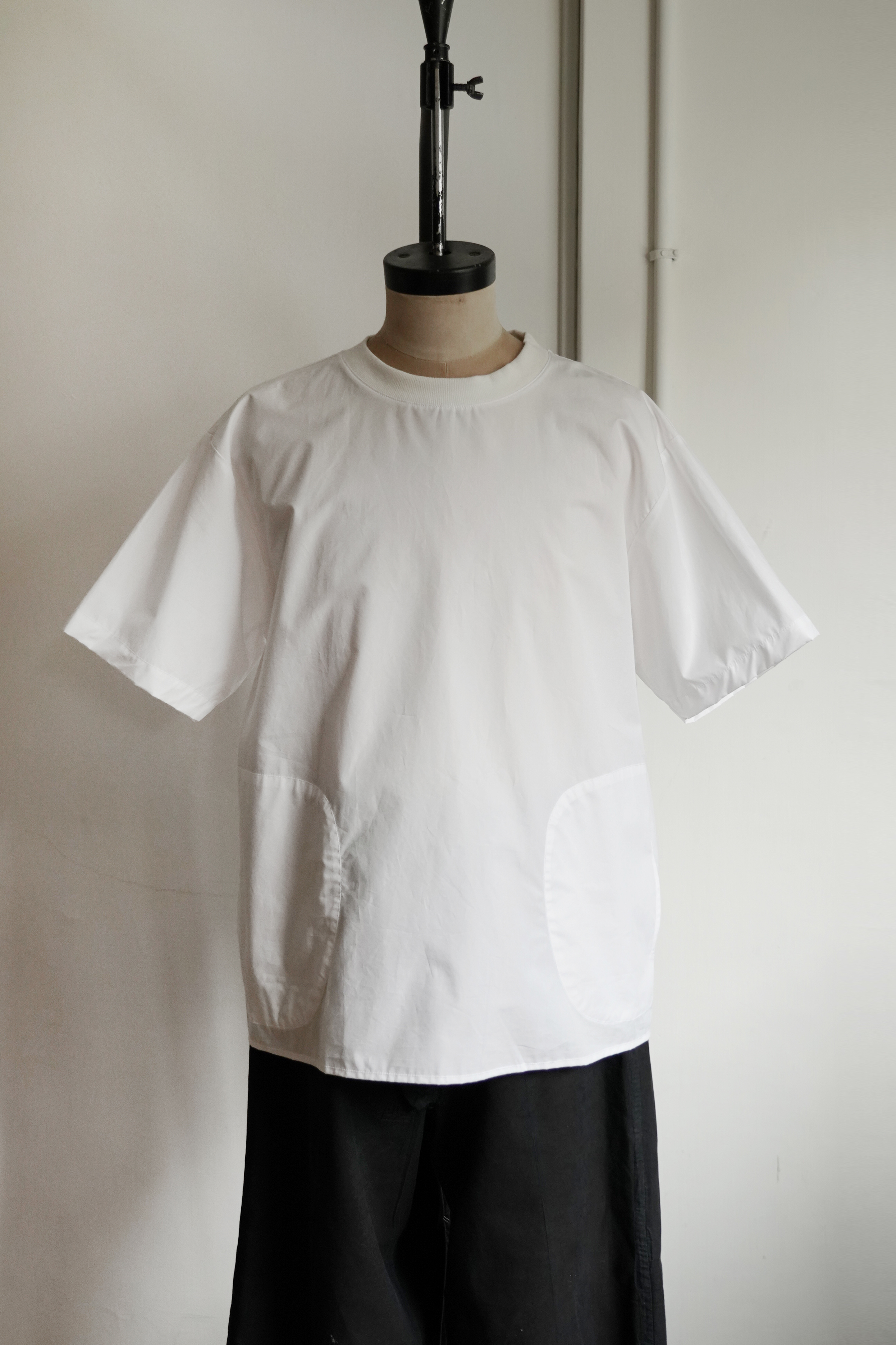 S/S SHIRTS 所使用的布料是輕薄且絲滑的布料,特點類似和紙的質感、膨潤感和皺摺感經過洗滌處理後呈現柔軟的觸感。