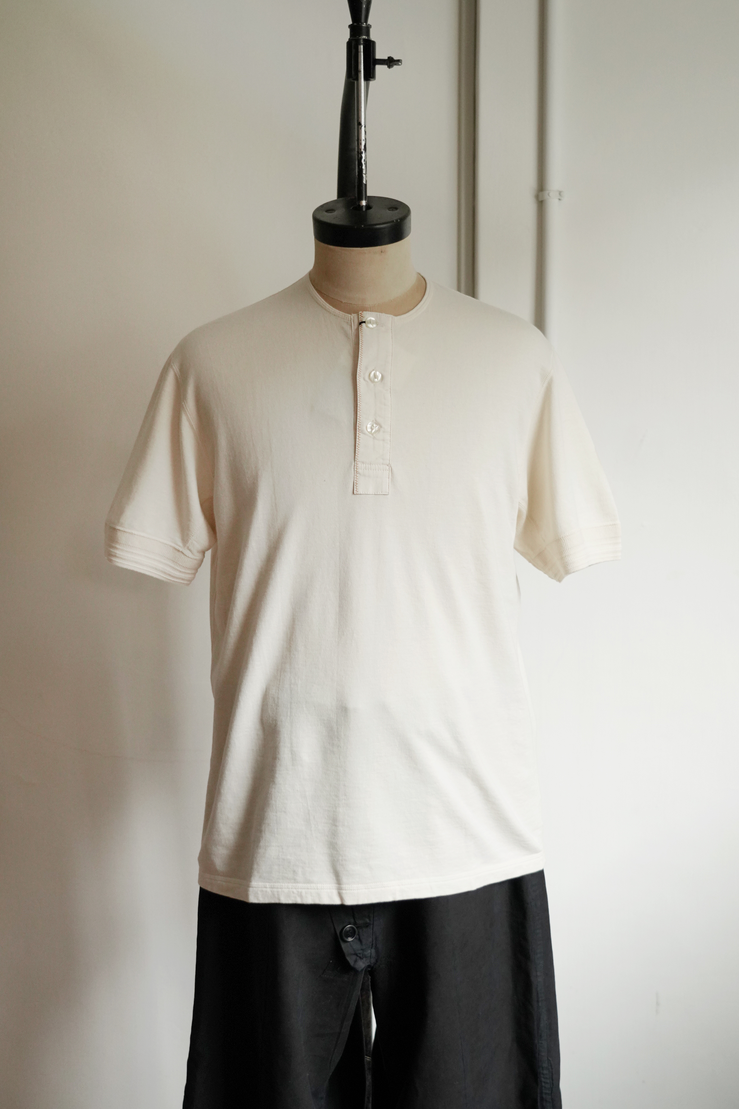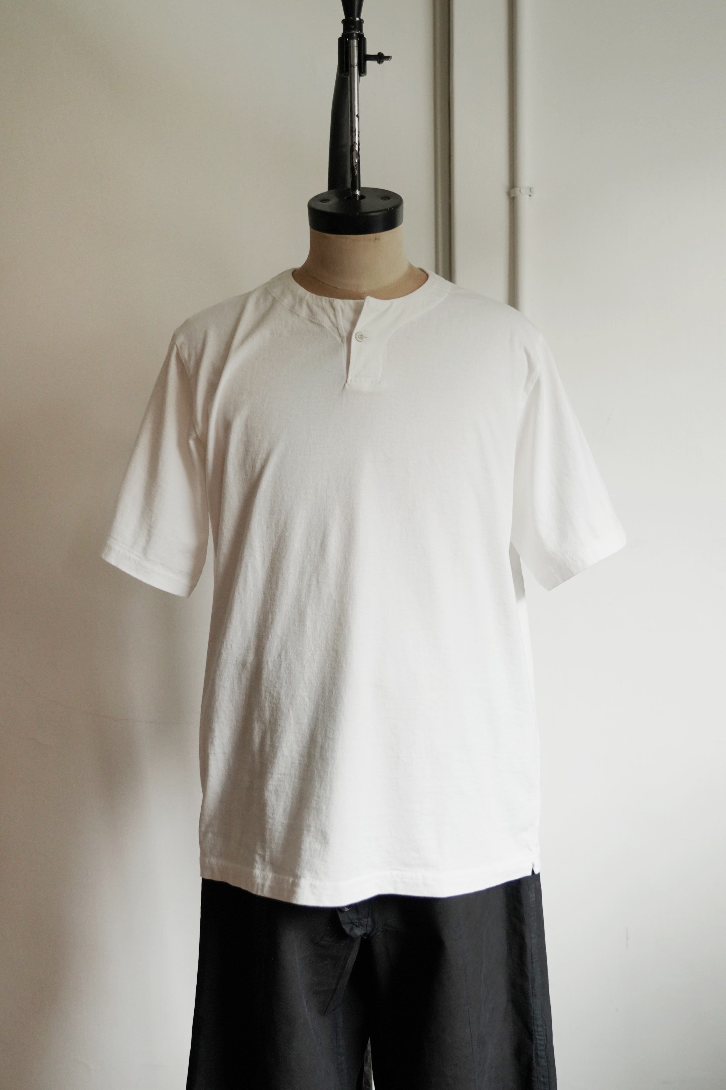 此款亨利Tee採用長度約為13-33毫米的氣流紡棉,主要產於美國密西西比河流域的棉花種植區,經典的單扣式亨利領,衣櫃裡永遠不嫌多。
