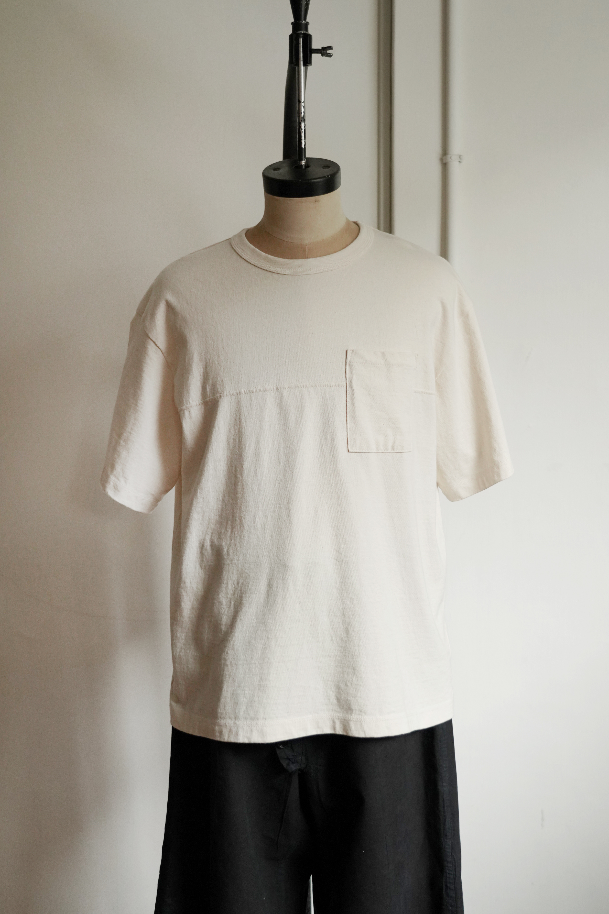 此款口袋Tee採用長度約為13-33毫米的氣流紡棉,主要產於美國密西西比河流域的棉花種植區,寬大口袋、形狀和W縫線是1890年代美國棒球服的代表性細節,這邊值得稱讚的是!口袋是微立體的剪裁,放置東西時不會因為流汗,口袋緊貼著身體