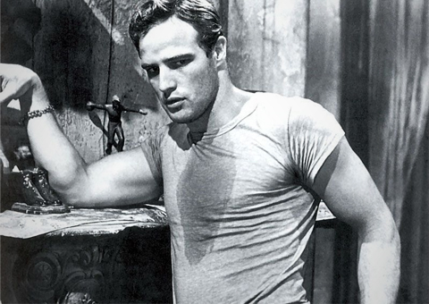 到了1950年代,馬龍白蘭度在《慾望街車》這部電影穿著合身的白T-shirt,展現他完美的二頭肌,風靡萬千少男效仿,讓內衣獨立成外衣,正式成為一種時髦單品。