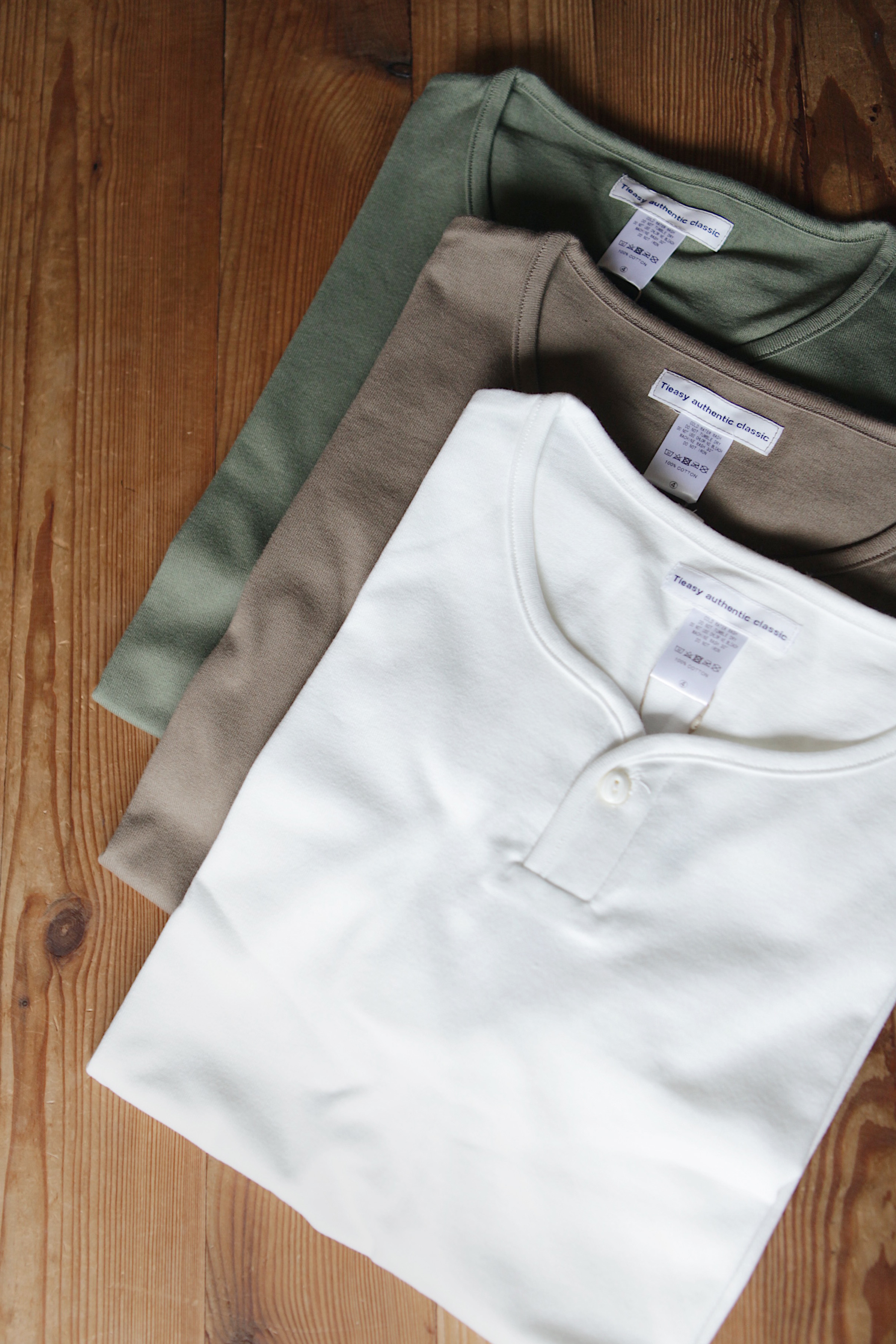 除了傳統亨利領,Tieasy單顆釦看起來格外別緻,有著寬鬆領口及版型所襯托出的休閒感,布料舒適度更是無可挑惕,由老式織布機費時費工所精細織出布料扎實卻十分富有彈性且柔軟。
