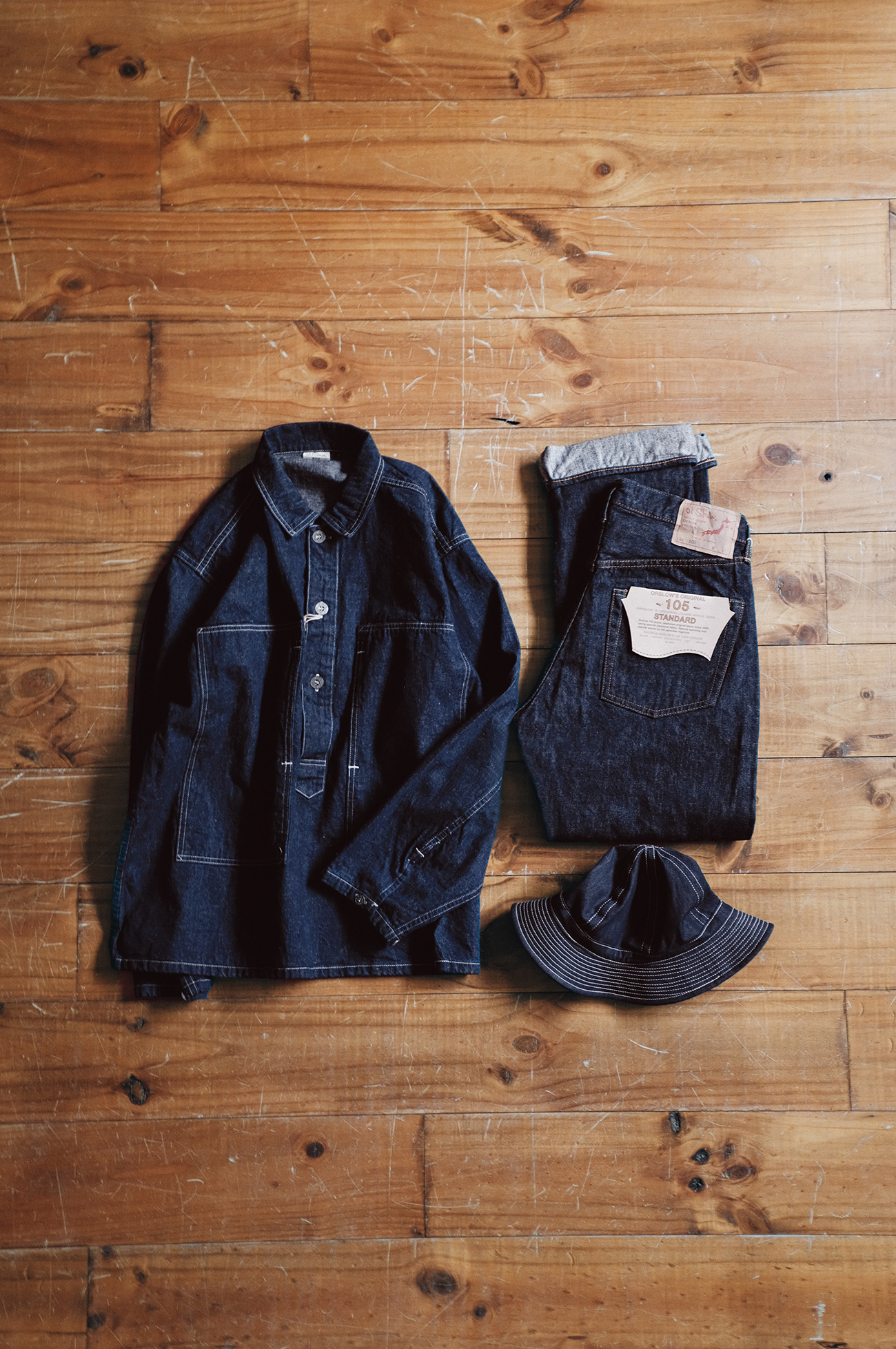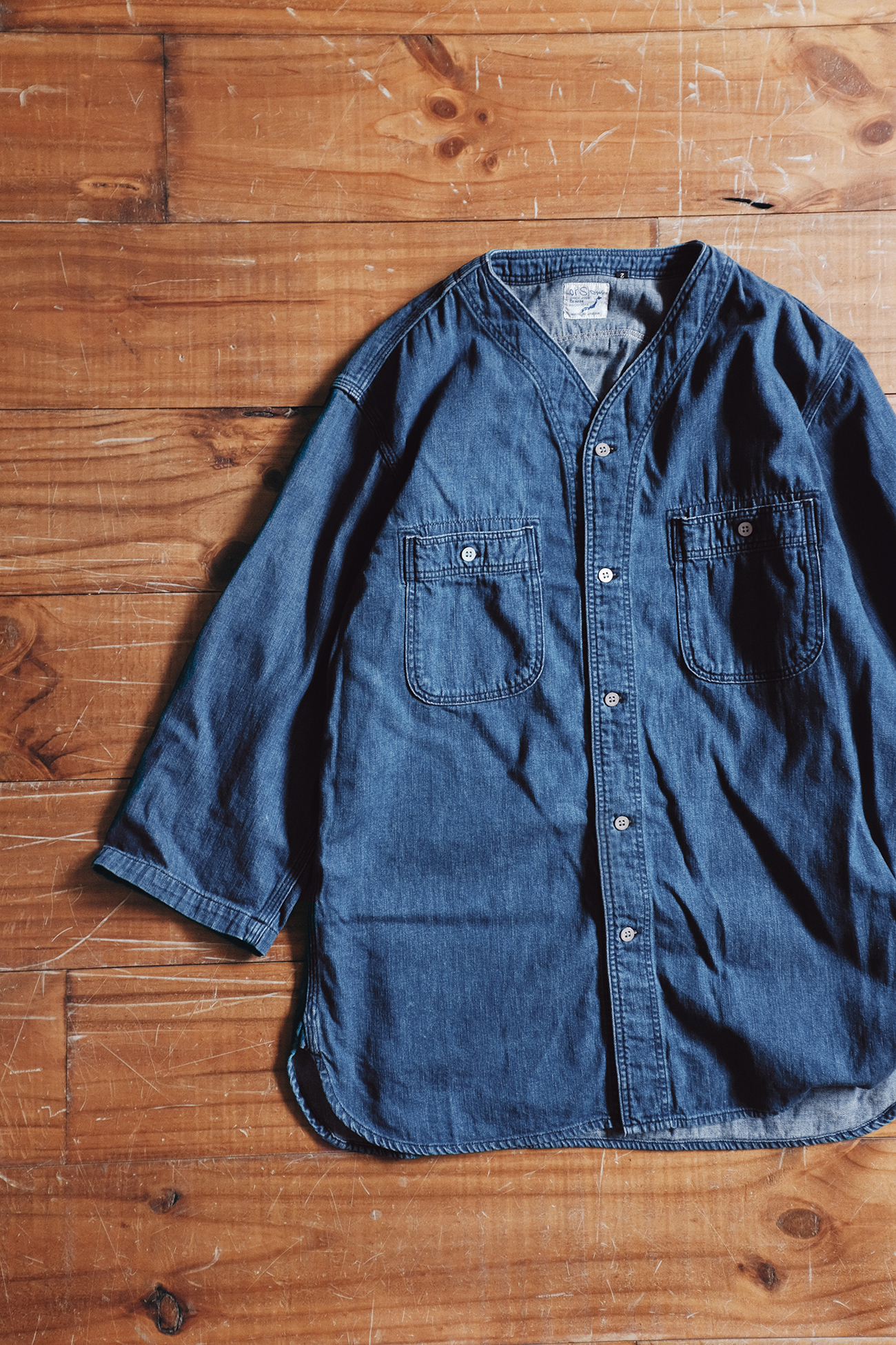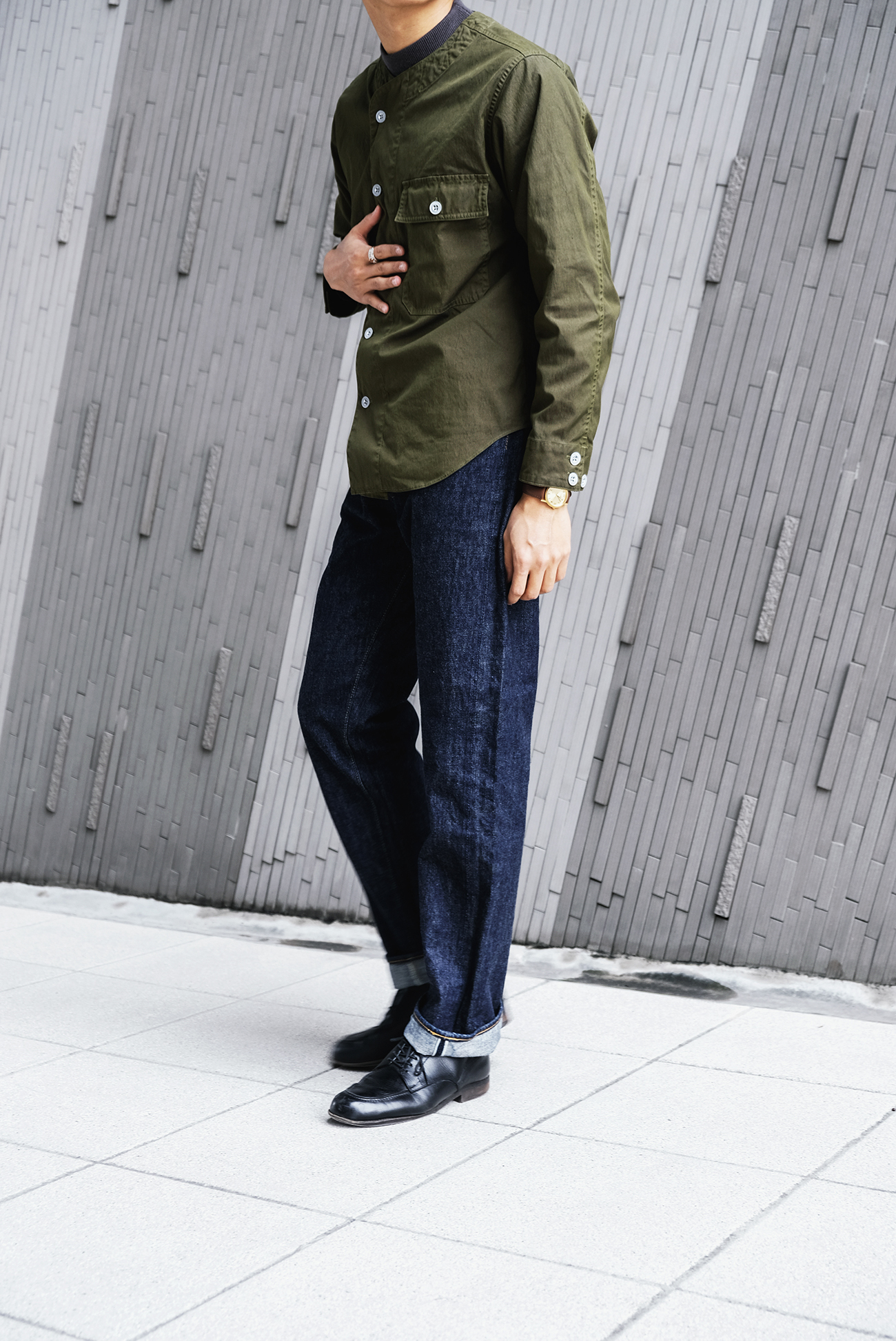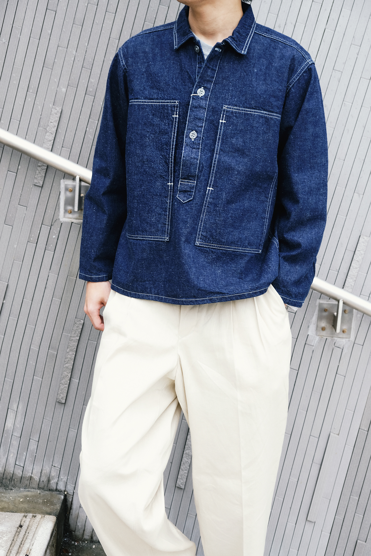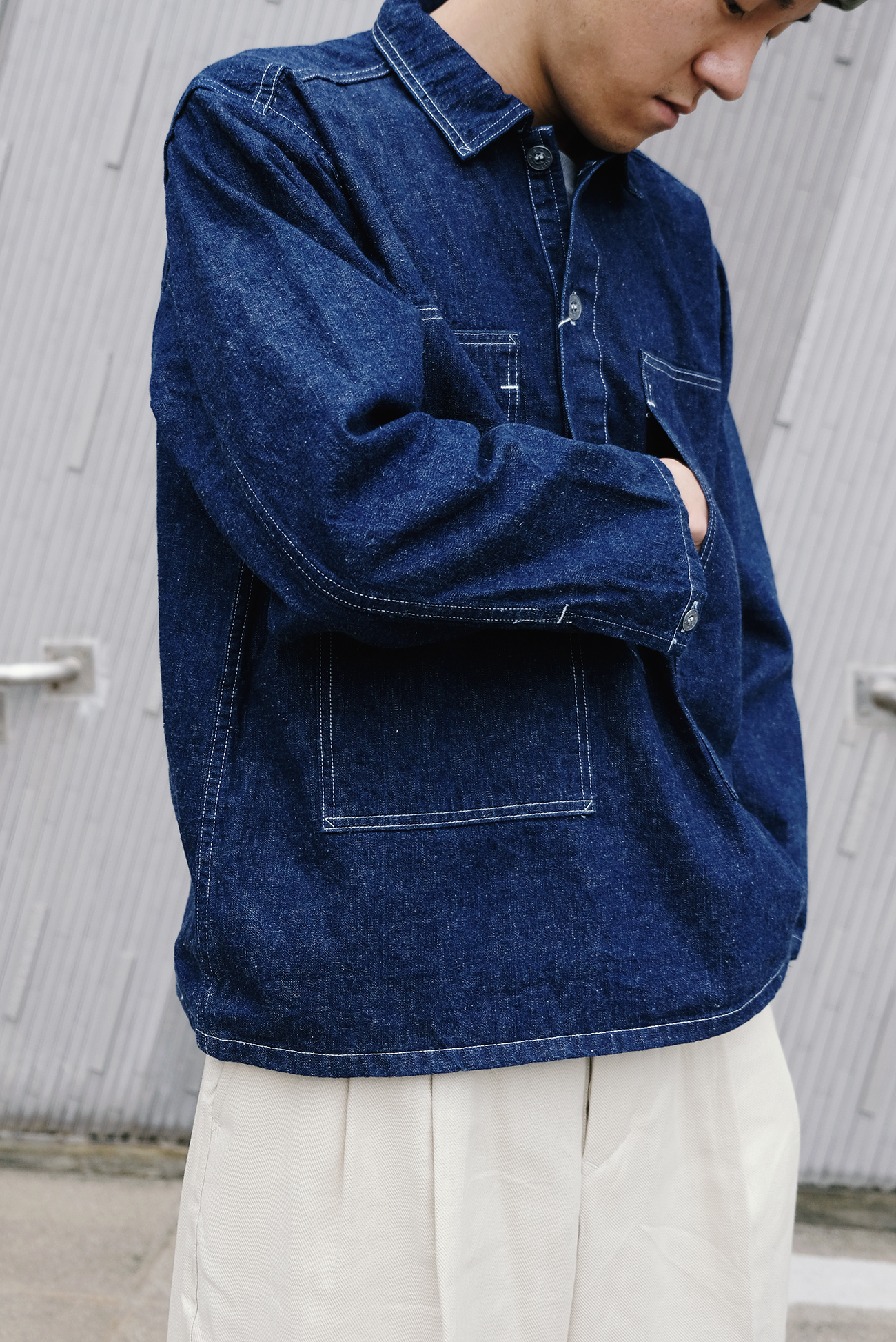 01. PW Pullover Shirt Jackt:此款設計發想於美國軍隊的套頭式牛仔夾克,到了 1910~1940 年代,演變為美軍讓戰俘所穿的服裝。經過 OrSlow 的復古加工後, 展現許多縫紉細節,是一件相當有吸引力的襯衫。