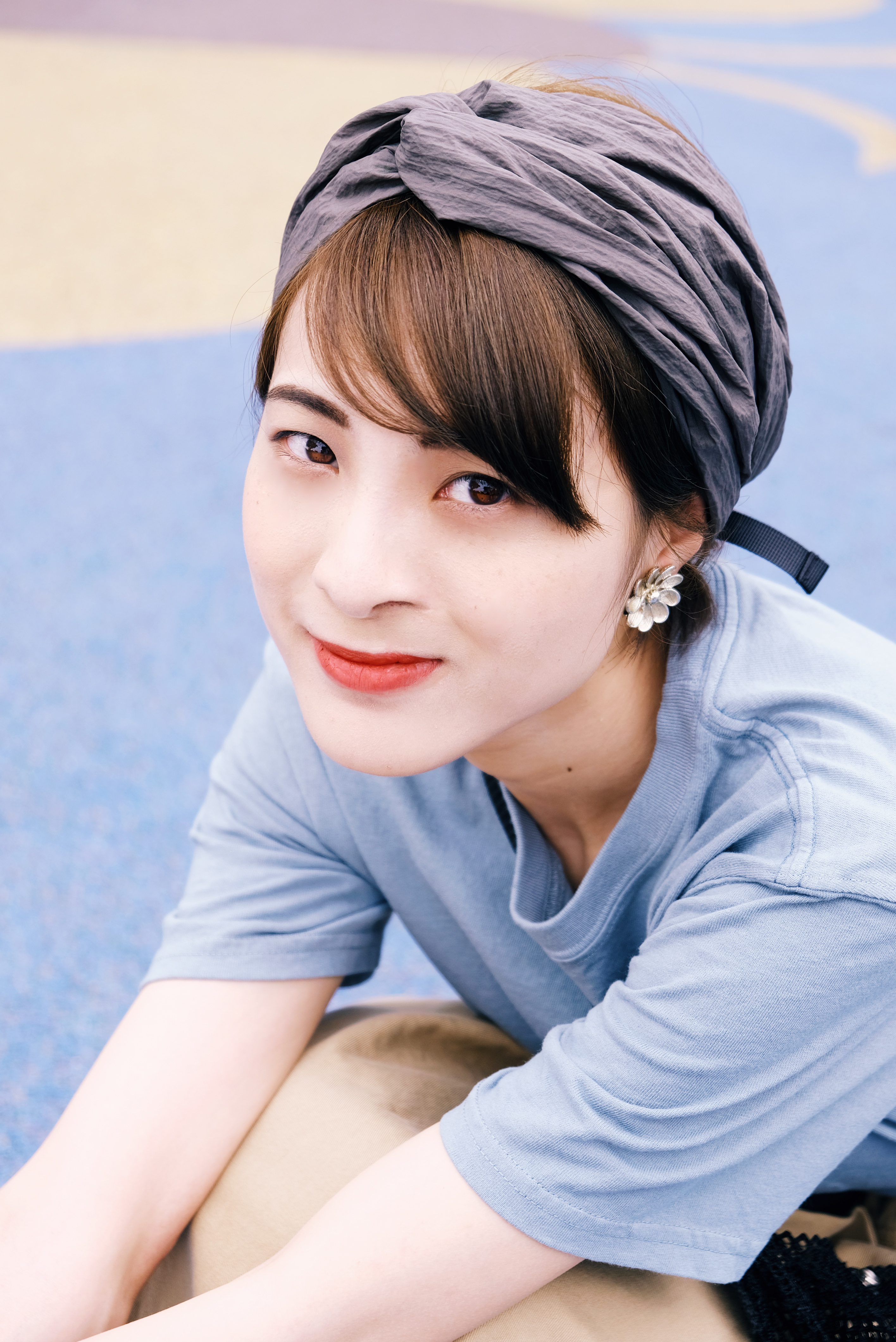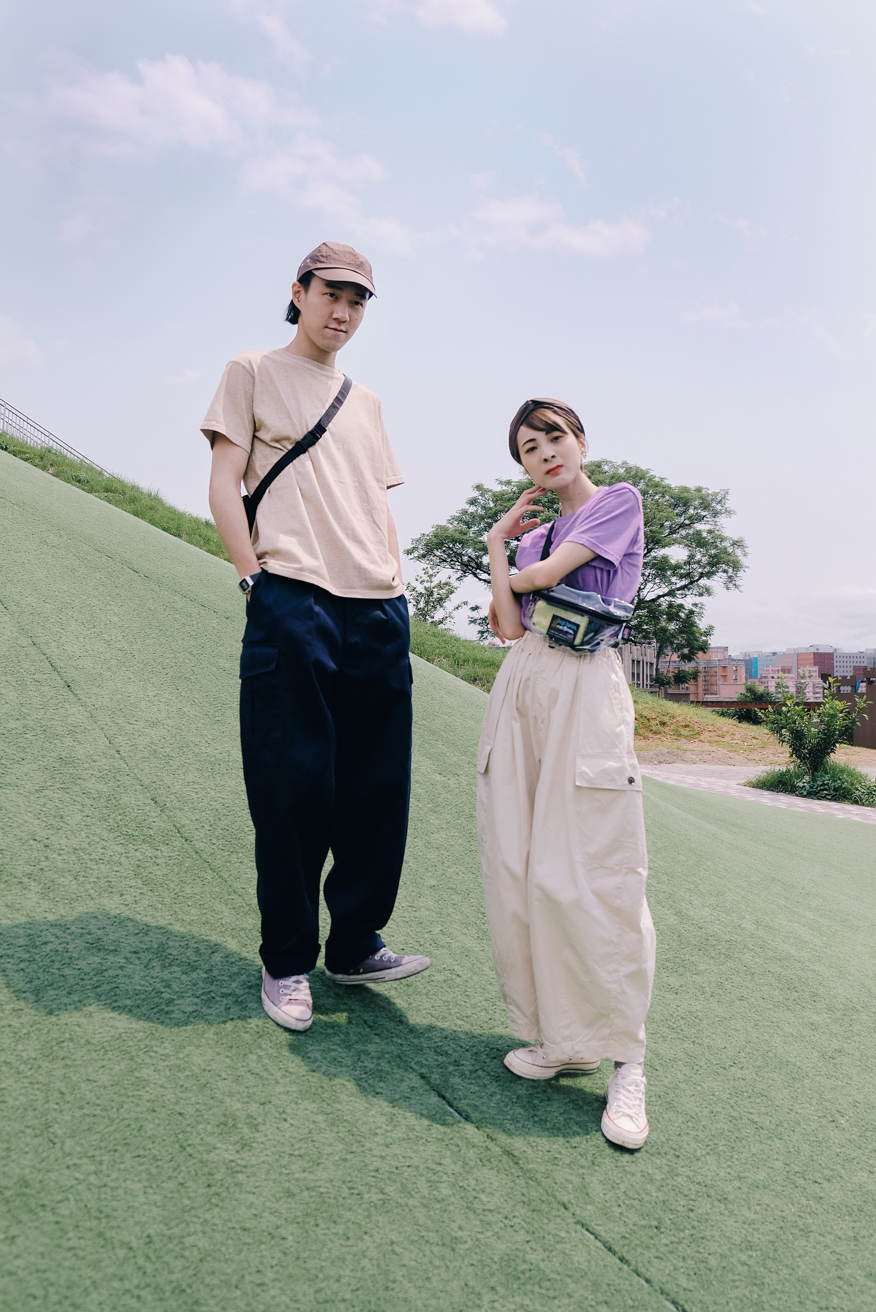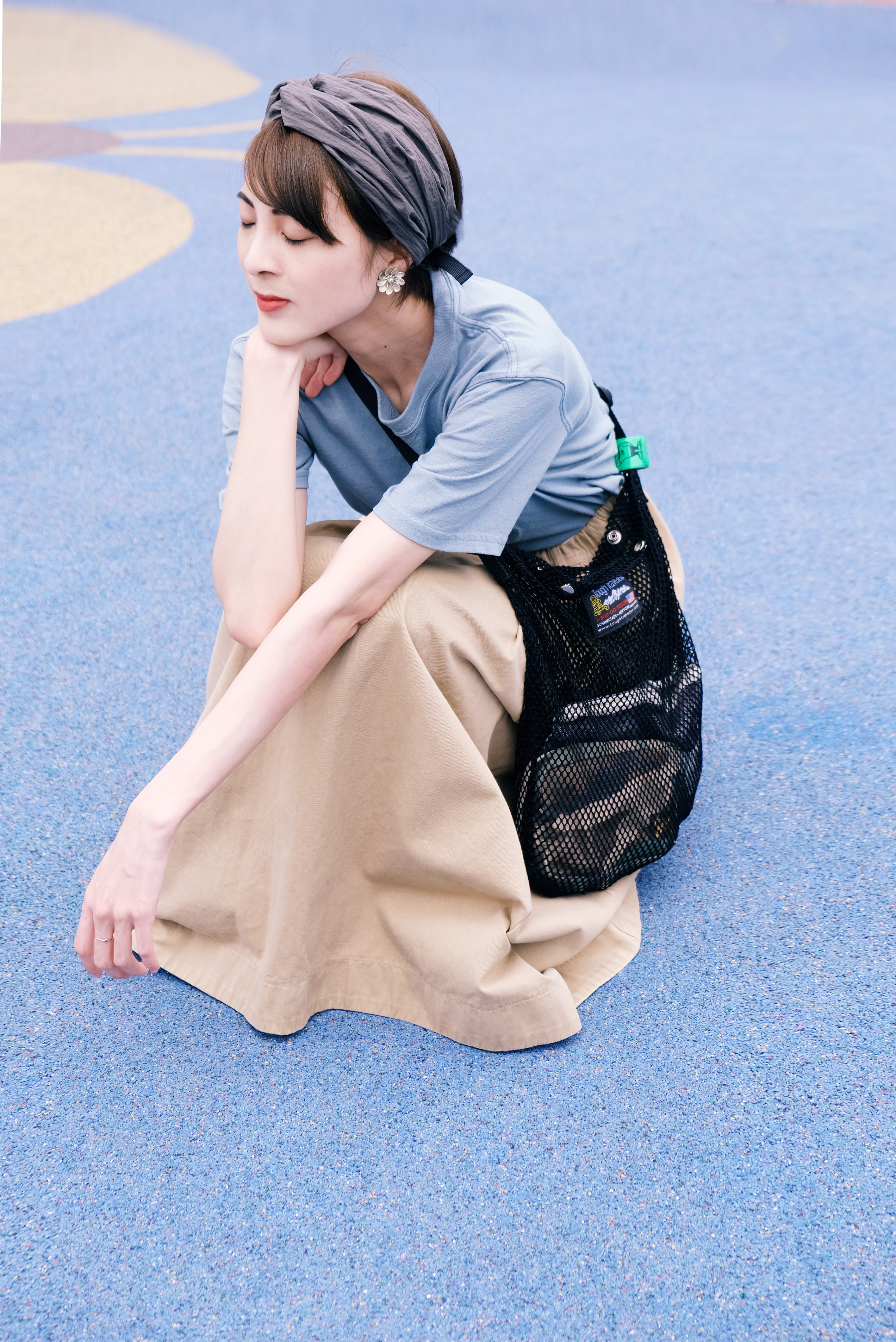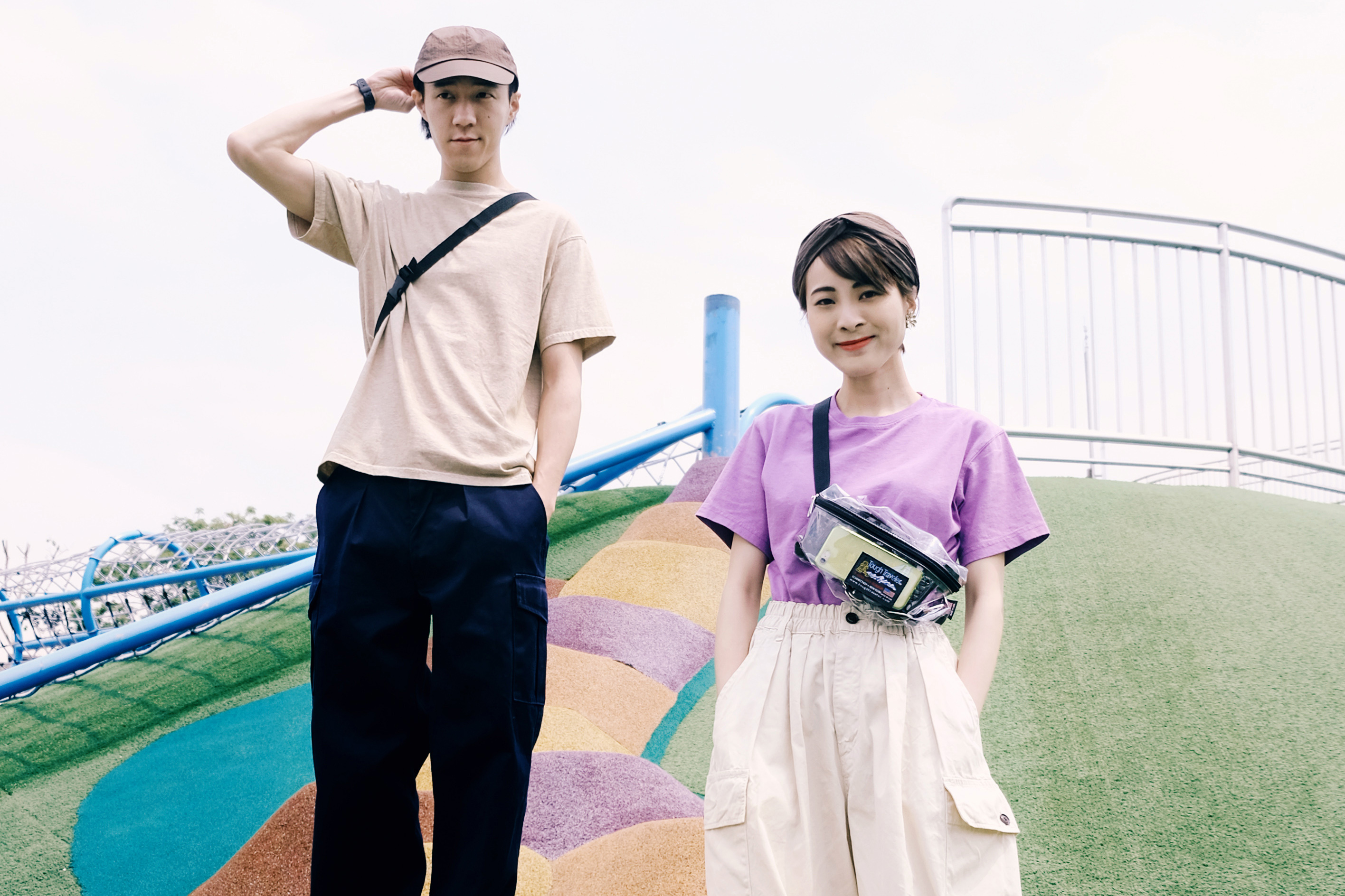 在前往超長的滑梯前,必須要爬上這段綿長的樓梯。爬得時候一邊想著還要多久呢,一邊感受離天空越來越近的興奮感,;在此同時更深深了解──穿搭除了好看,材質果然很重要!