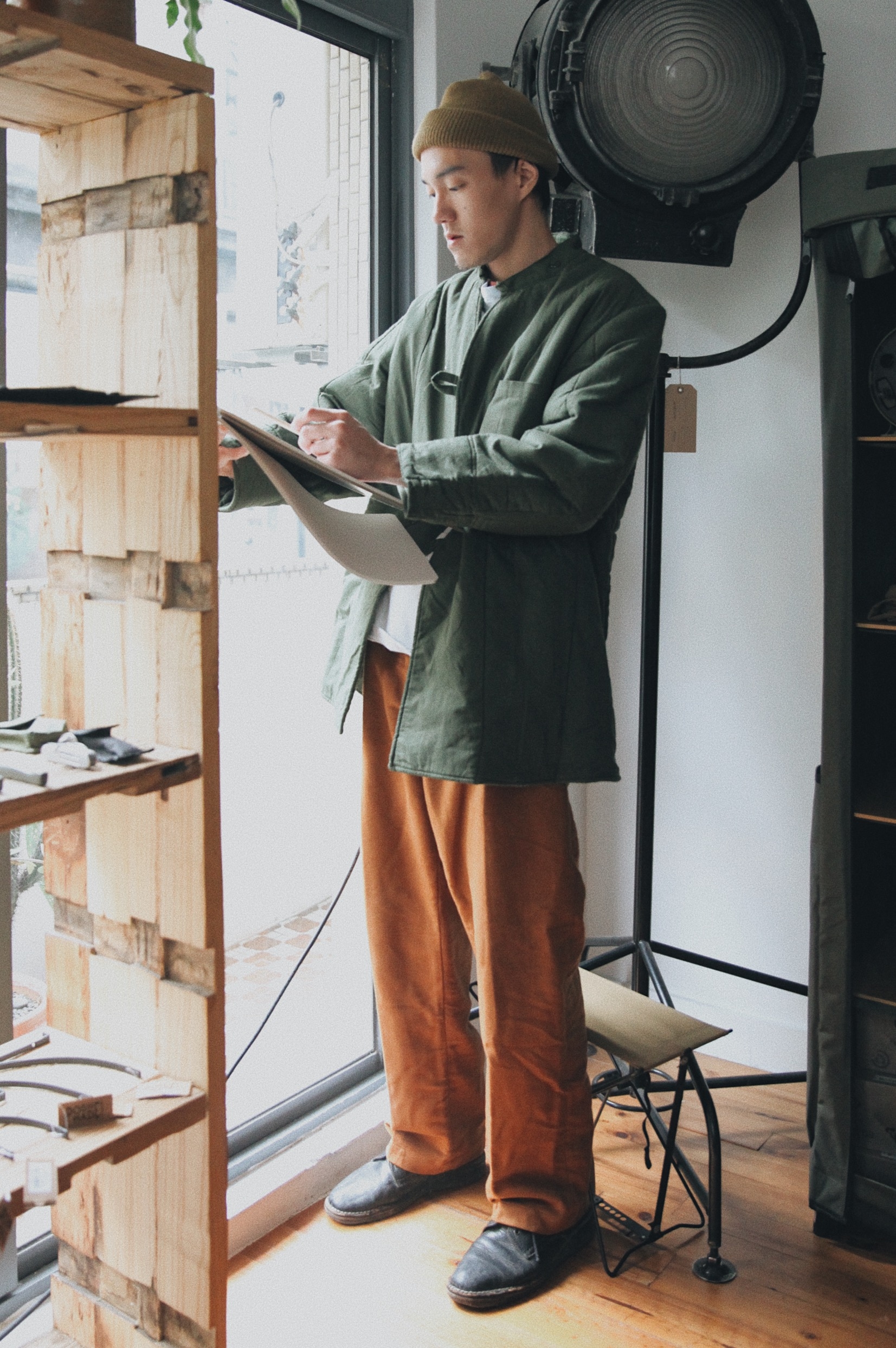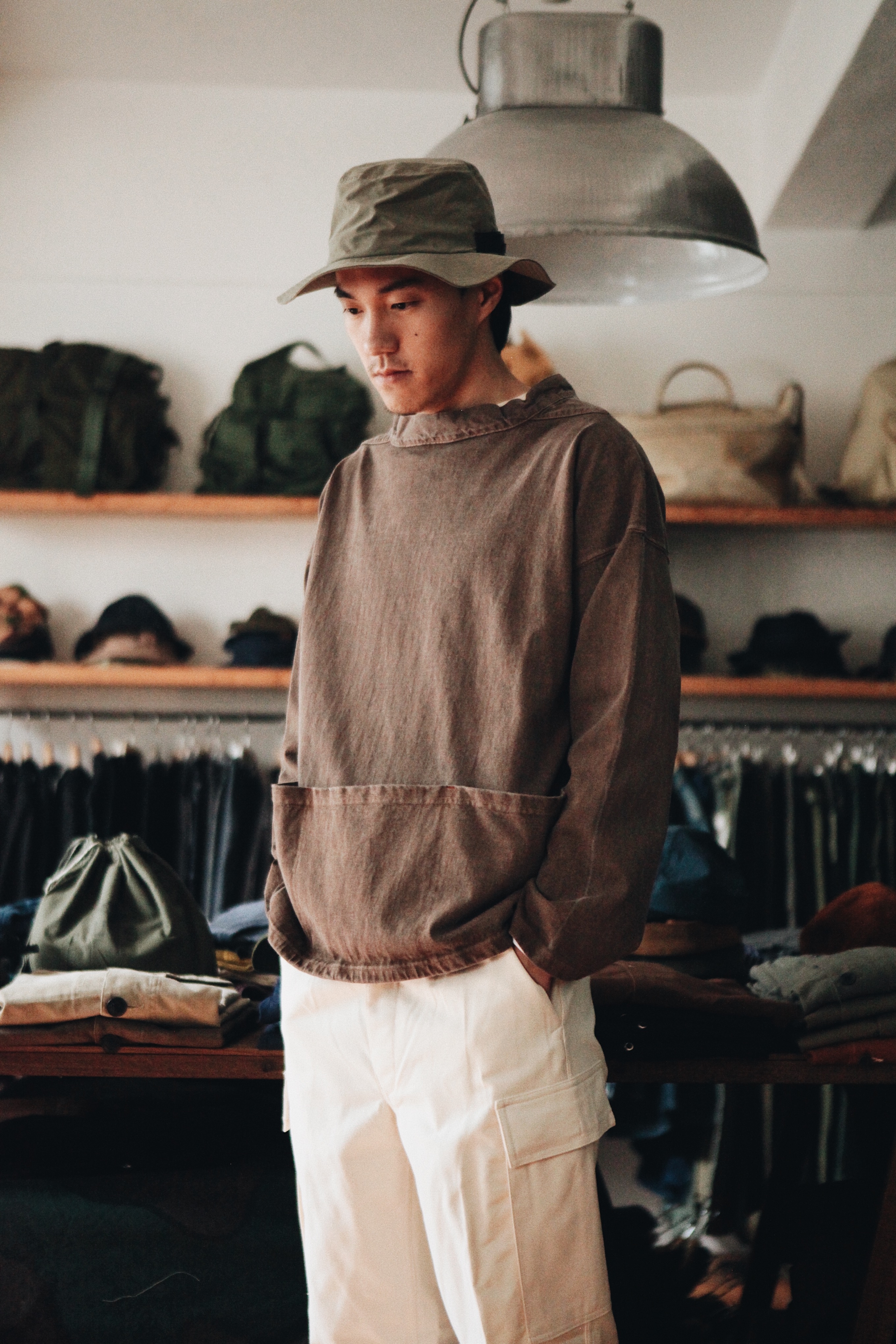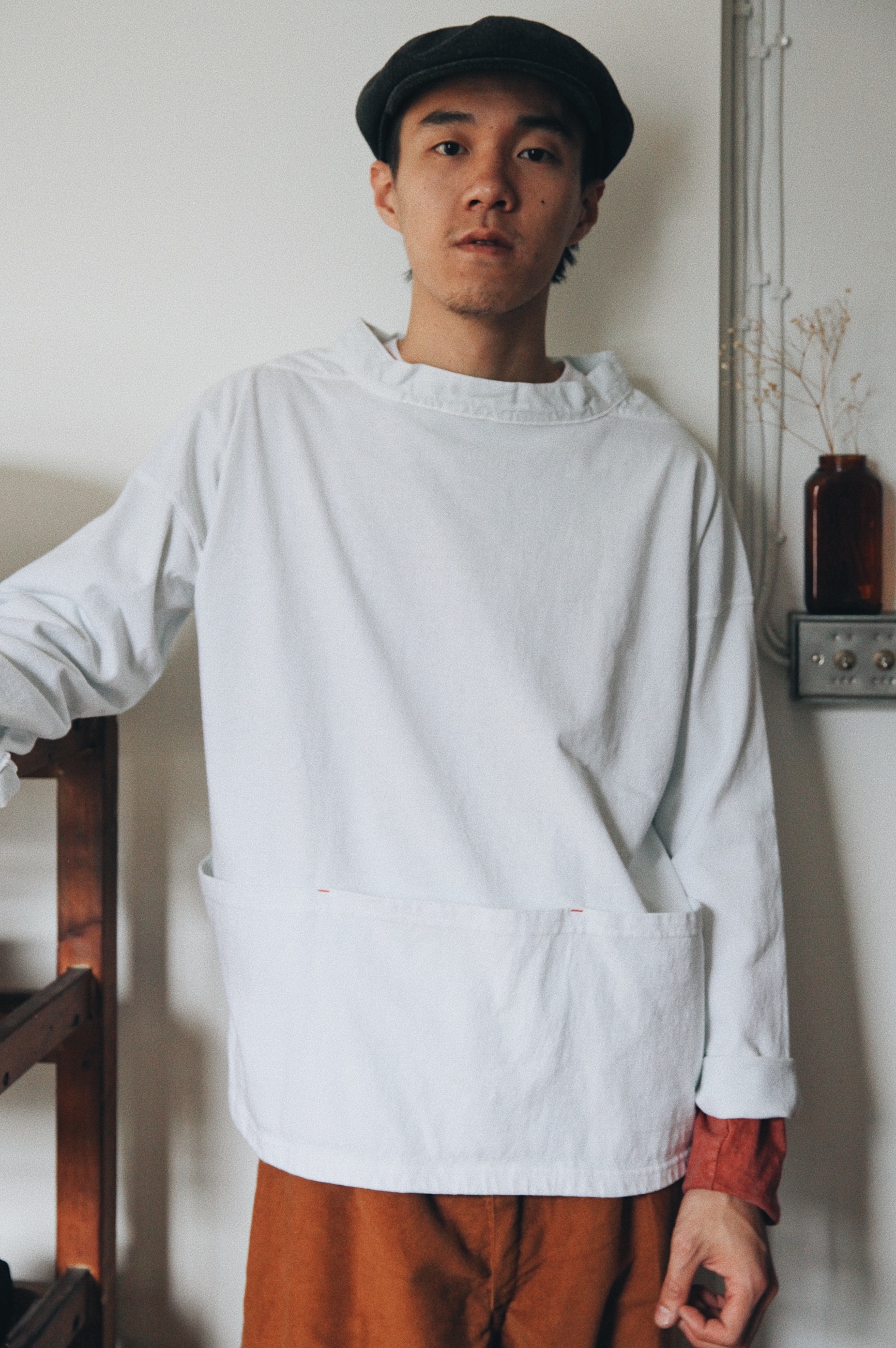 提到上衣前方的口袋,也一定要推薦GOOD ON台灣限定款的漁夫領工作服──採用美國的有機棉花製成高磅數的布料,寬鬆的剪裁和平口、帶點皺褶的寬領,以及前方的三個大口袋體現了早期英國漁民大方的性格,也襯托出冬天那樣漫不經意的恍惚。