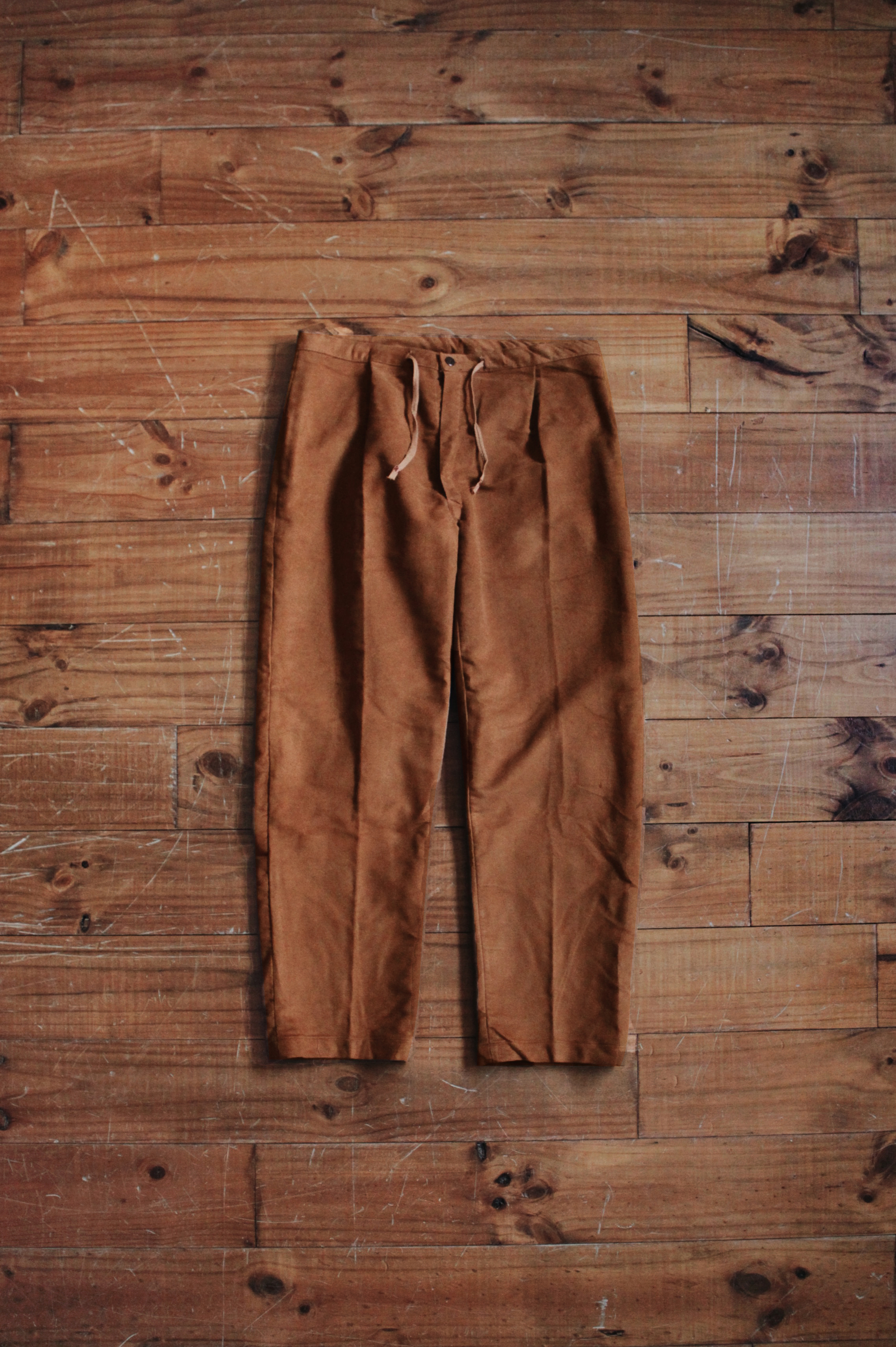 像是這件義大利的軍用睡袍長褲是我們非常得意的庫存新品。因軍旅生活可能會遇上夜裡的低溫,這款睡袍採用高品質的moleskin,內裡舒適柔軟,但外觀卻不像一般睡袍的鬆軟,厚挺的棉料襯出了腿紮實的線條,展現直爽的風格。