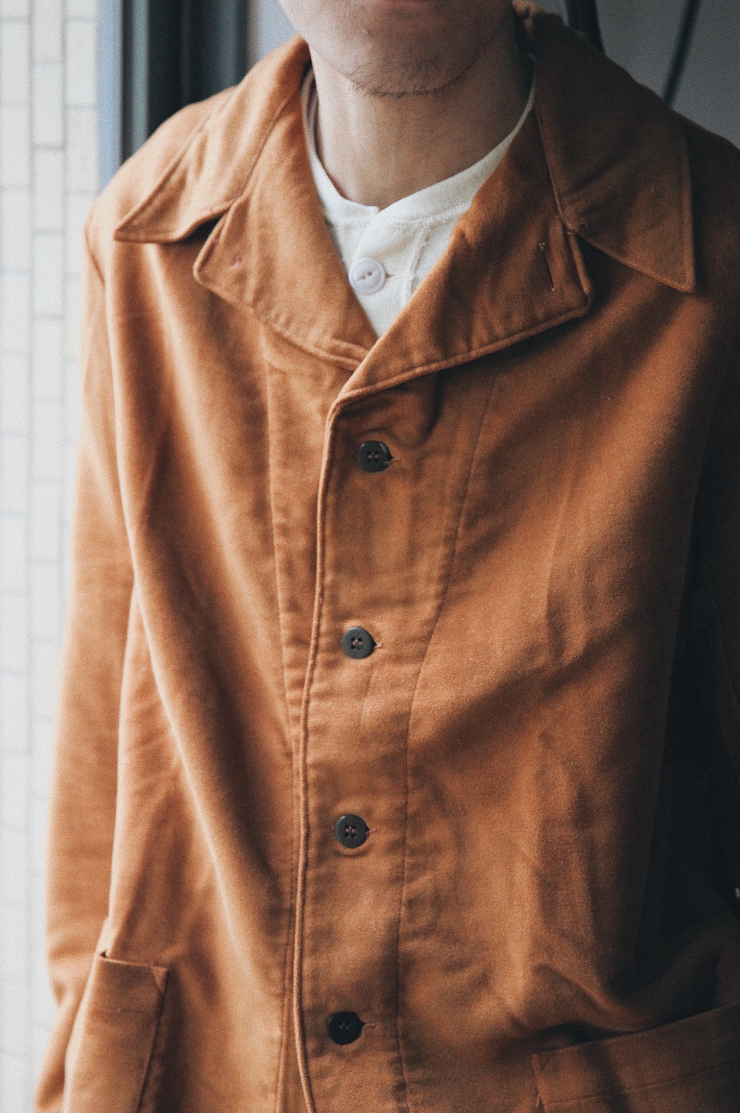 這件義大利的軍用睡袍夾克和推薦的褲款一樣,採用厚磅棉布moleskin,外觀上類似絨的觸感及光澤,密集的織法提供了防風、高度的保暖與耐磨性,絕對能陪伴各位戰勝漫長的冬日。