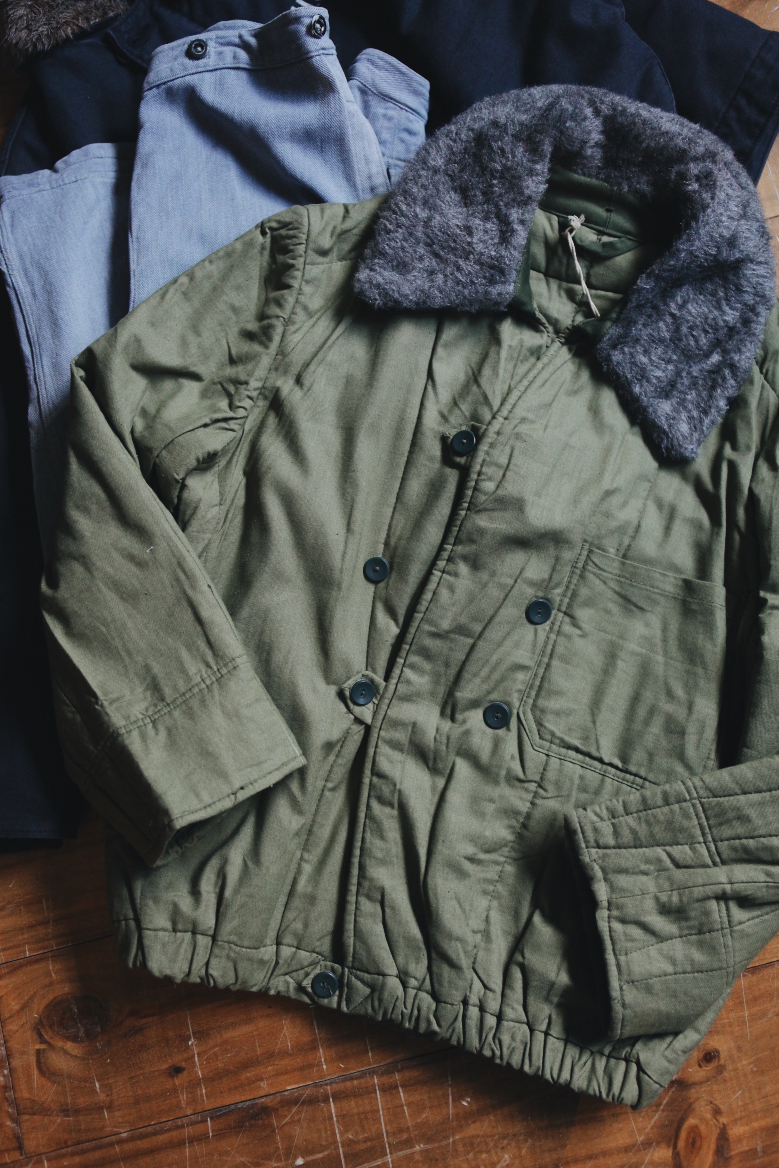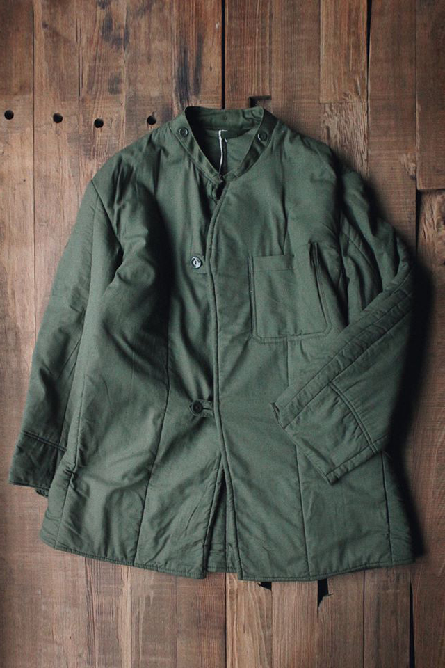 想像在歐陸的冬天穿著這件保暖內裡外套的軍人們,就忍不住覺得溫暖了起來。這款來自匈牙利的軍大衣內裡外套也是難得一見的庫存新品,採用縫製棉被時的絎縫將散落在內層的棉花固定,材質像羽絨一樣輕盈,卻有良好的保暖效果。