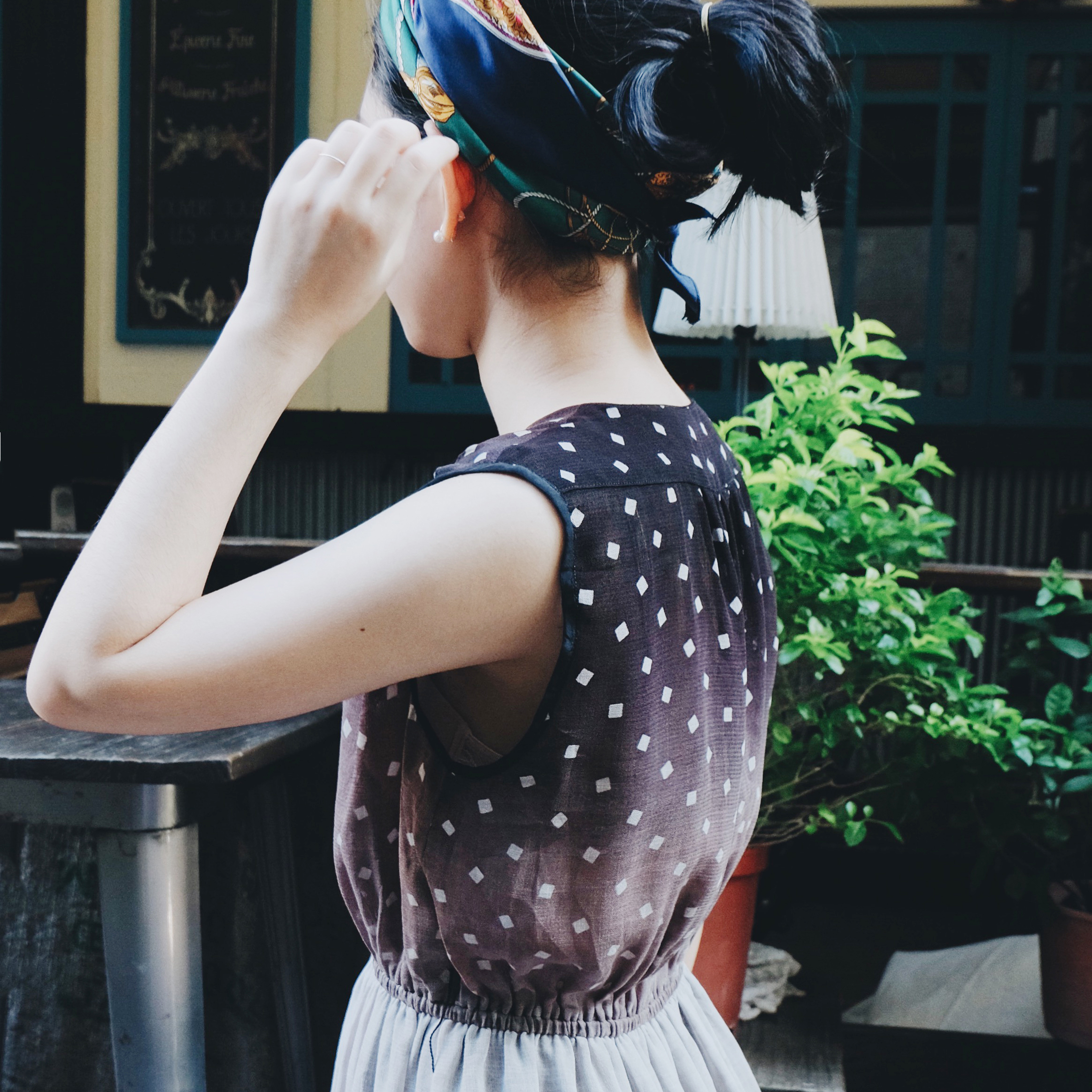 而自己開始喜歡古著的起點呢?其實是當時的對象推坑的,第一次接觸到這些跟外面店家截然不同的服裝、視覺的衝擊很大,穿在身上有點怪異、不合時宜。慢慢適應後,開始欣賞每件都令人耳目一新的獨特剪裁,尤其是古著洋裝,每件都像奇花異草,沒有一件重複的花園,穿出去走在路上覺得自己的世界從此不太一樣了。