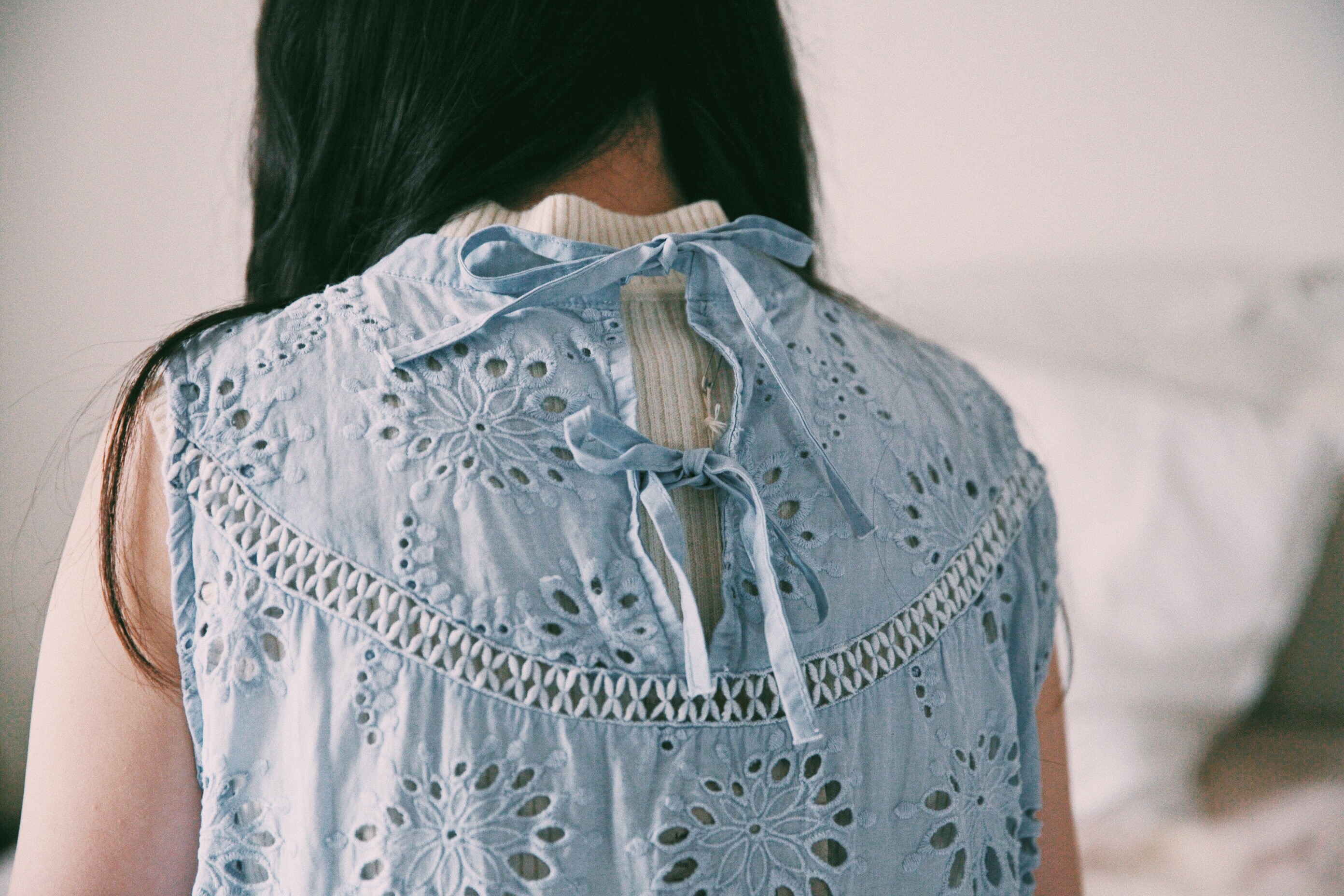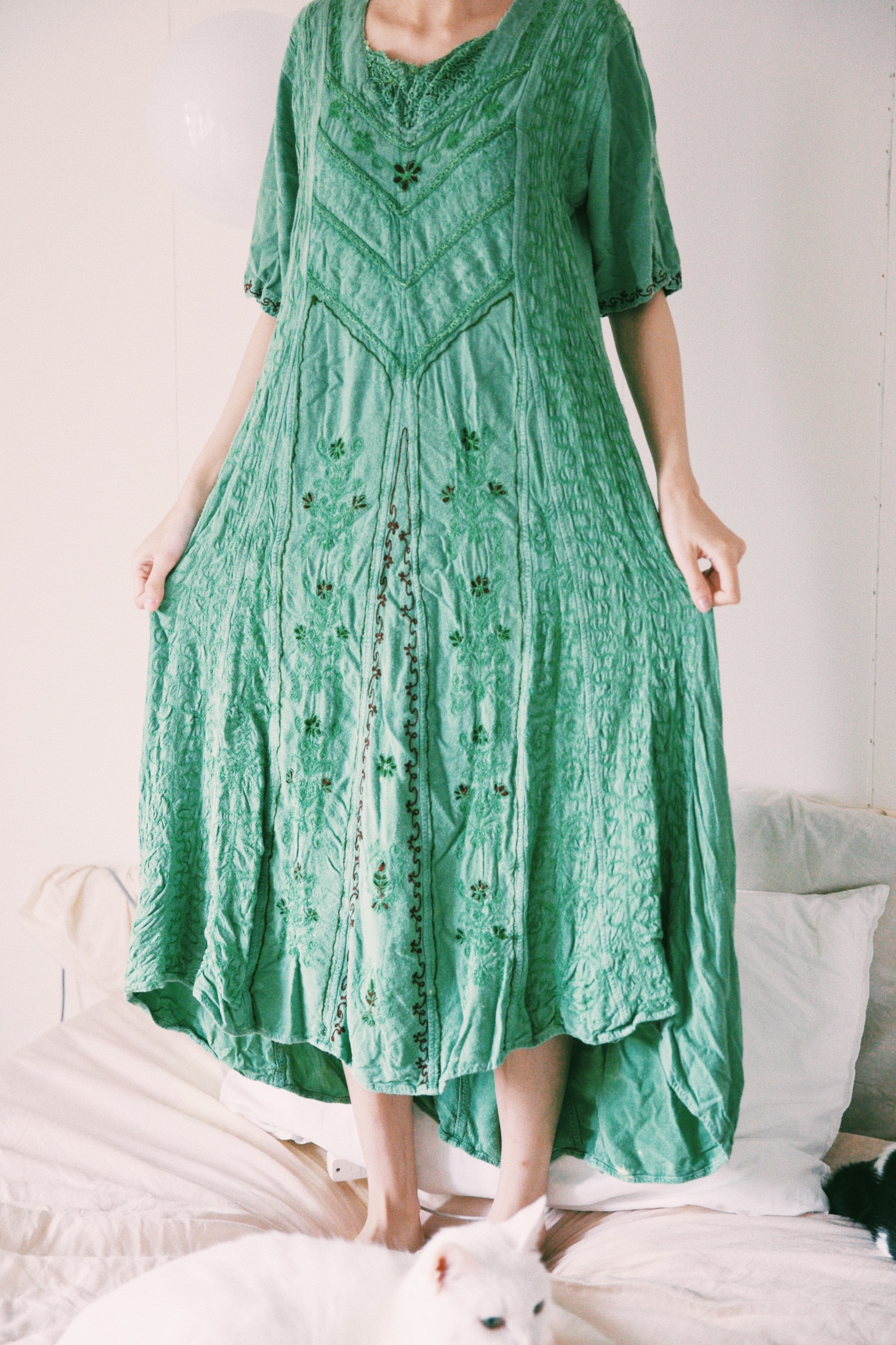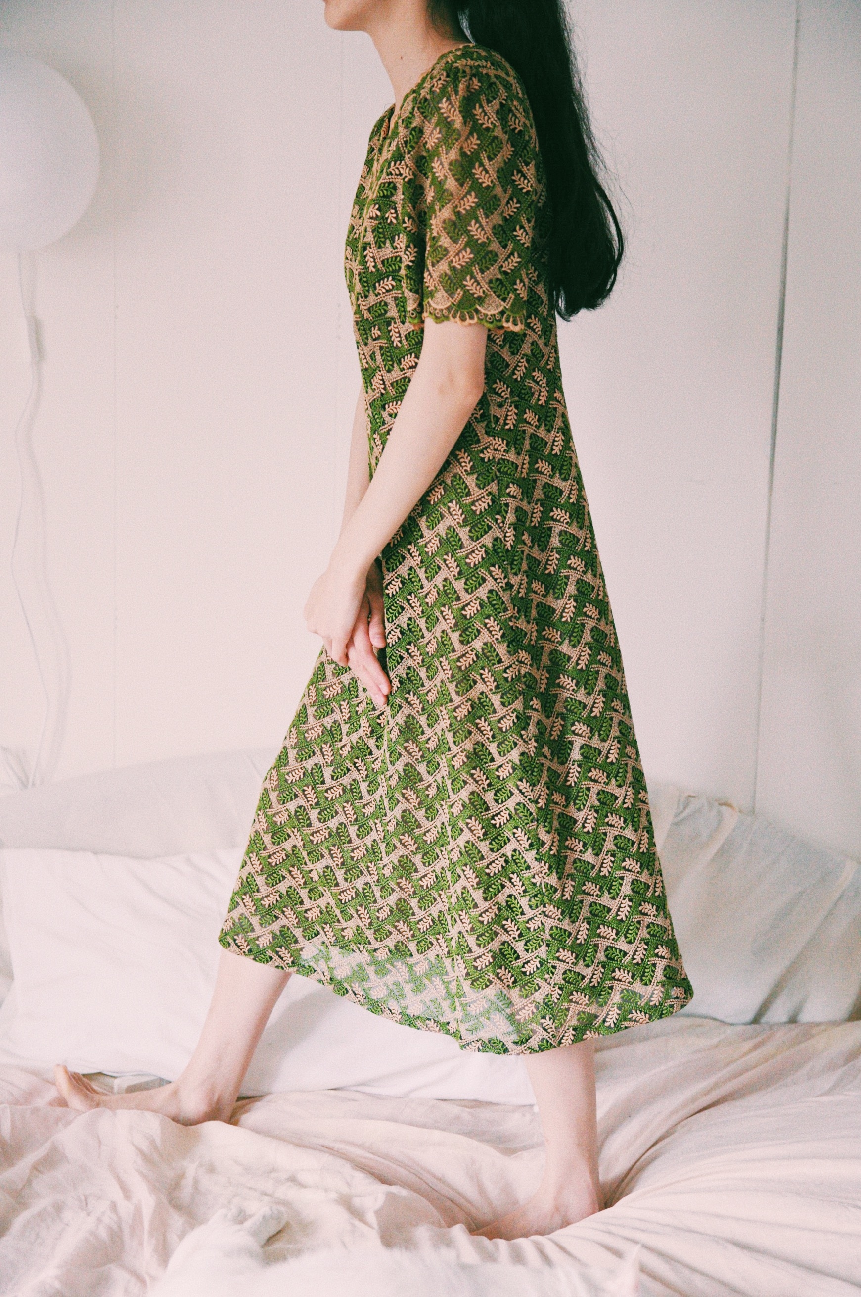 Vintage線繡洋裝,自己也難以抗拒這些宛如浪花上的泡泡般飄逸透氣的布料,雖然以素面為主,但精密的手工刺繡為布面鑲上了立體浮雕,讓洋裝更添看頭。沒有場合限制的線繡洋裝,最適合心血來潮的時候開心著用。