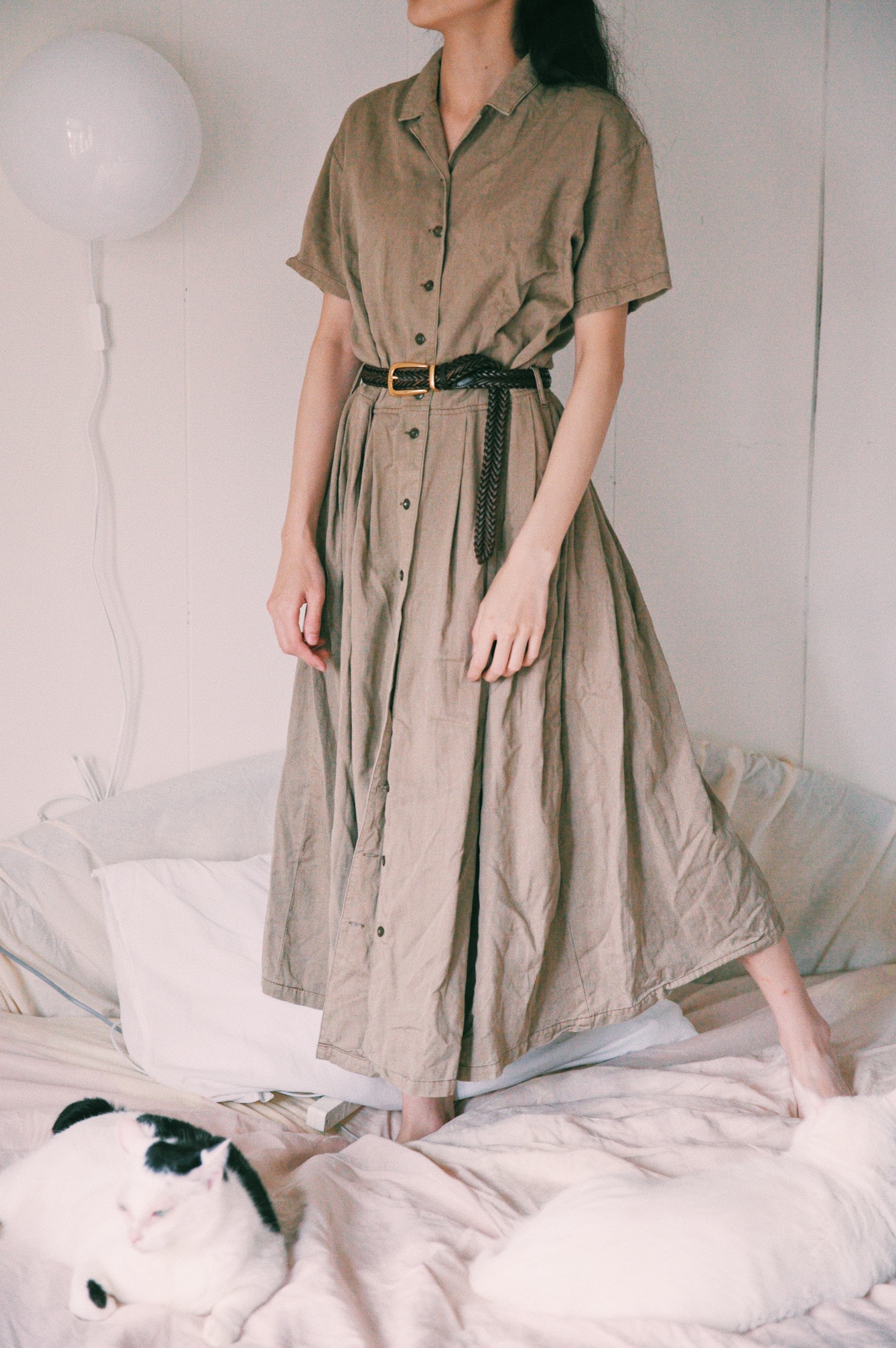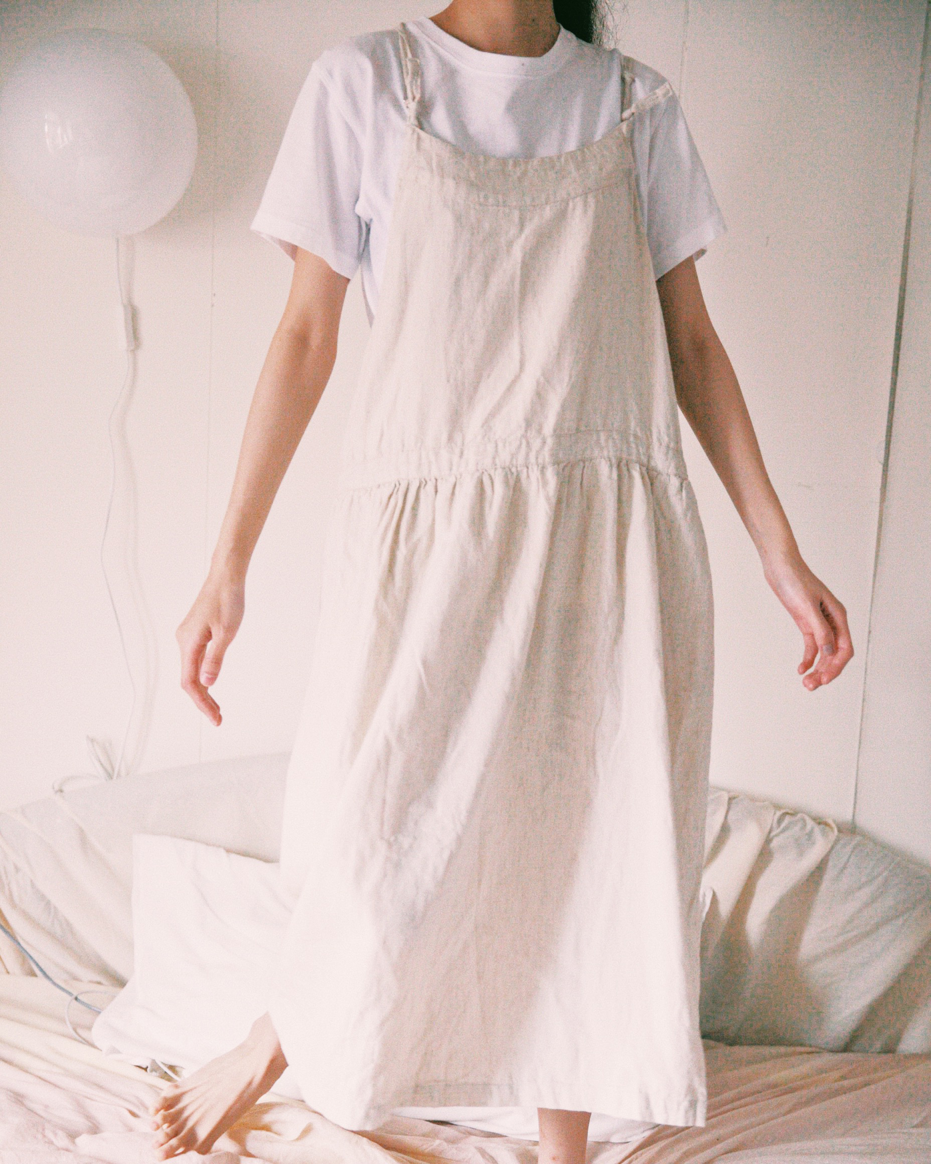 自己非常喜歡棉麻的材質,服裝、寢具、窗簾都喜歡原色的棉麻質地,只要逛到寬鬆的棉麻洋裝,朋友就會脫口而出:「這就是你的衣服呀!」穿著棉麻就像個人獨特的印記一樣被朋友記下來了。店內Vintage棉麻洋裝近年來比重慢慢增加,質地通透,順暢地垂墜感不緊貼肌膚,讓喜歡無雜質風格的女子自在著用。