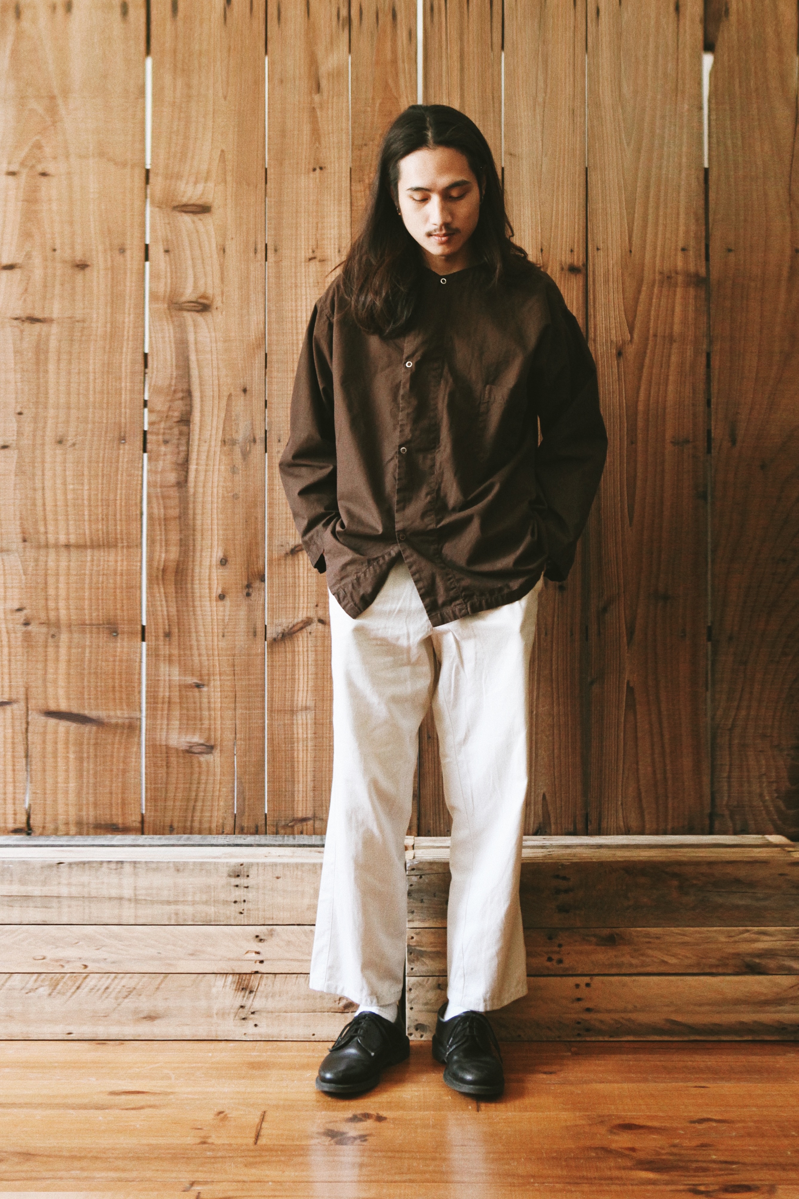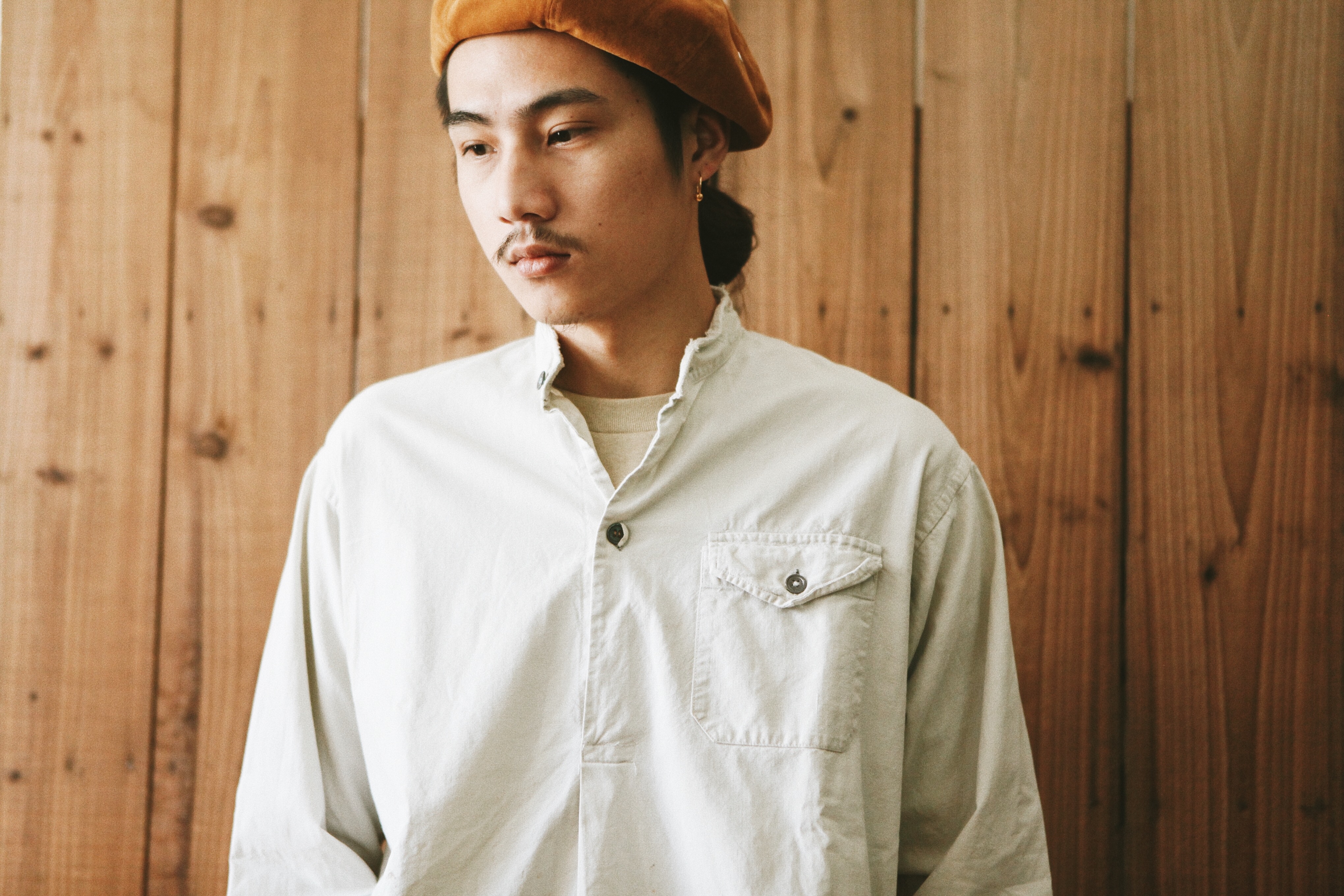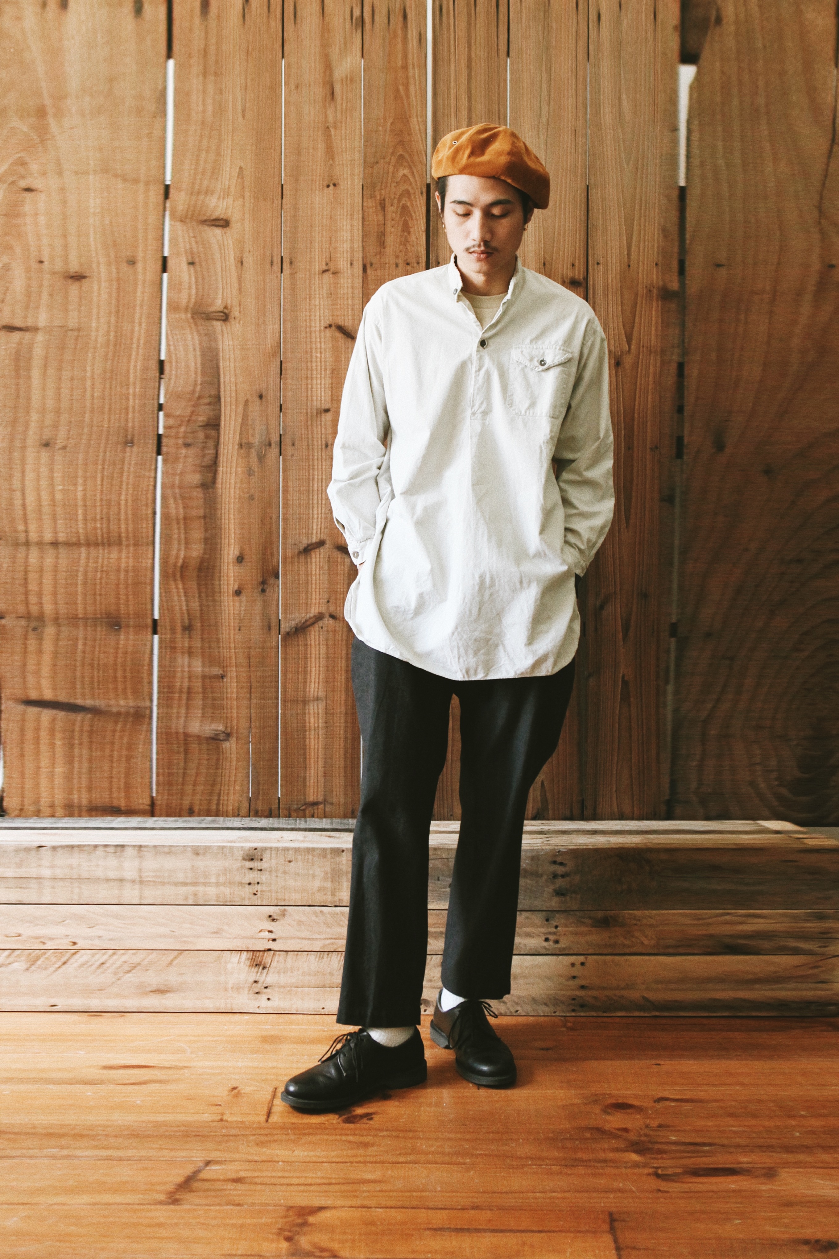 這款無領襯衫為美軍二戰穿著的睡衣,戰後則配給予醫療兵所使用,辦公室冷氣開太強、微涼的春秋季節,輕薄布料正適合帥氣的披上禦寒,冬季則內搭在大衣中呈現層次,氣質設計在粗獷的美軍軍品中相對特別,經染製成深藍色、棕色後,更必須將它納入衣櫃。
