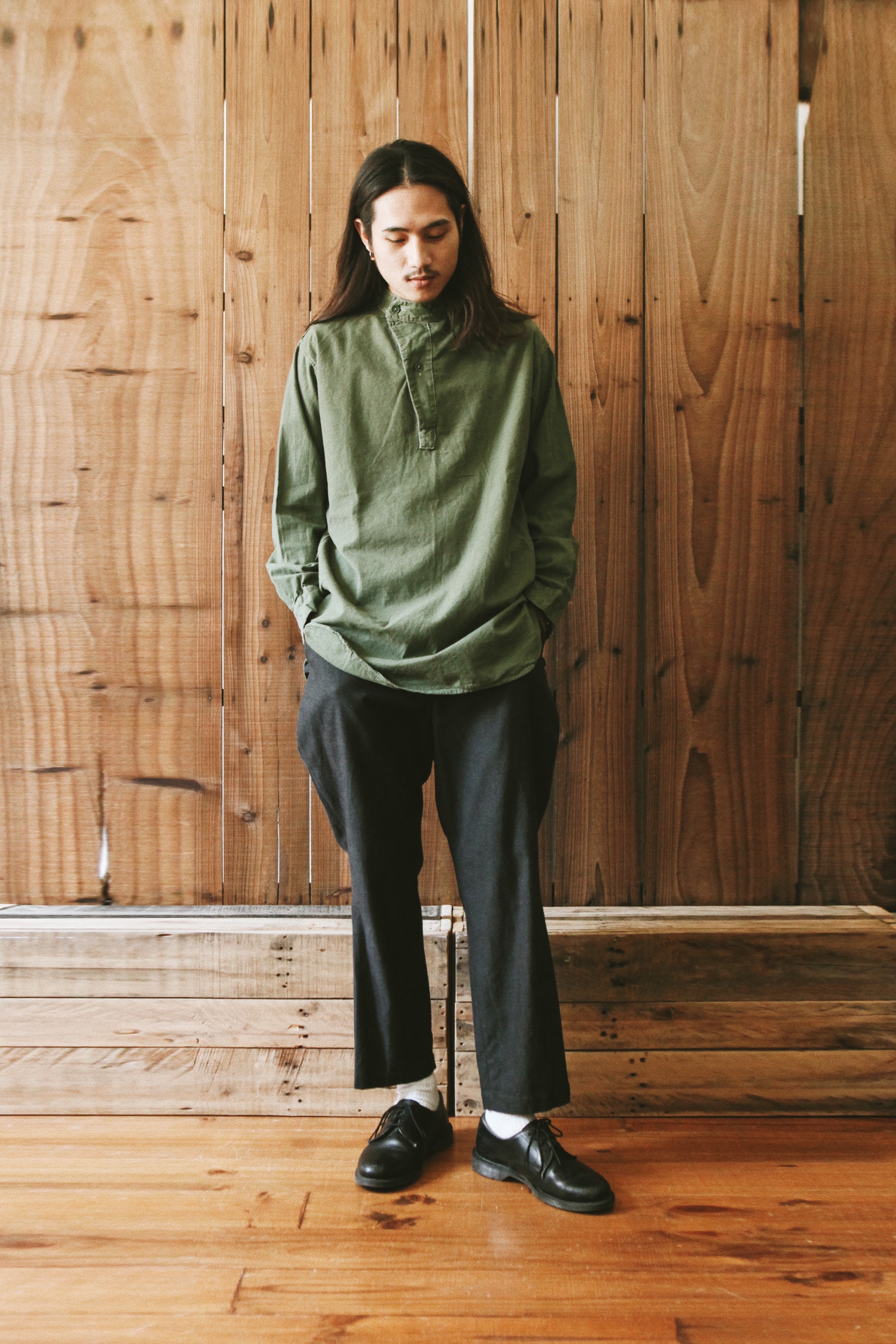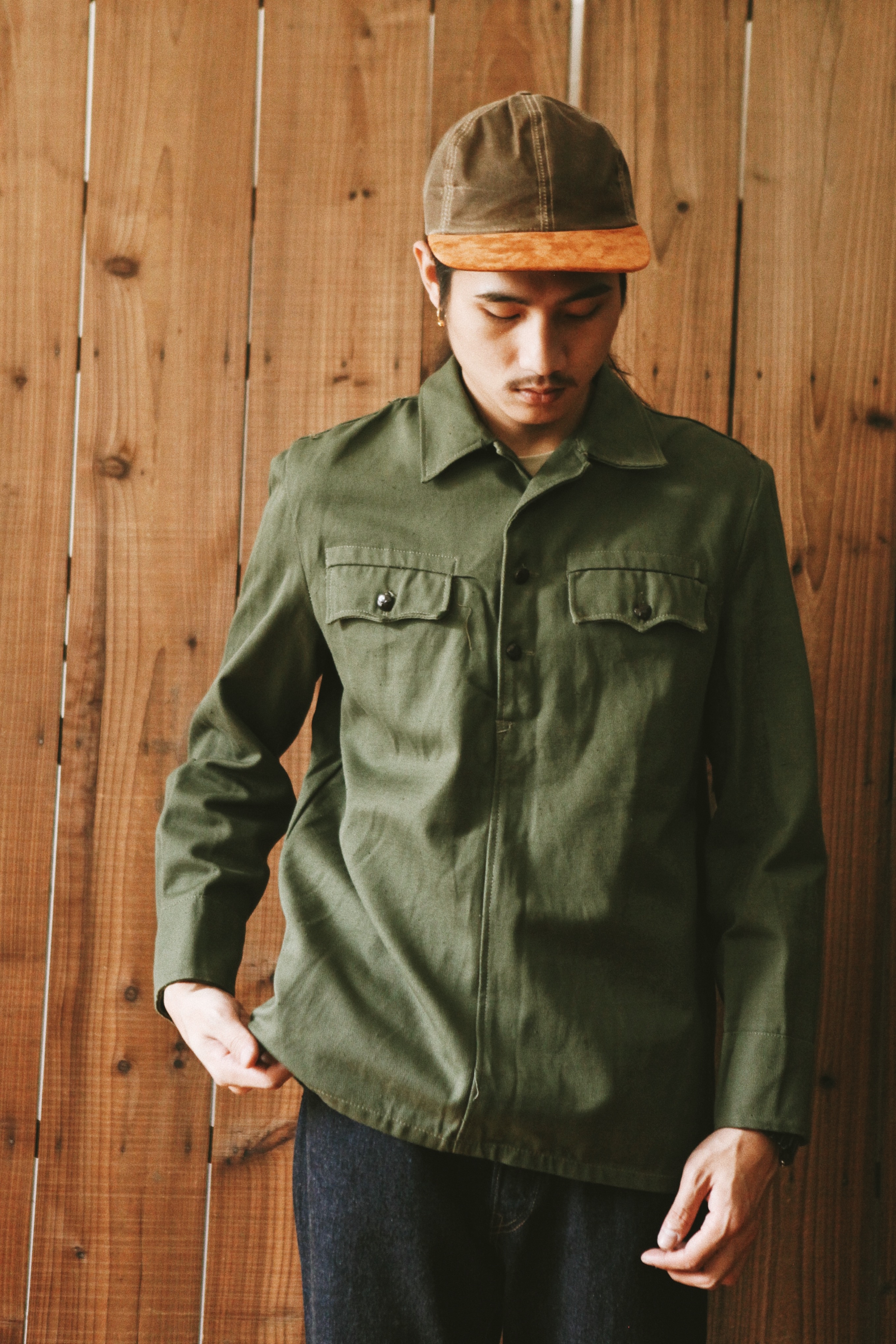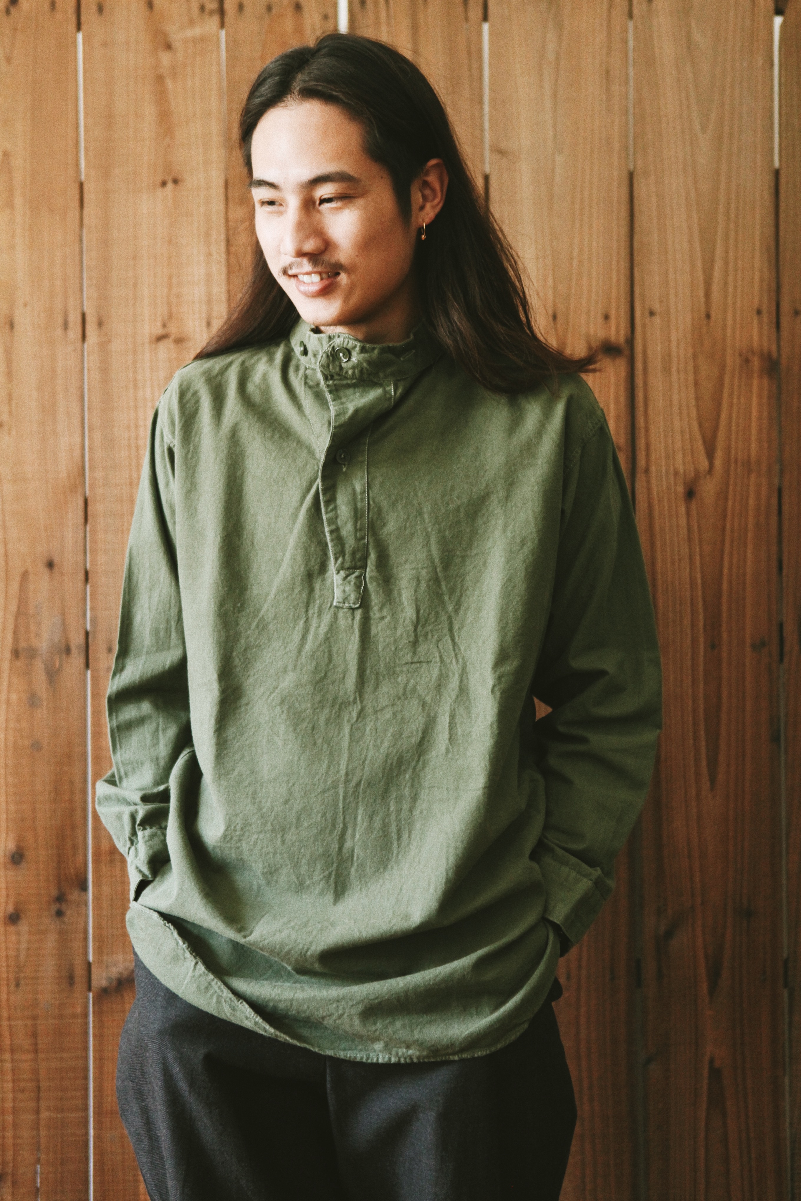 屬於Rolling On常青款的瑞典軍用罩衫(Pullover Shirt),依不同年代、軍種有許多版本,以下這款是最早期(也最難找)的40年代版本,可以說是瑞典Pullover中的大學長,奠定了寬身、長下擺、套頭式的版型,有著早期軍品布料紮實的粗糙手感,細節處使用鐵釦,增添早期軍品的韻味。雖是軍用襯衫,卻散發文質彬彬的書卷氣息,令人驚艷早期的軍用襯衫能如此符合現代穿著,這也是我們如此推崇瑞典軍品的原因。