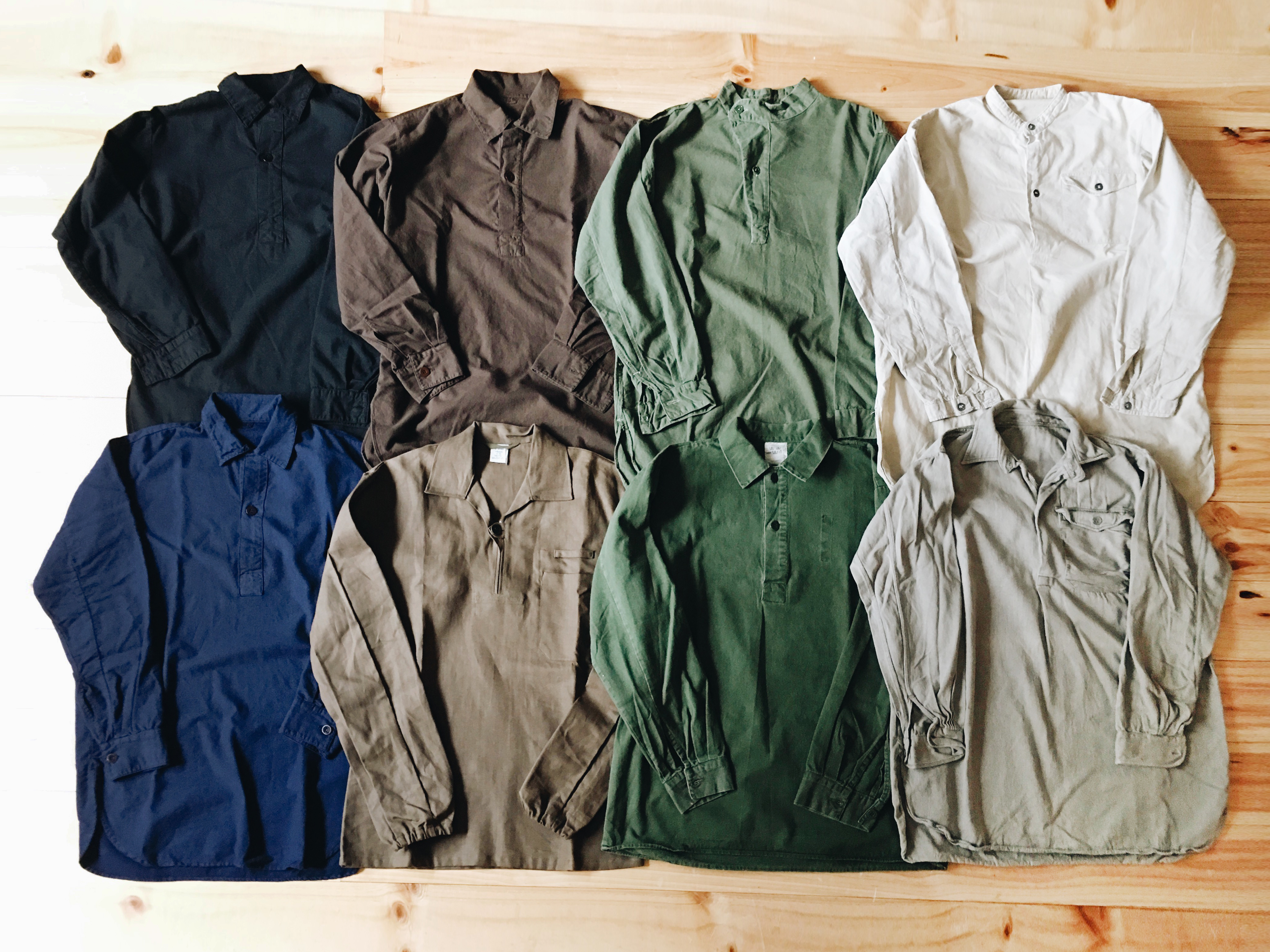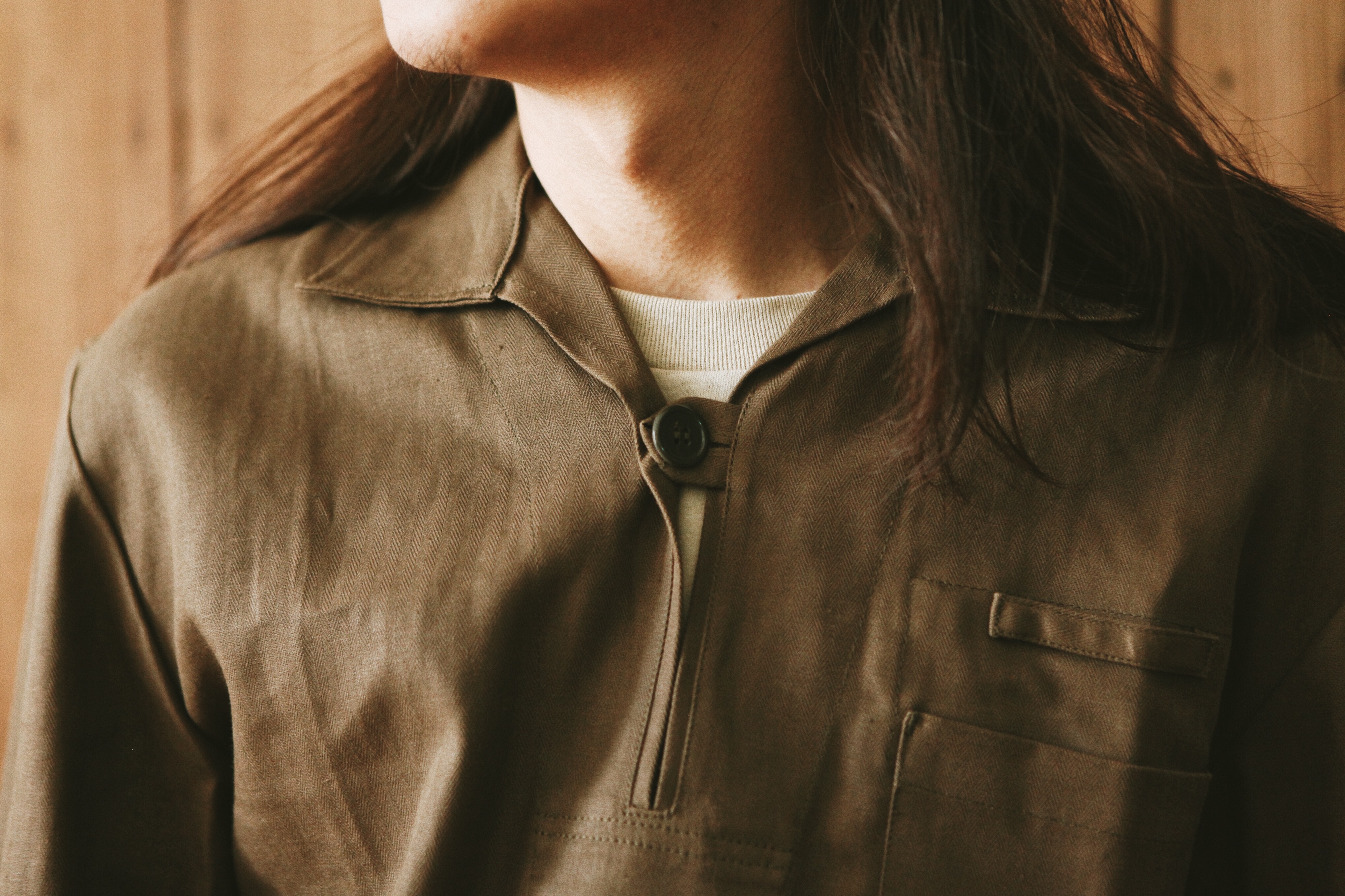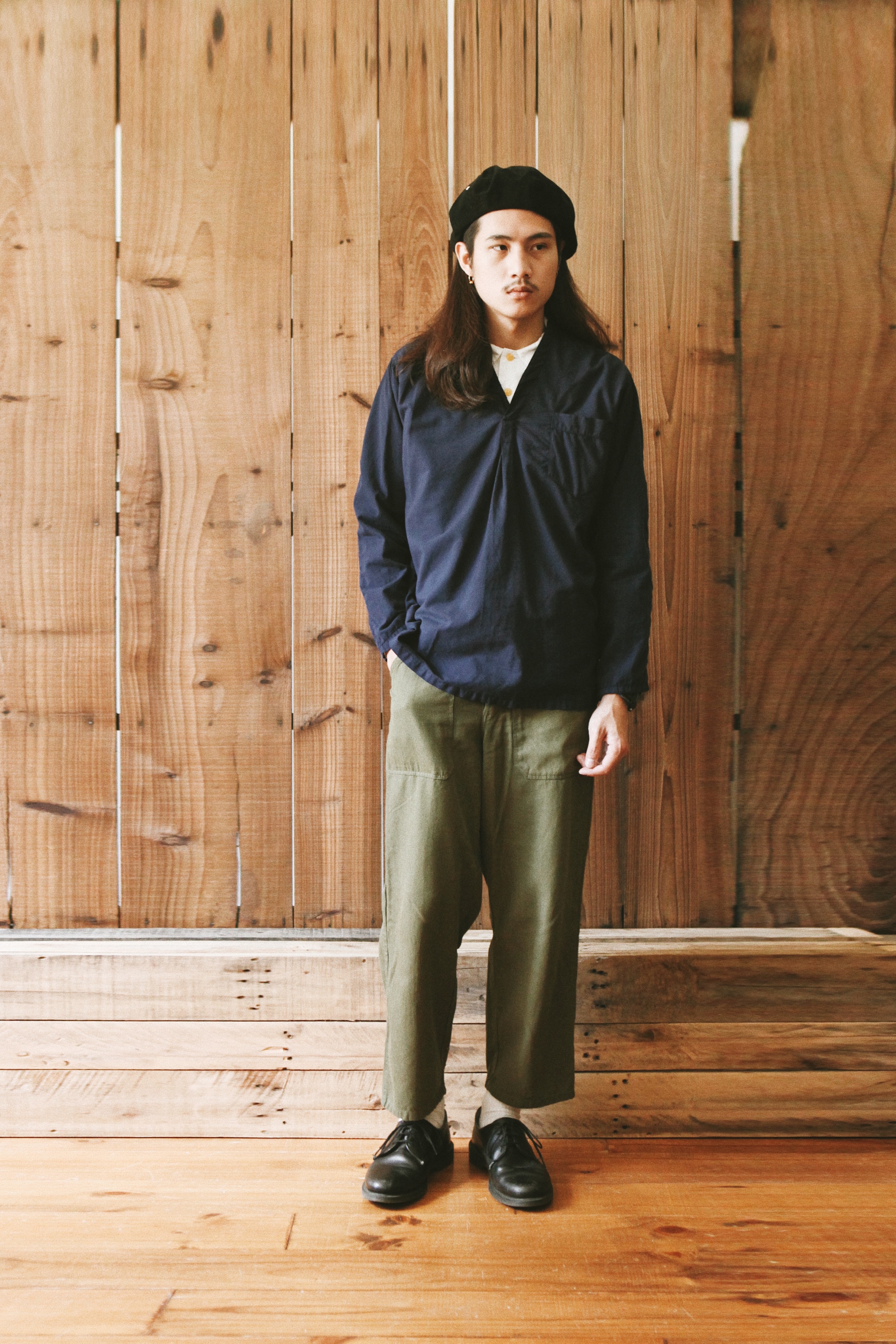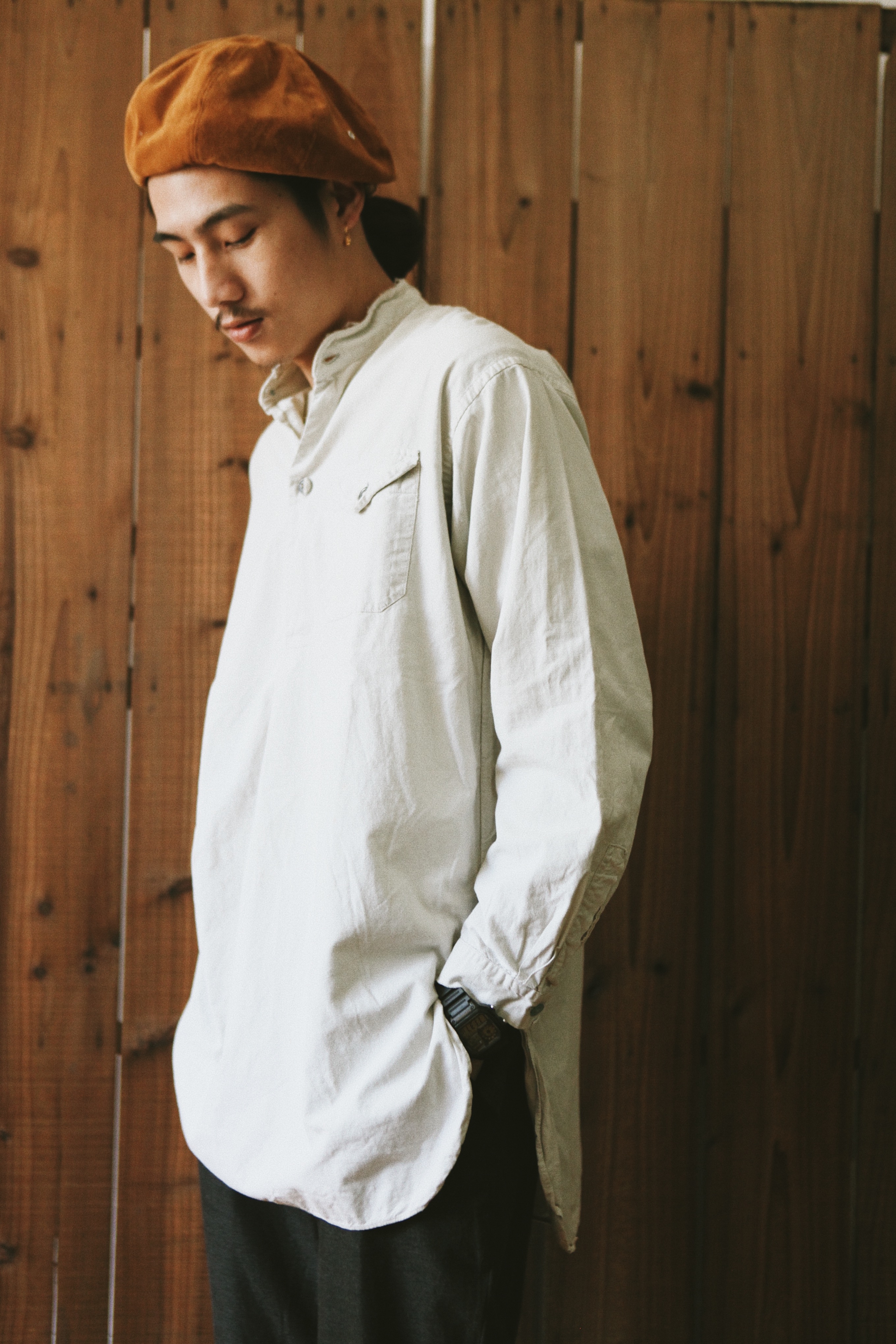 屬於Rolling On常青款的瑞典軍用罩衫(Pullover Shirt),依不同年代、軍種有許多版本,以下這款是最早期(也最難找)的40年代版本,可以說是瑞典Pullover中的大學長,奠定了寬身、長下擺、套頭式的版型,有著早期軍品布料紮實的粗糙手感,細節處使用鐵釦,增添早期軍品的韻味。雖是軍用襯衫,卻散發文質彬彬的書卷氣息,令人驚艷早期的軍用襯衫能如此符合現代穿著,這也是我們如此推崇瑞典軍品的原因。