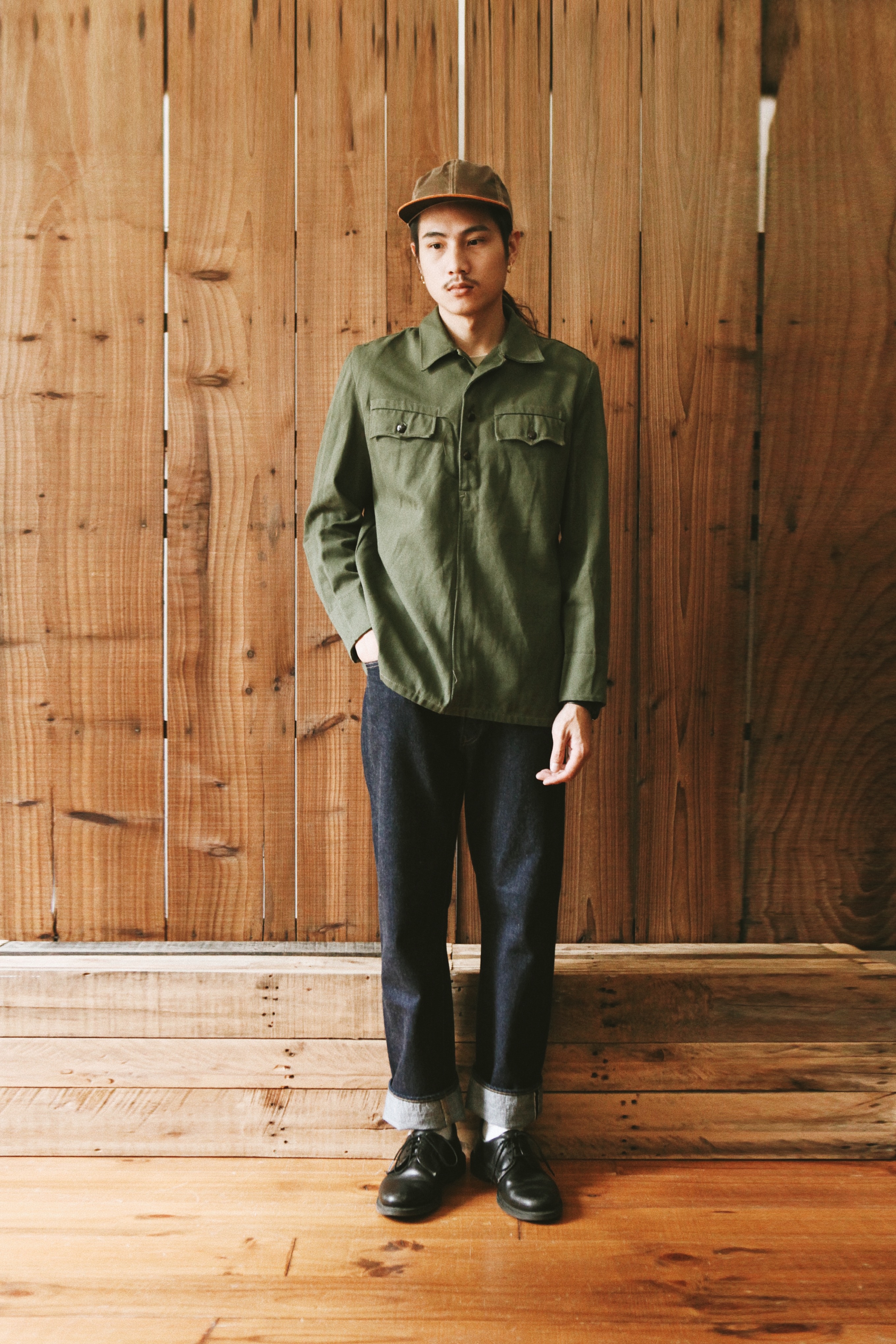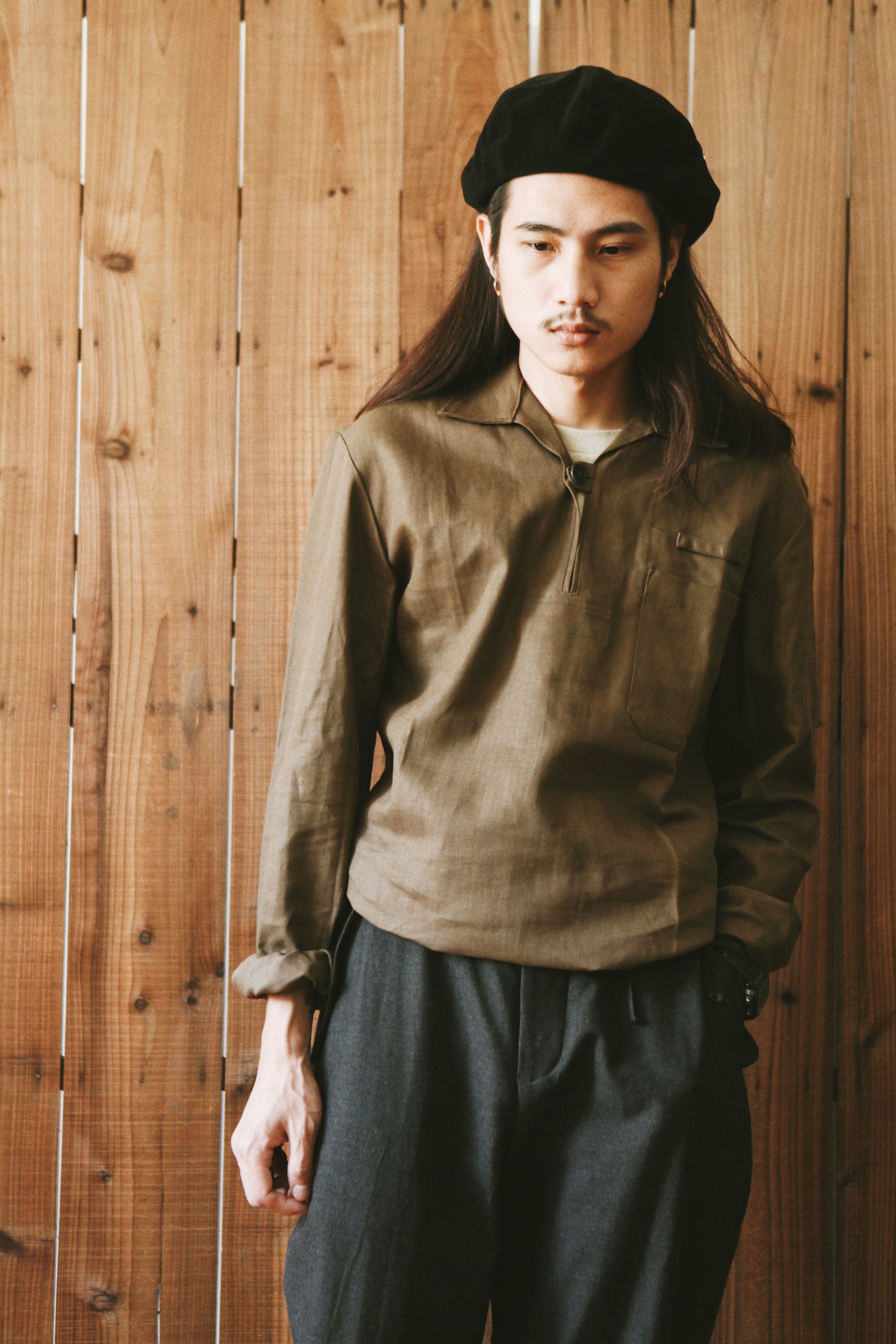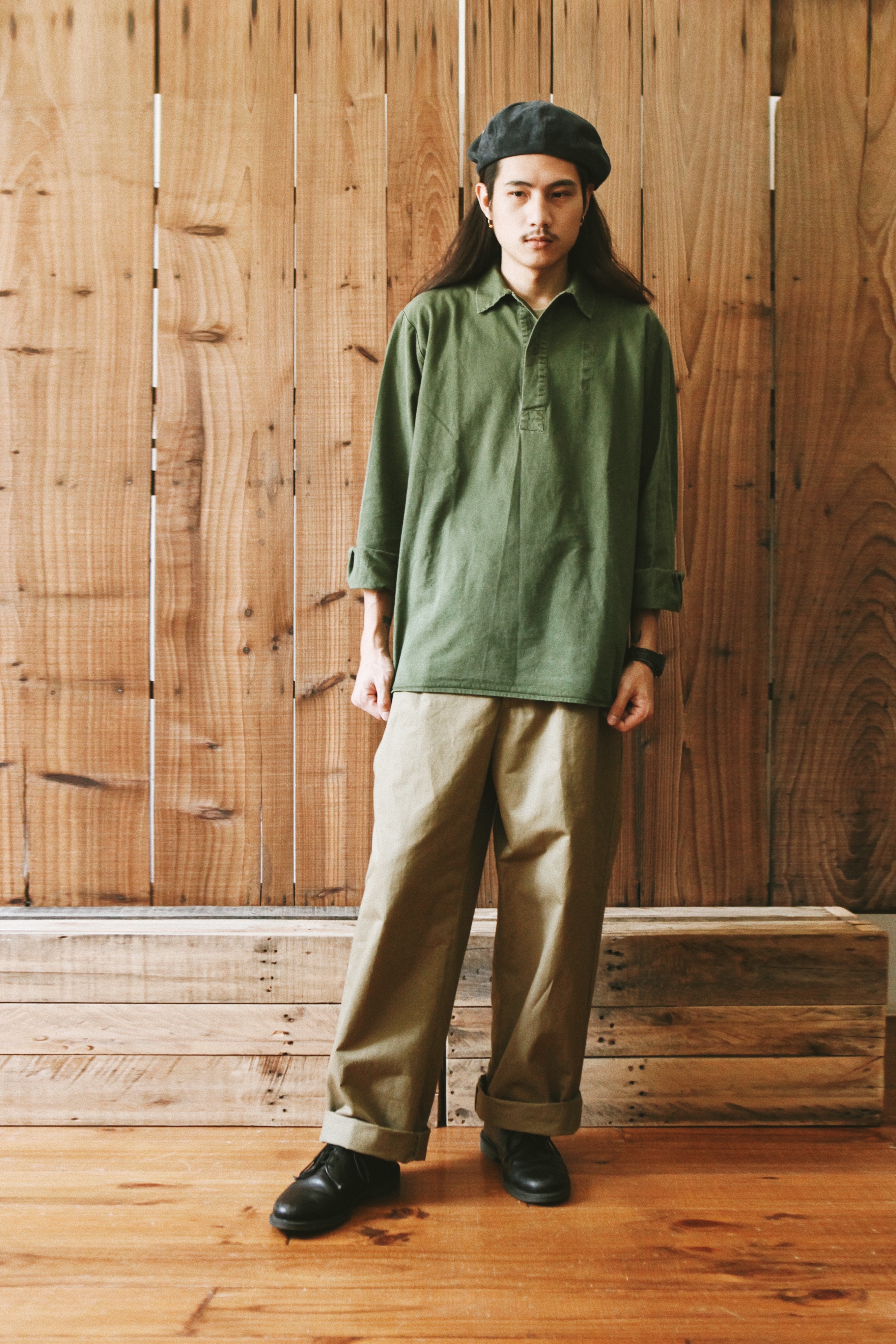 捷克軍用套頭上衣,布料具有相當挺度、胸前具單邊口袋,輕薄HBT布料適合春、秋換季穿著。寬身版型,袖口縮口設計防止寒風灌入,它不像瑞典pullover那樣休閒,帶點工裝的粗獷感,方便耐穿的設計,一週能穿上好幾回。