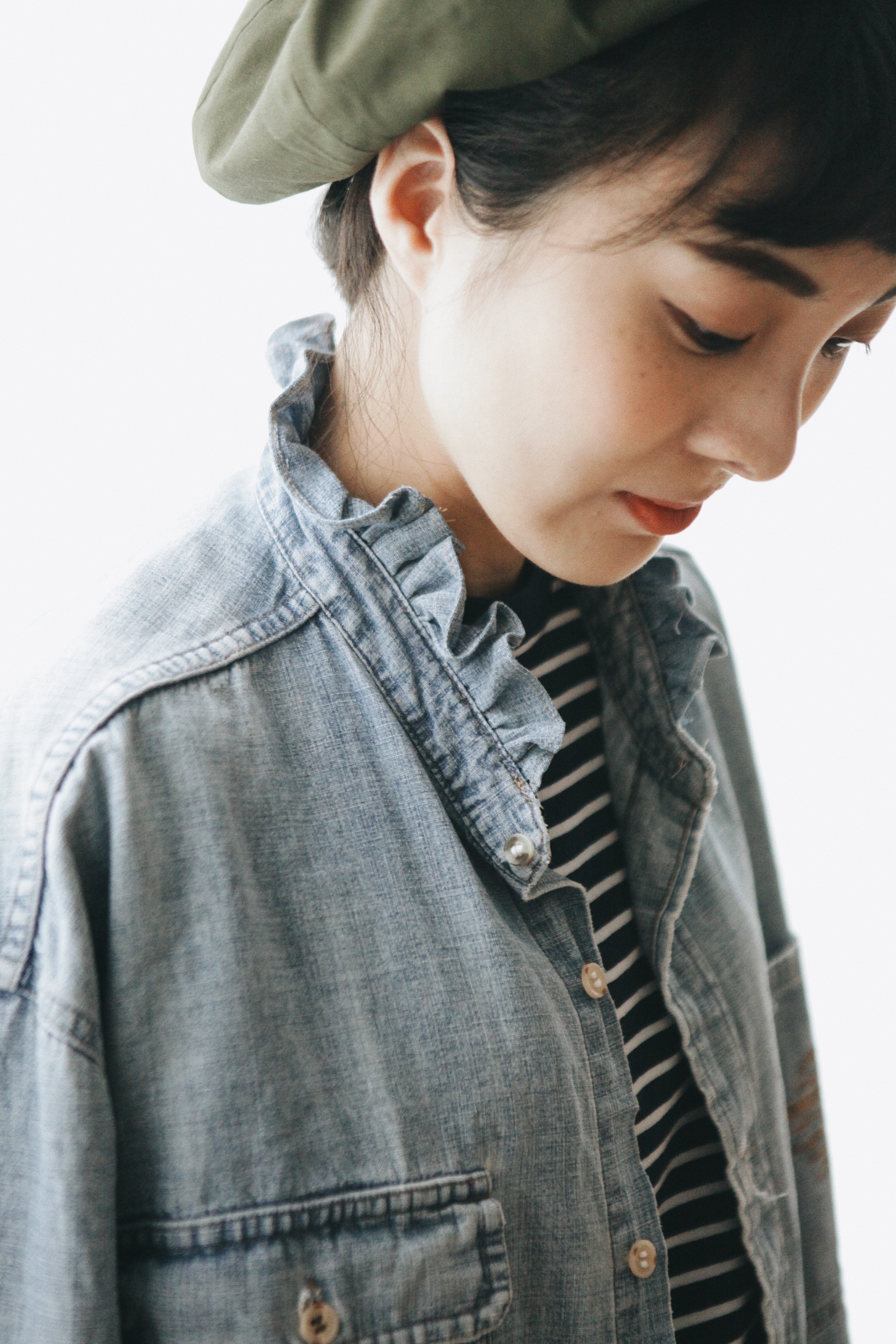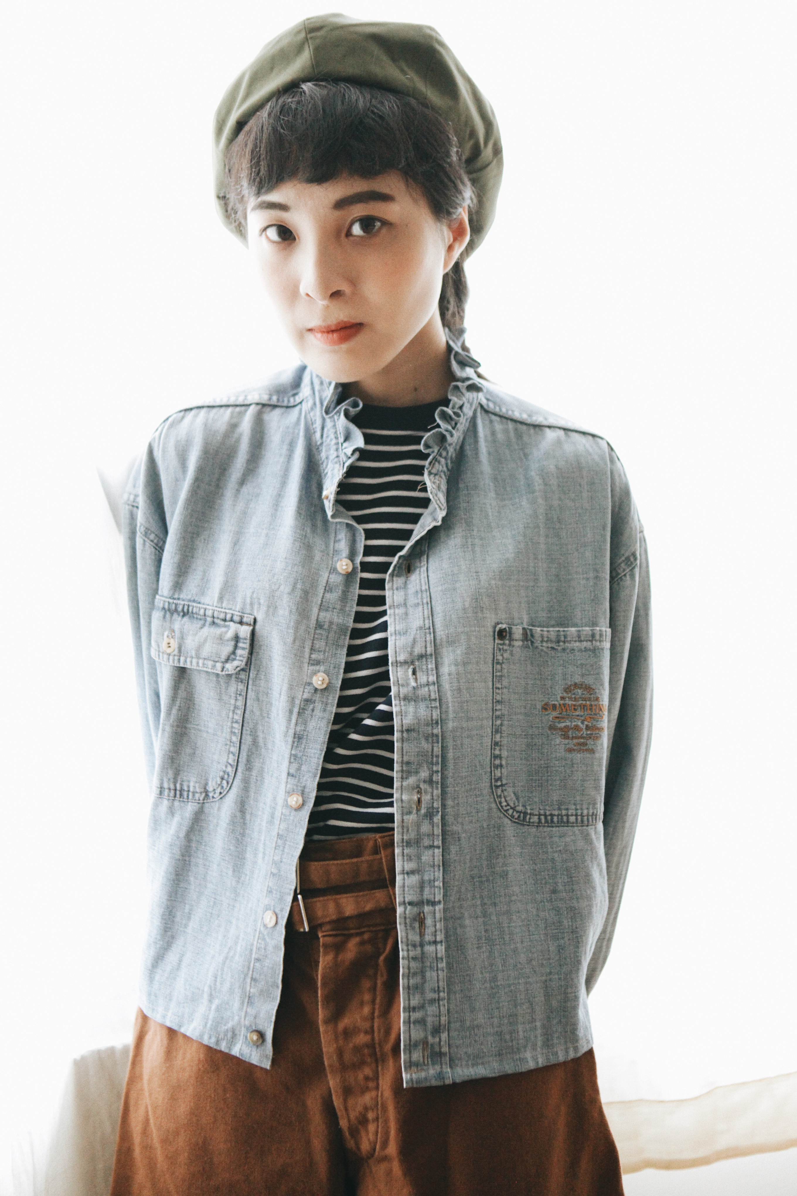 而我們將充滿中性風格的Vintage單寧襯衫賦予更多女性味道,