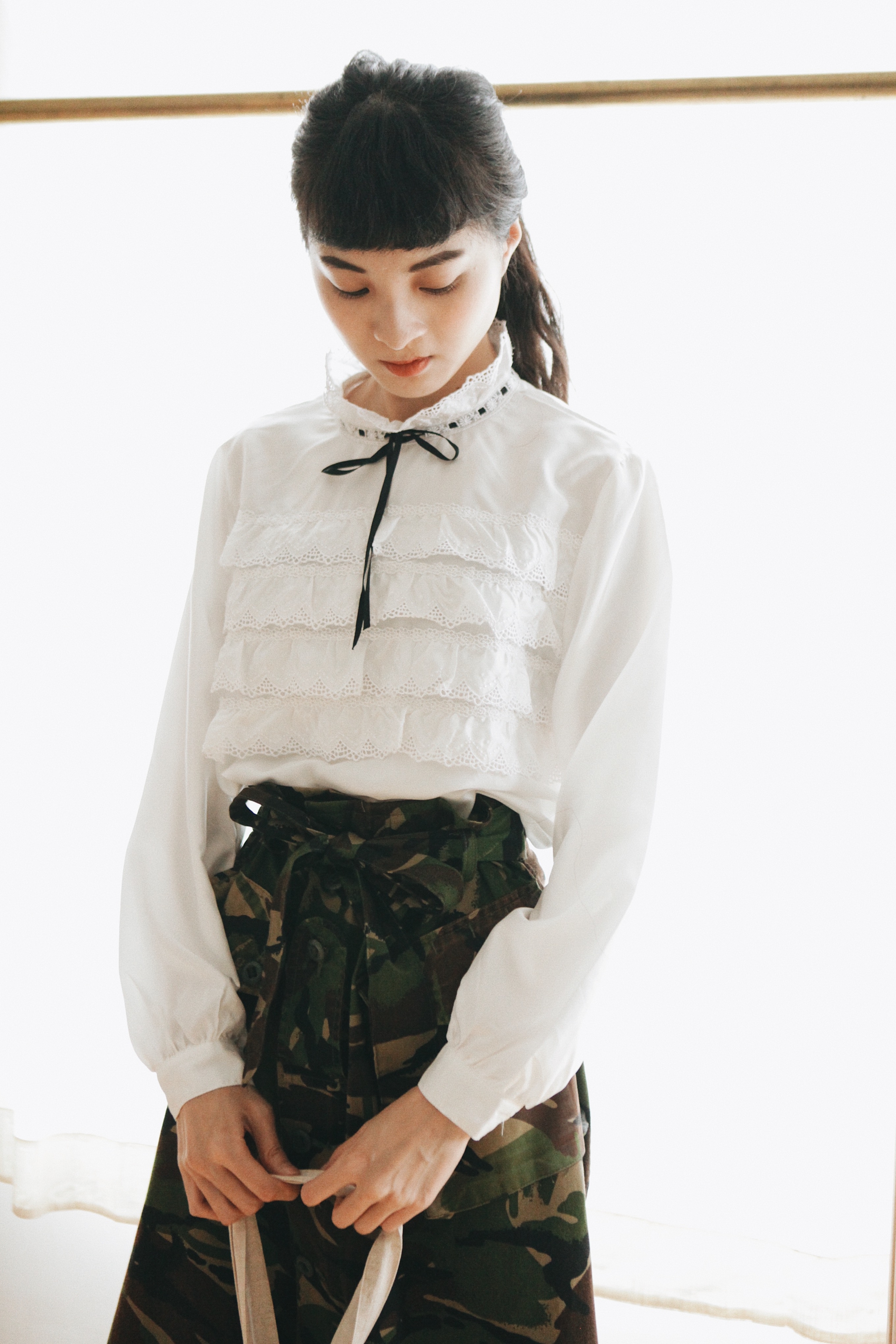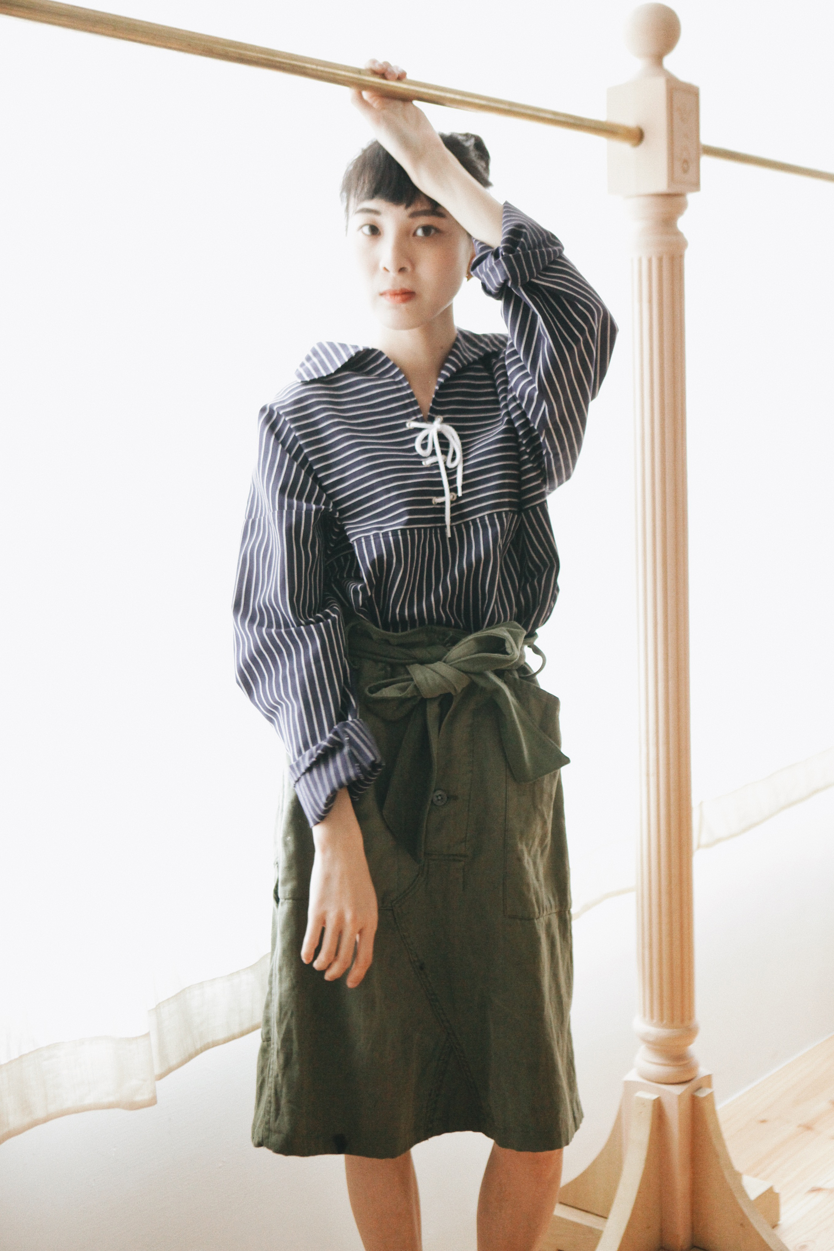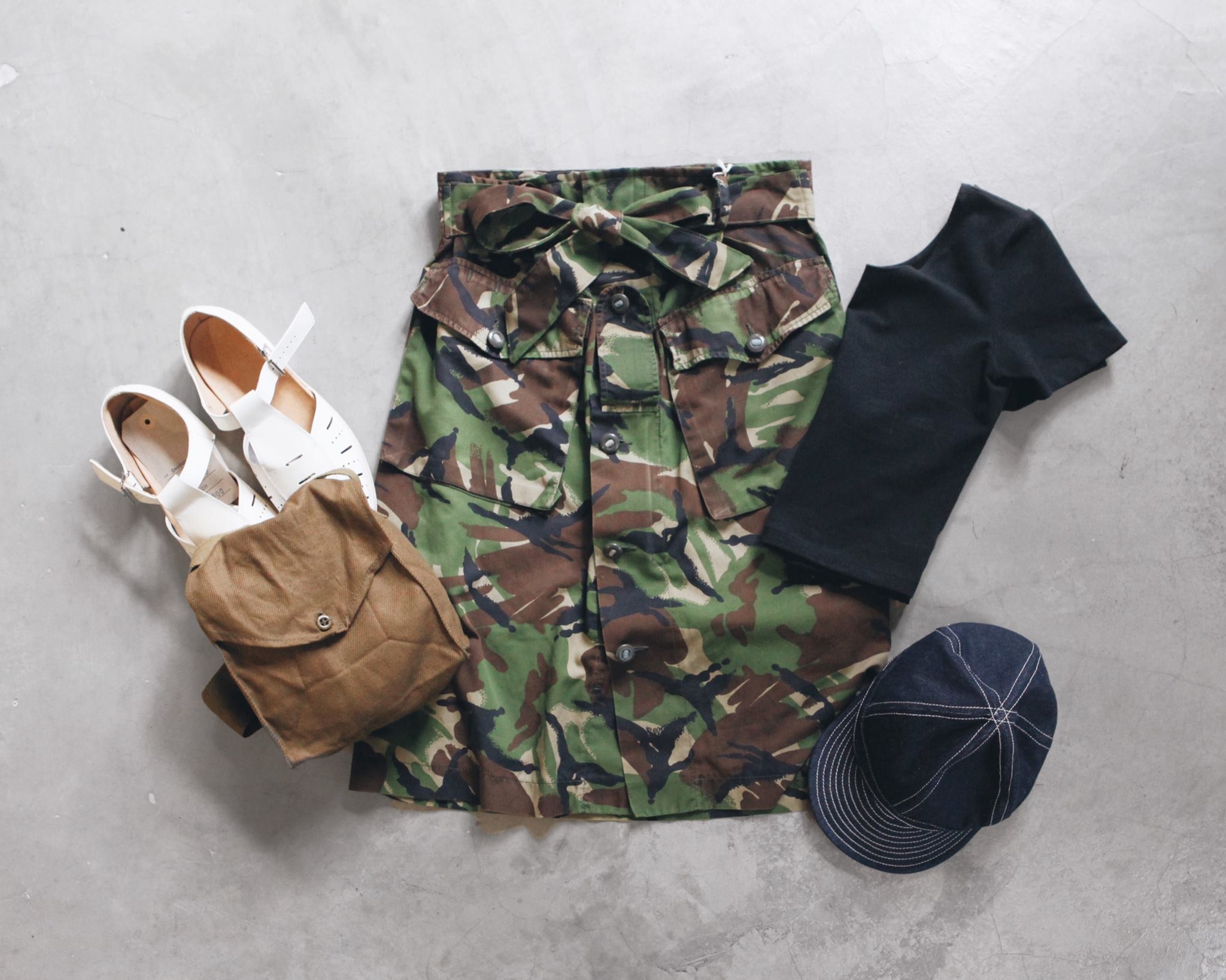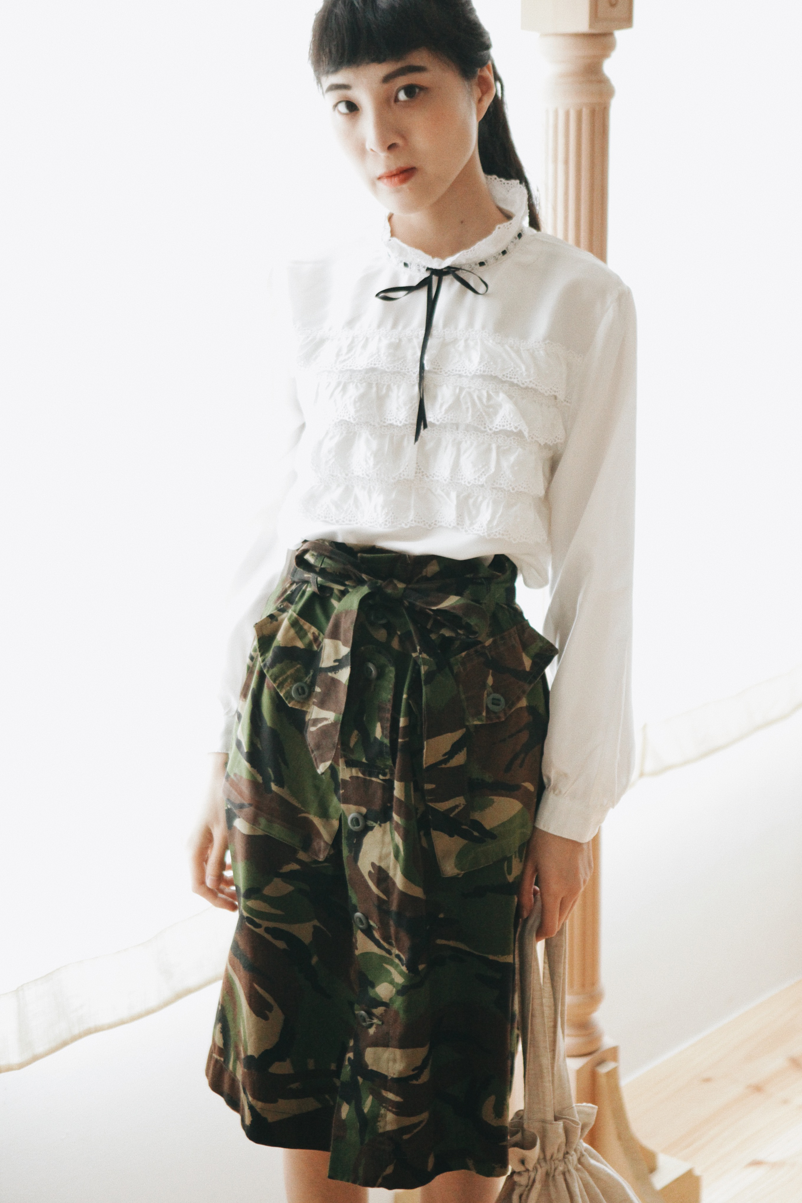將英軍迷彩服改製成軍裙,完成A ROOM MODEL獨有的軍事品項