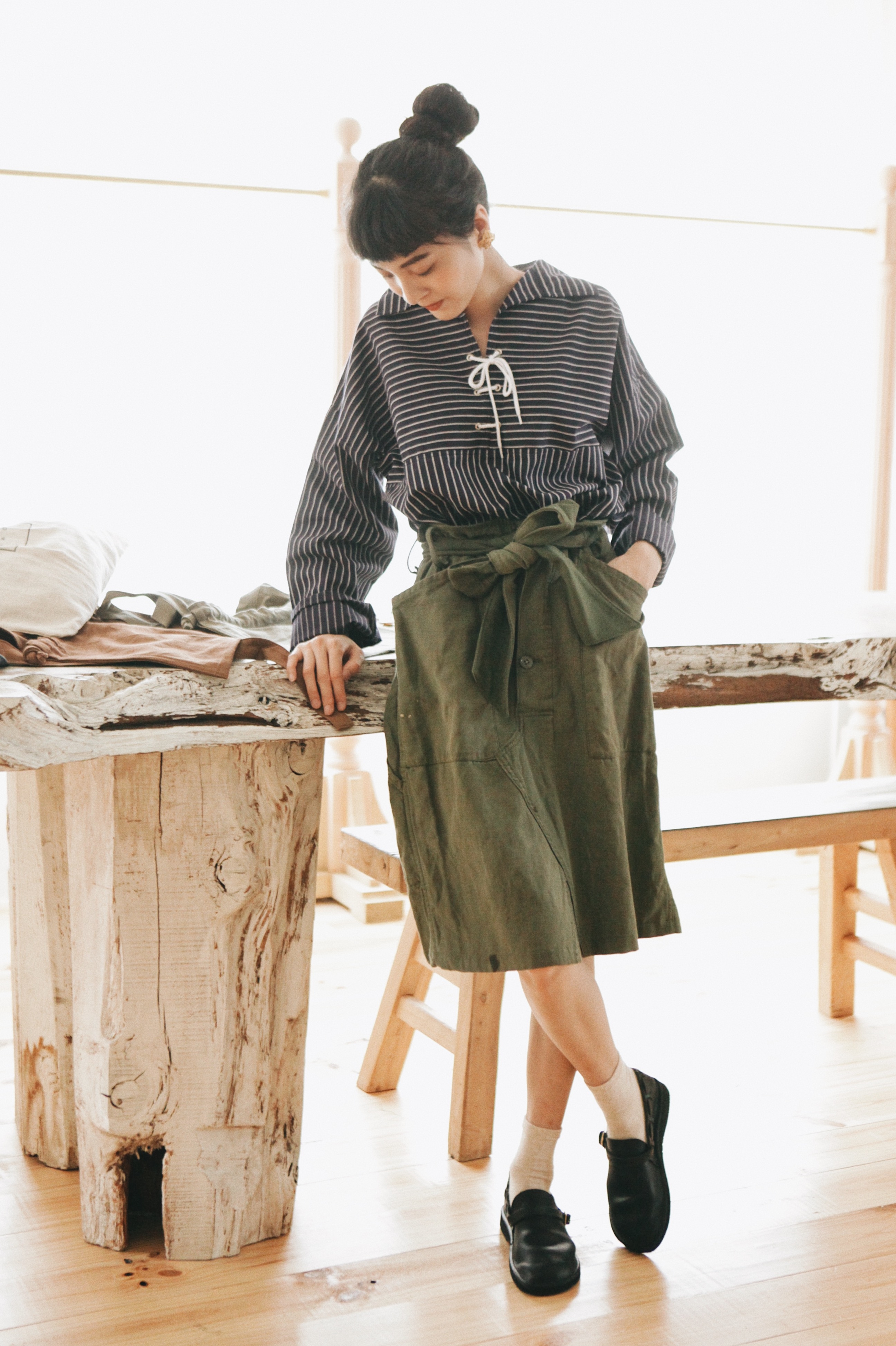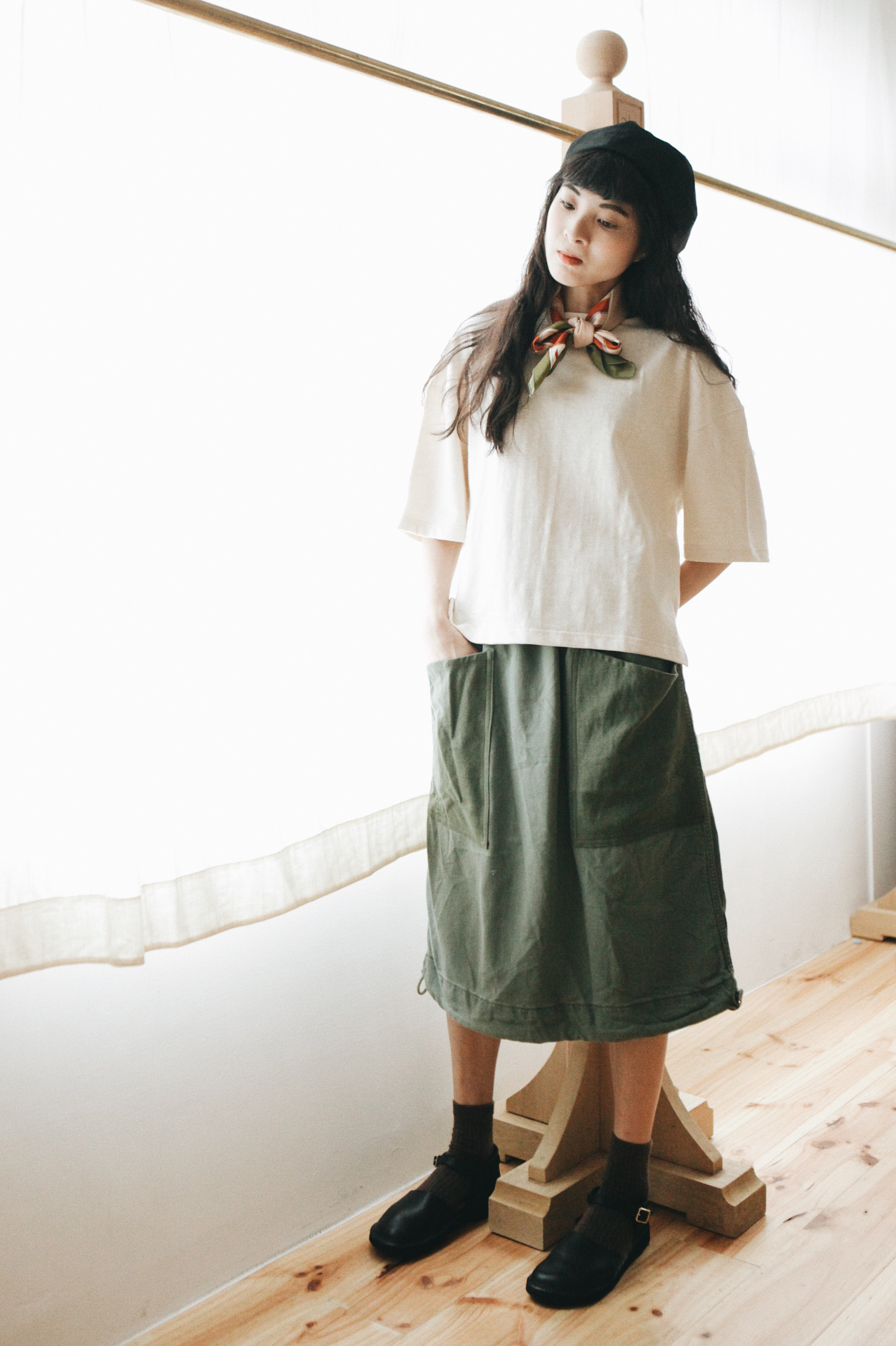 裙擺下方保留獨特的原始束口帶,穿著搭配皆非常easy!