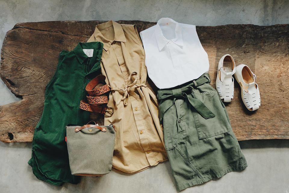 軍品改製花樣就更多了,運用店內同仁的巧思,將不合時宜的單品挑出,集思廣益該怎麼改變服裝的版型,決定後必須先用刀片、剪刀裁製出初樣,接著跟裁縫師傅溝通布料怎麼拼接、口袋想加在哪,經歷無數次的實驗、修改,來回數次的折騰才能完成一件成品。所以你可看到瑞典無袖洋裝,原型是將Vintage瑞典軍襯衫袖子裁切掉,再加上腰帶;美軍短襯衫,是從寬寬大大的美軍連身工作服上身改成的,下半身也不浪費的改成軍裙,這些都是歷來同事們的心血結晶。