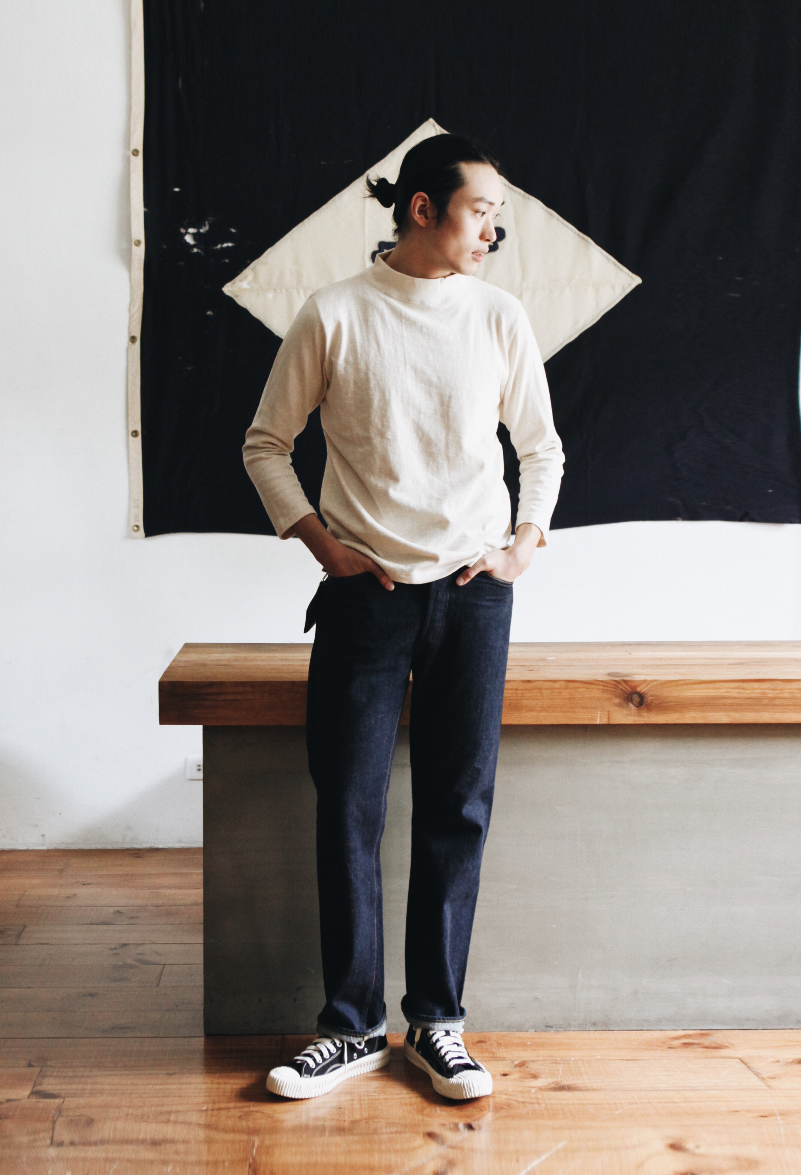 HDCS Cotton比起一般T-shirt的棉布製作速度更慢,質地更加飽滿、柔軟且觸感佳;竹節紗密度高但透氣保暖讓肌膚良好呼吸,最特別的是布料表層摸得到起伏的橫向平紋,是老式織布機才能編織出的獨特手感;而Organic SRAB Cotton使用美國優質有機棉花,從紡紗開始,到老式針織機經緯編織、縫紉及最後的染製都在日本嚴謹做工下完成。