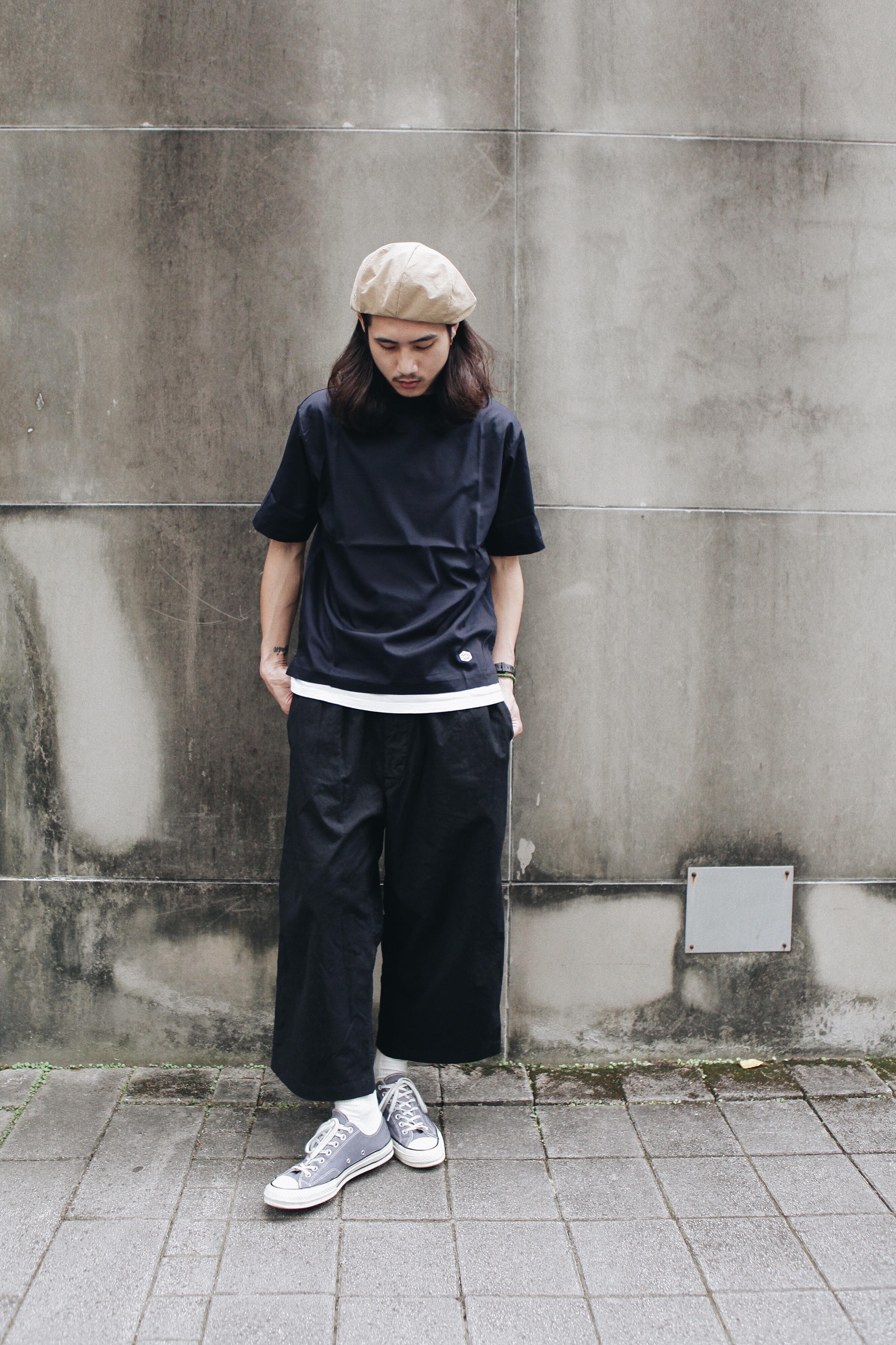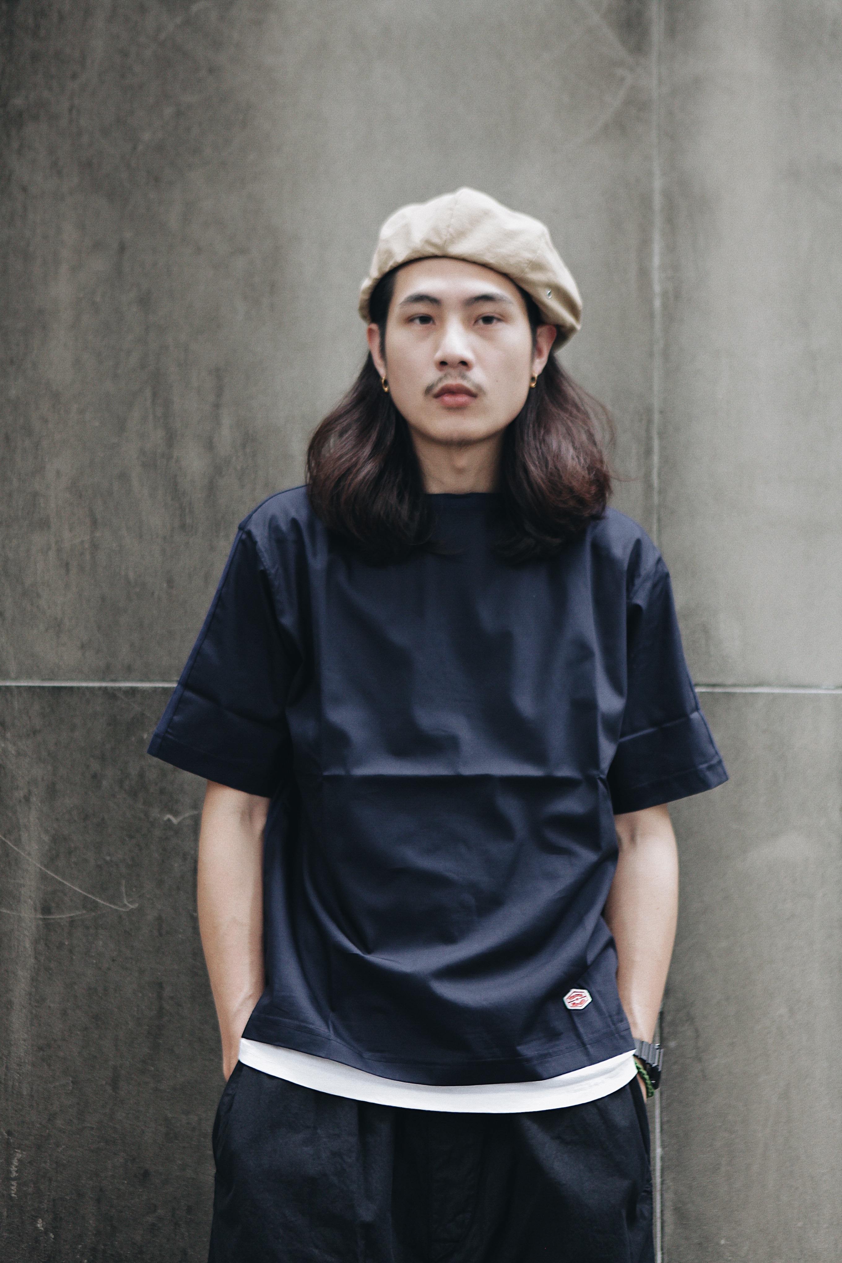 其中這款T-shirt看上去簡單休閒。特色之處在於正反兩面布料使用不同織法,正面以輕薄的襯衫面料,背面則以彈性布料作為拼接組合,看來清爽自在,寬鬆的版型能讓空氣與你的步伐ㄧ同流動,100%的棉料與日本製,當然也是透氣與質感的保證。